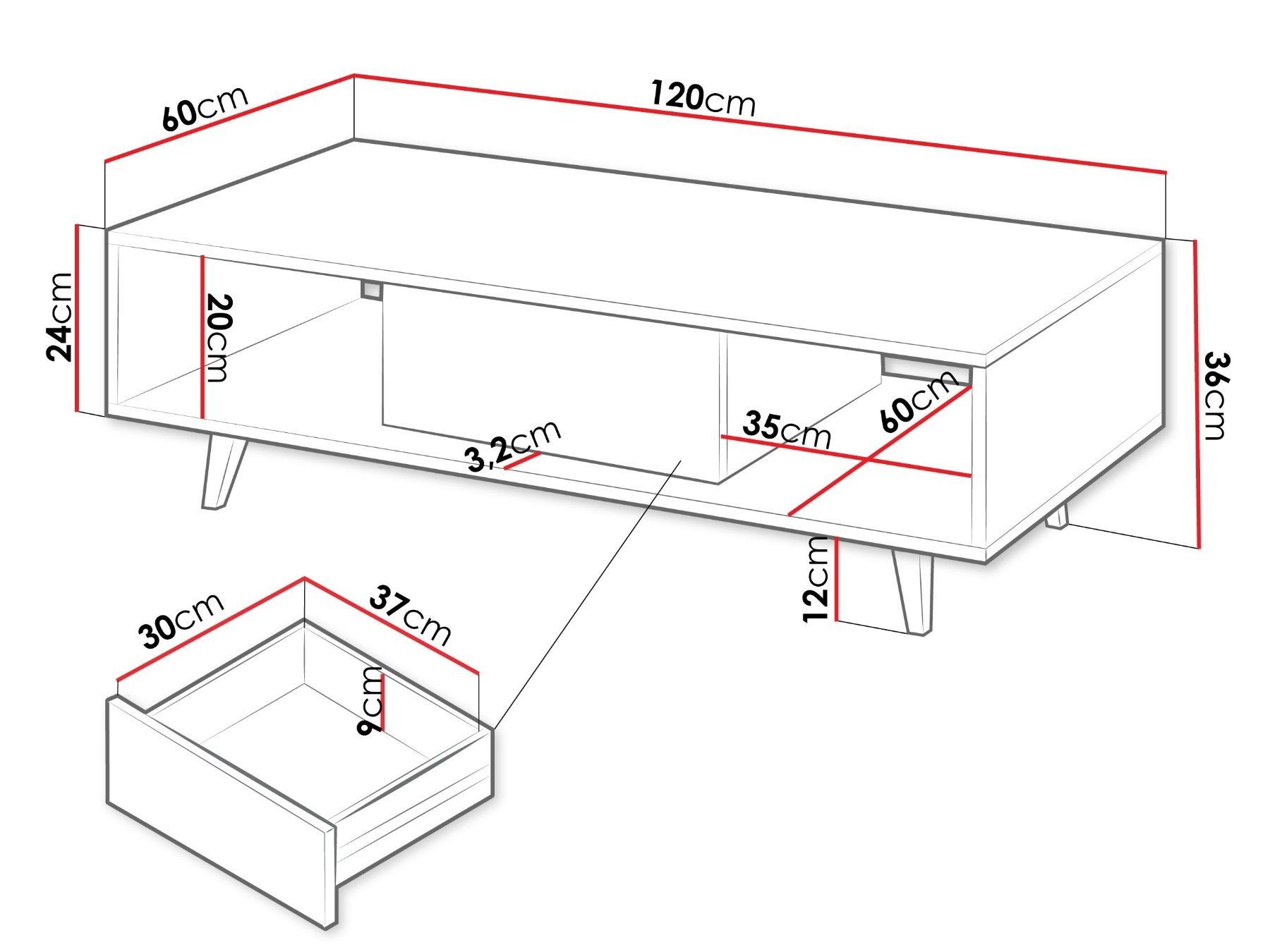 Couchtisch Ferido 1SZ Wohnzimmertisch mit Schublade Tisch M24