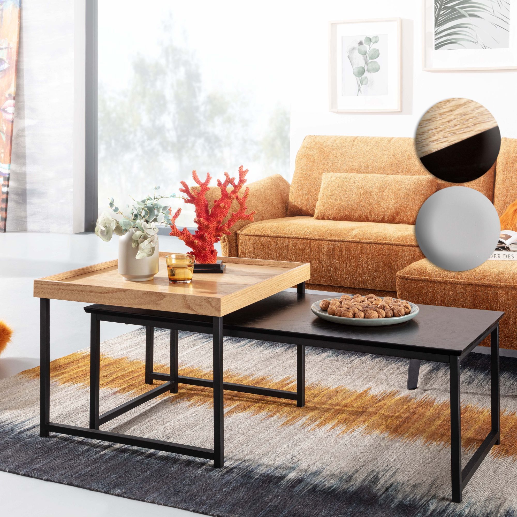 FineBuy Couchtisch 2er Set Holz / Metall Sofatisch Eckig Modern, Beistelltisch 2-teilig, Design Wohnzimmertische, Holztisch Satztische