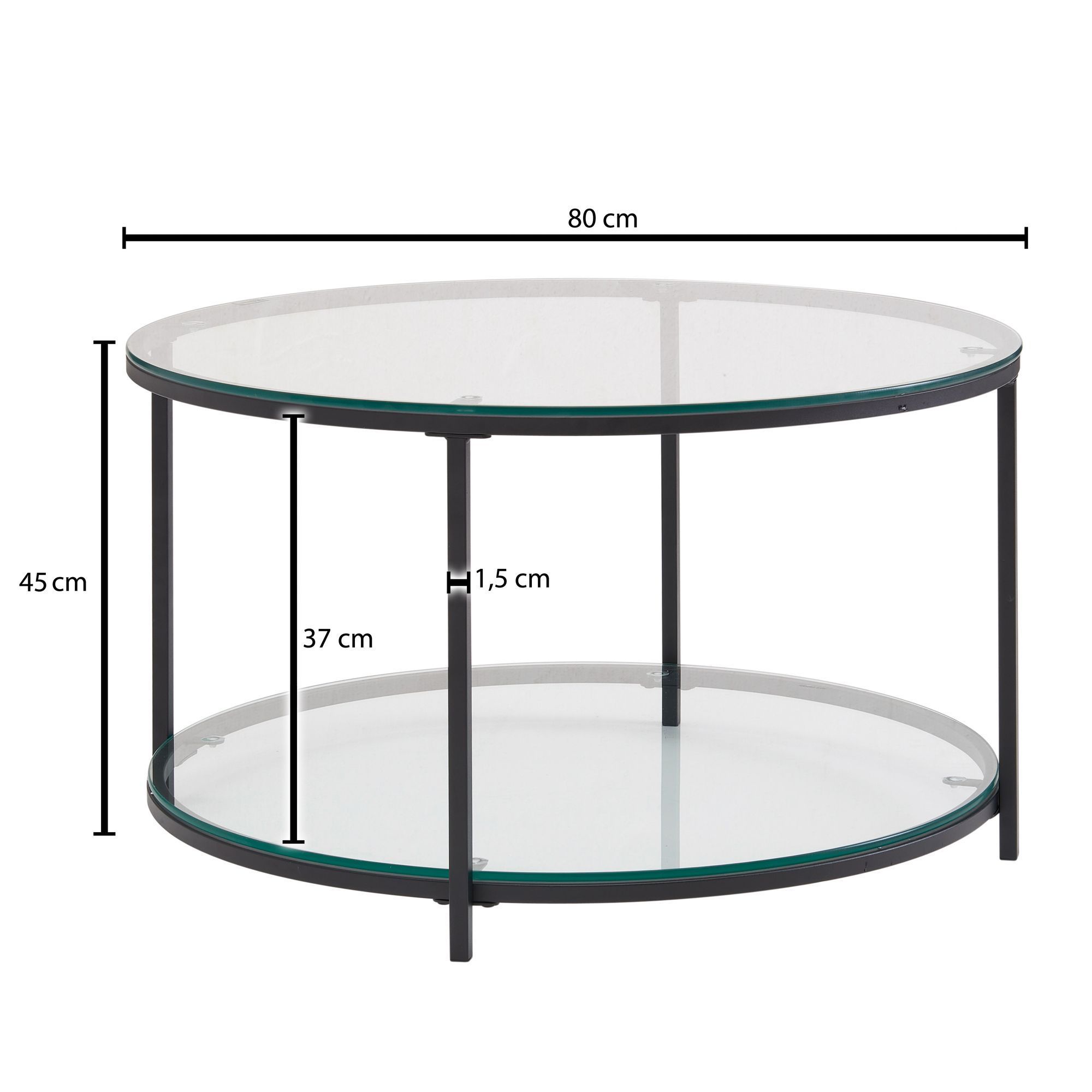 FineBuy Couchtisch FineBuy Sofatisch Glas Wohnzimmertisch Ø 80 cm Rund Tisch Stauraum