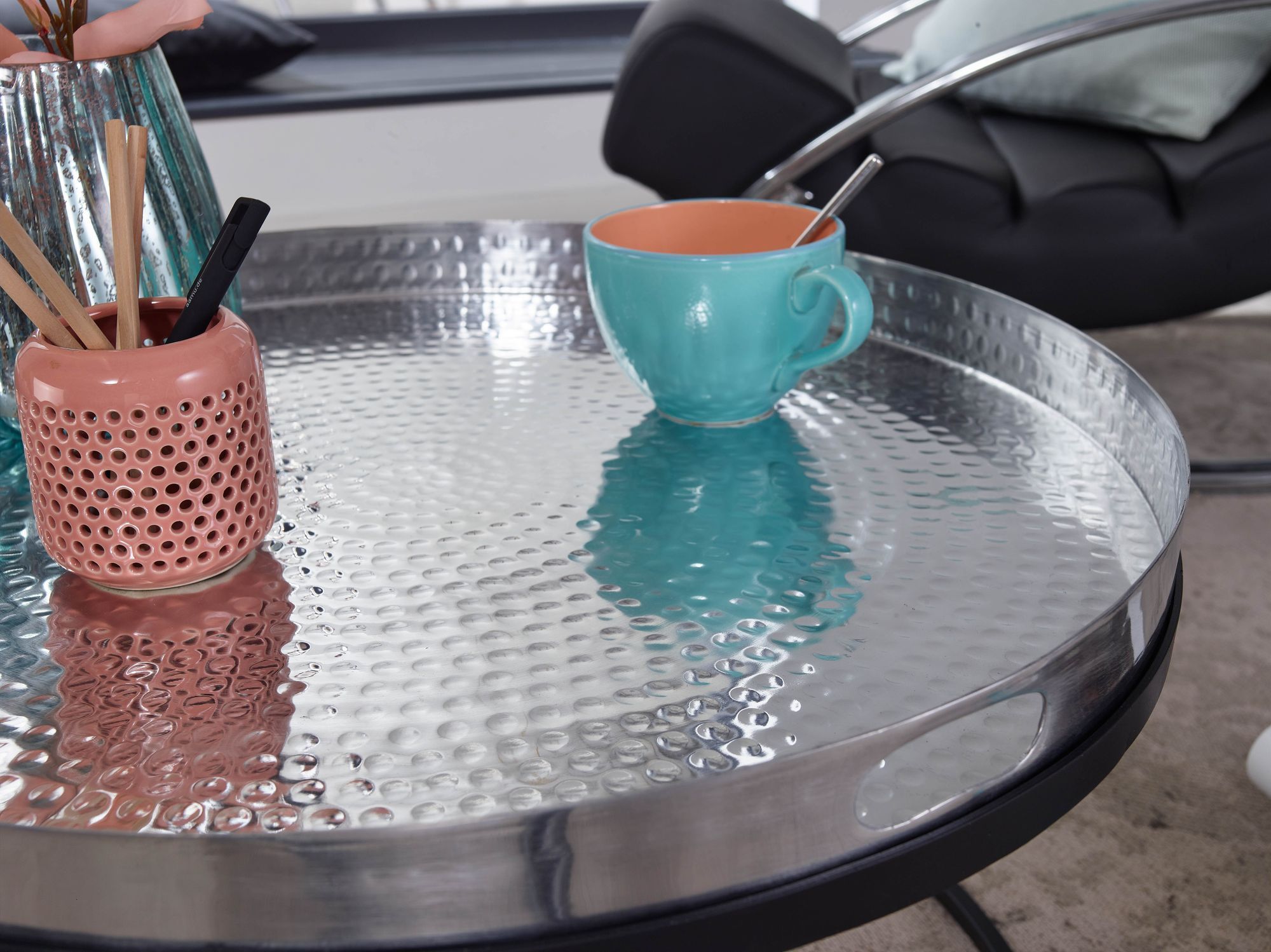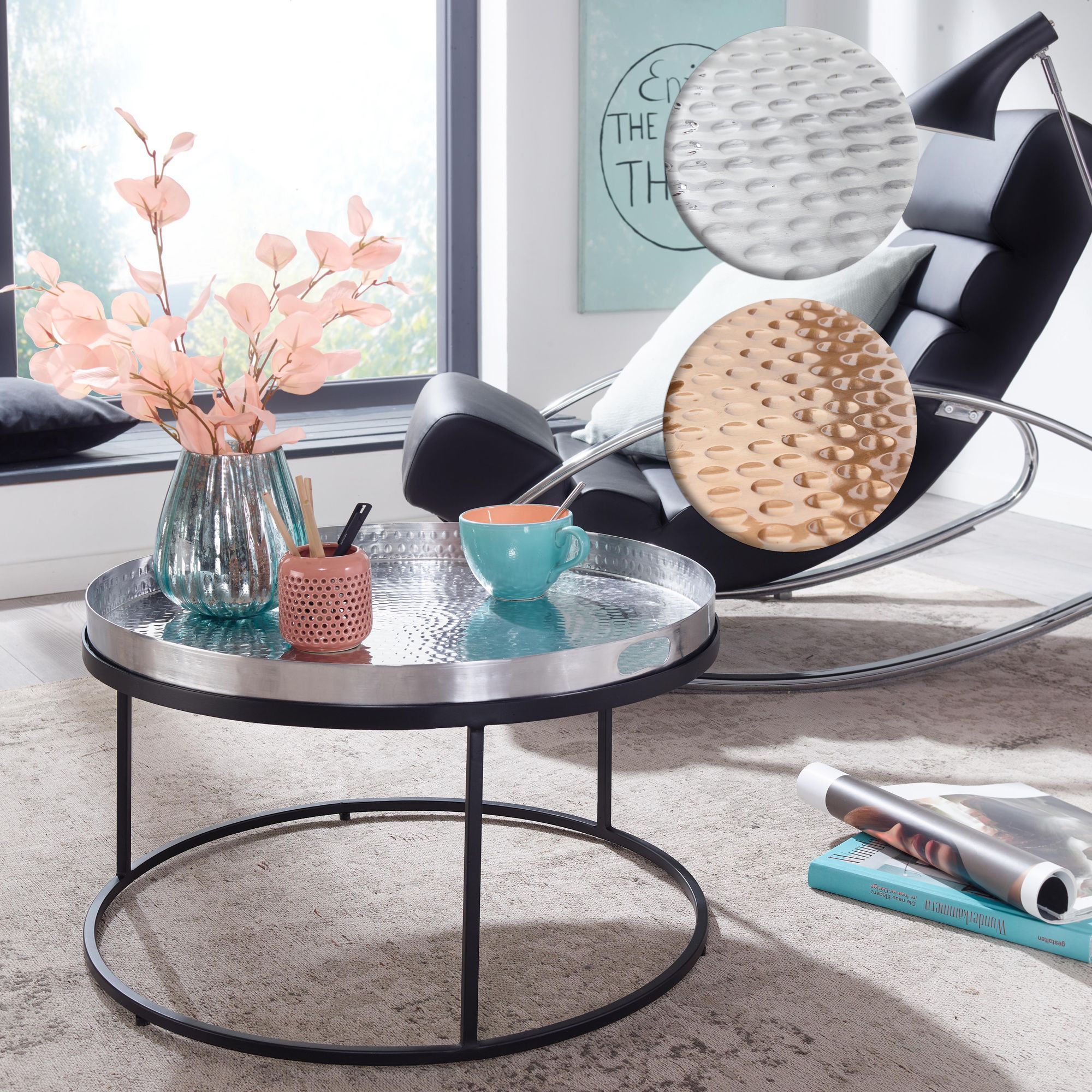 FineBuy Couchtisch Hammerschlag Metall 62x62x36 cm Sofatisch Aluminium, Design Wohnzimmertisch abnehmbares Tablett Rund, Tabletttisch Wohnzimmer, Beistelltisch Modern