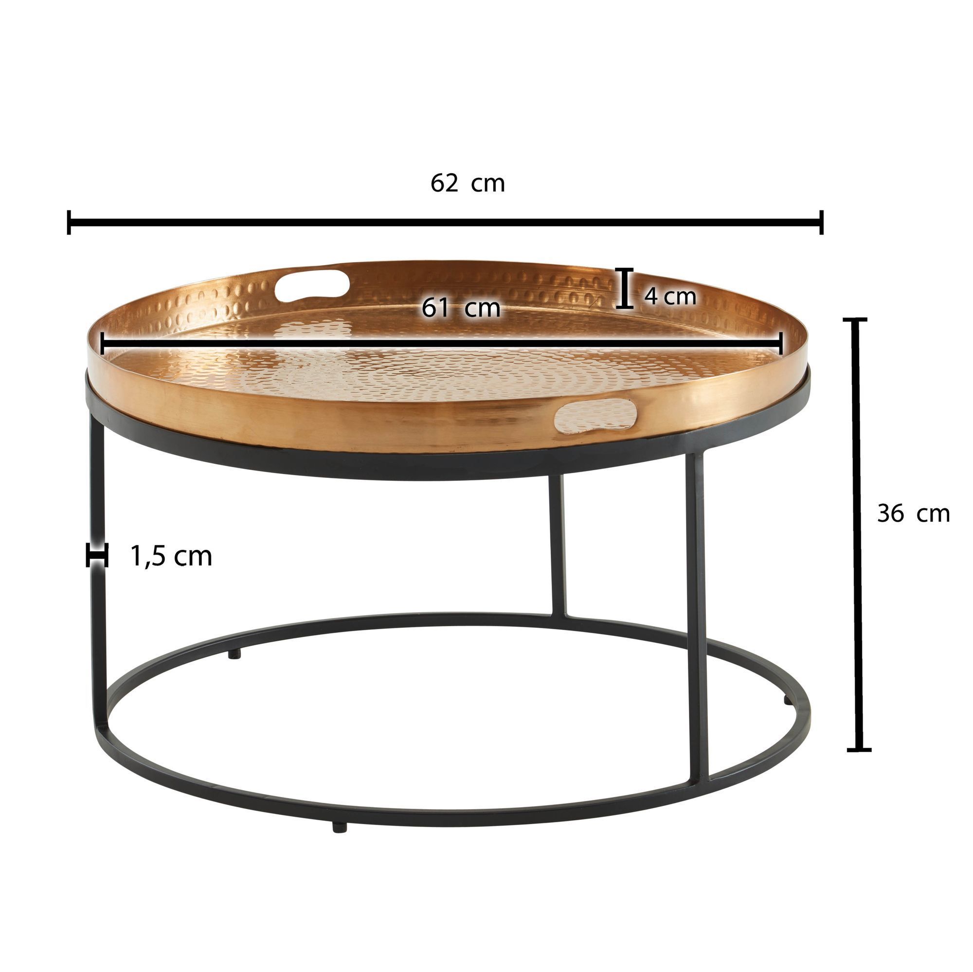 Couchtisch FineBuy Sofatisch Metall Hammerschlag Ø 62 cm Wohnzimmertisch Tisch