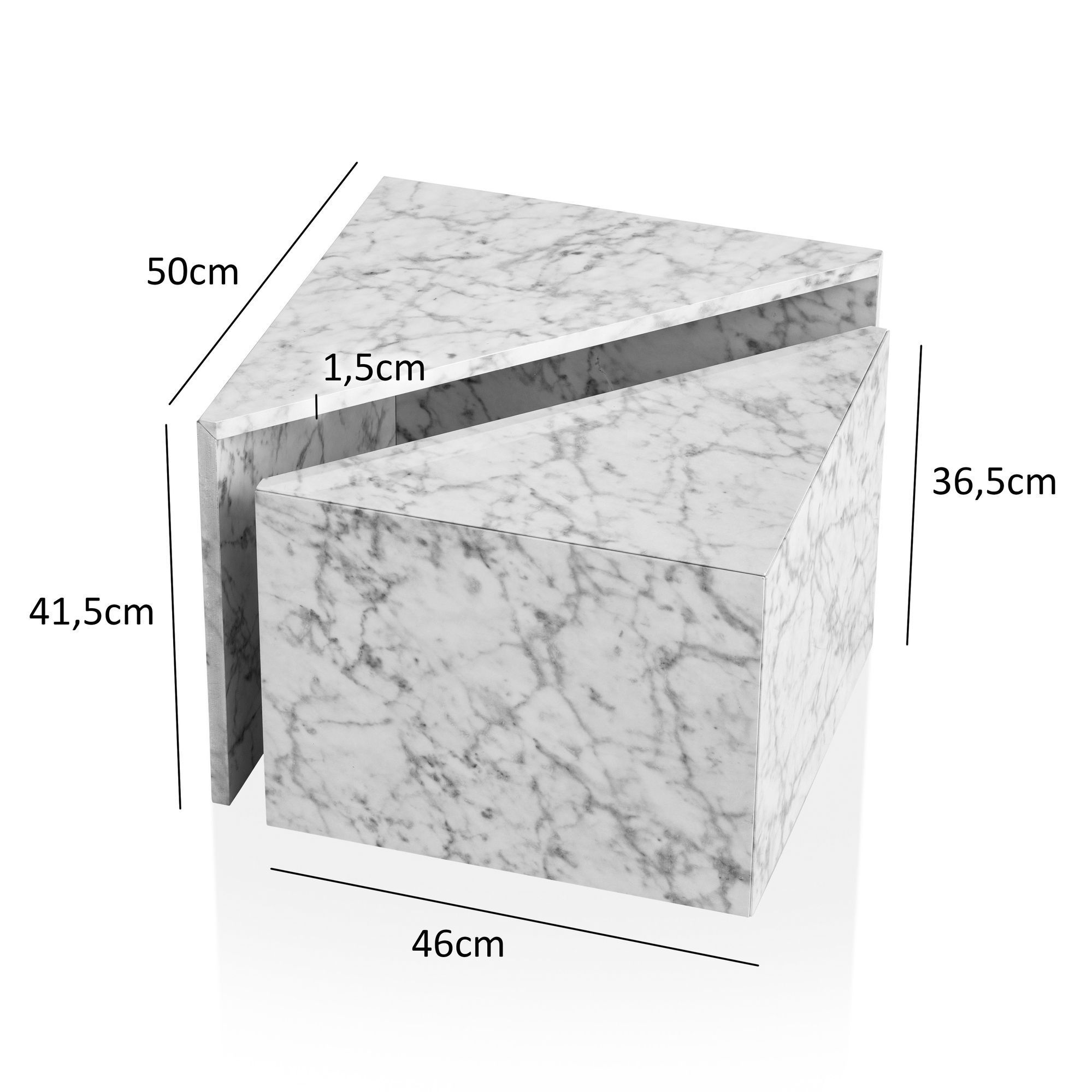 Couchtisch FineBuy Sofatisch Monobloc 2er Set Hochglanz Marmor Optik Dreieckig