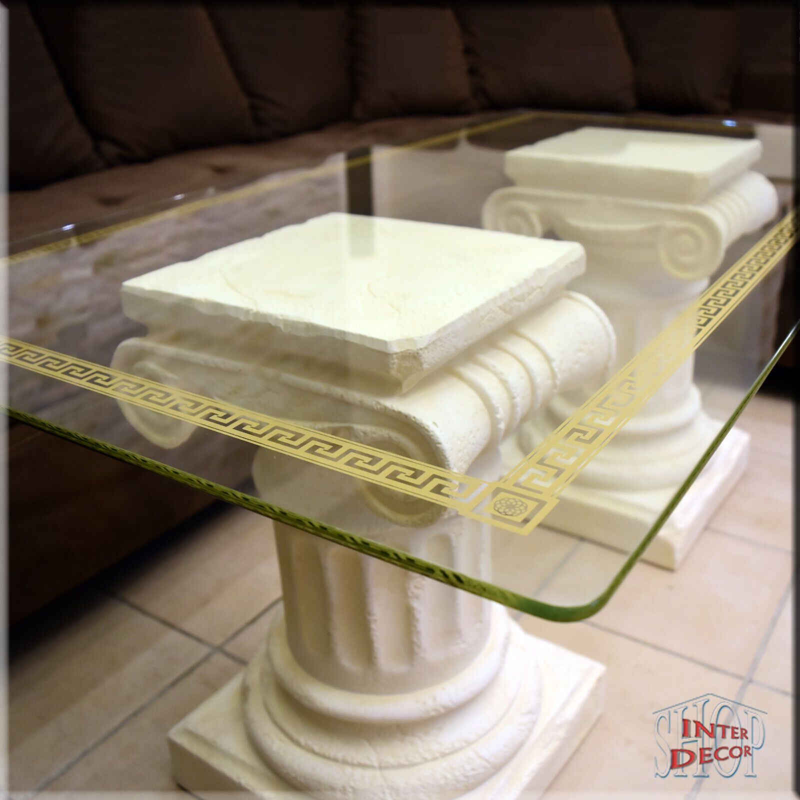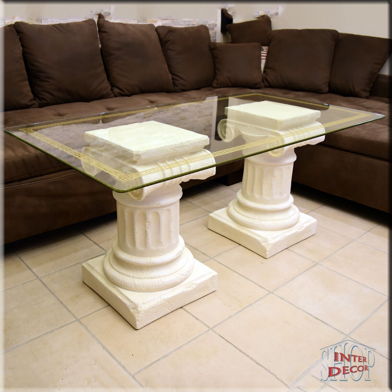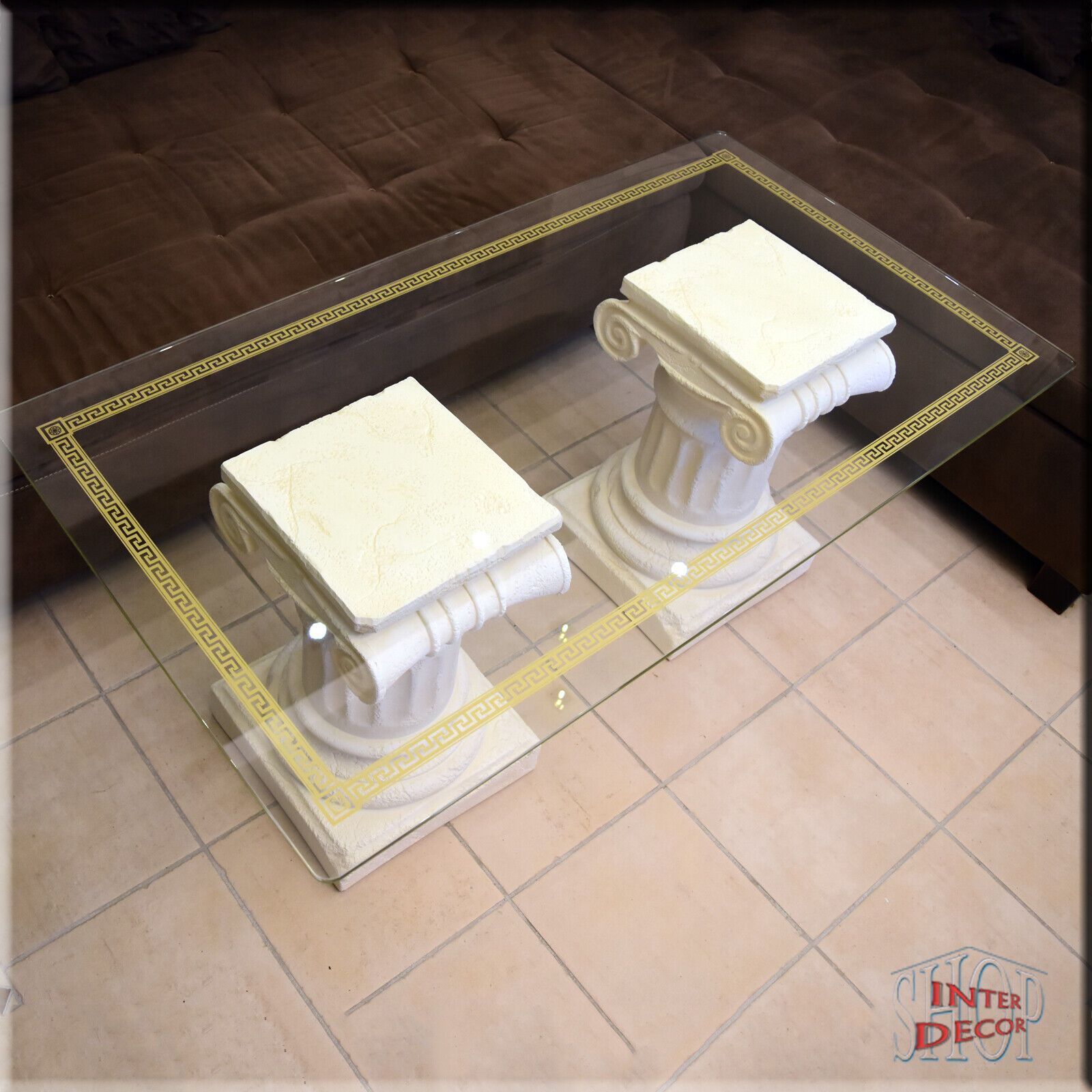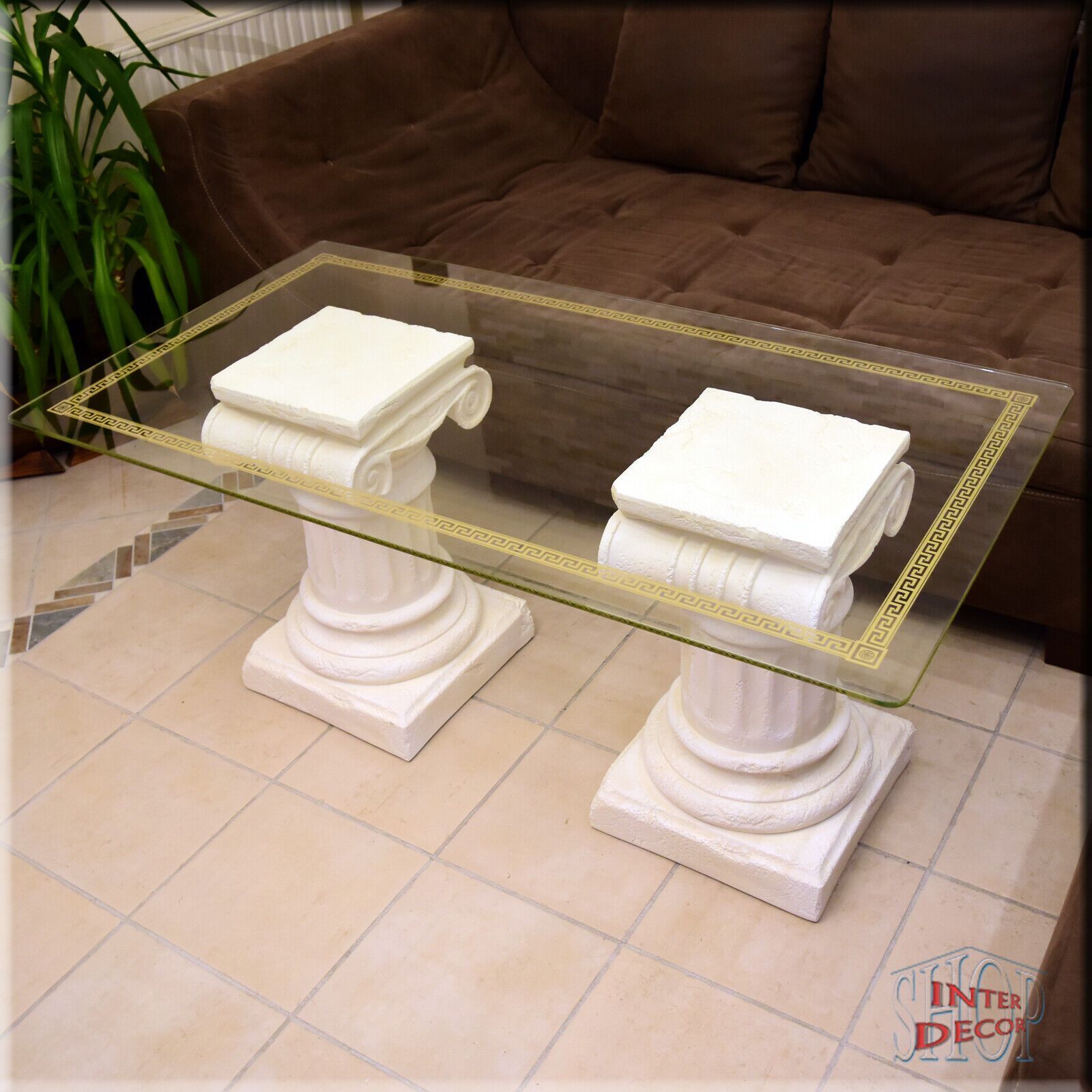 Couchtisch Glas Glastisch Säulen Wohnzimmertisch Tisch Design Wohnzimmer 128,5cm