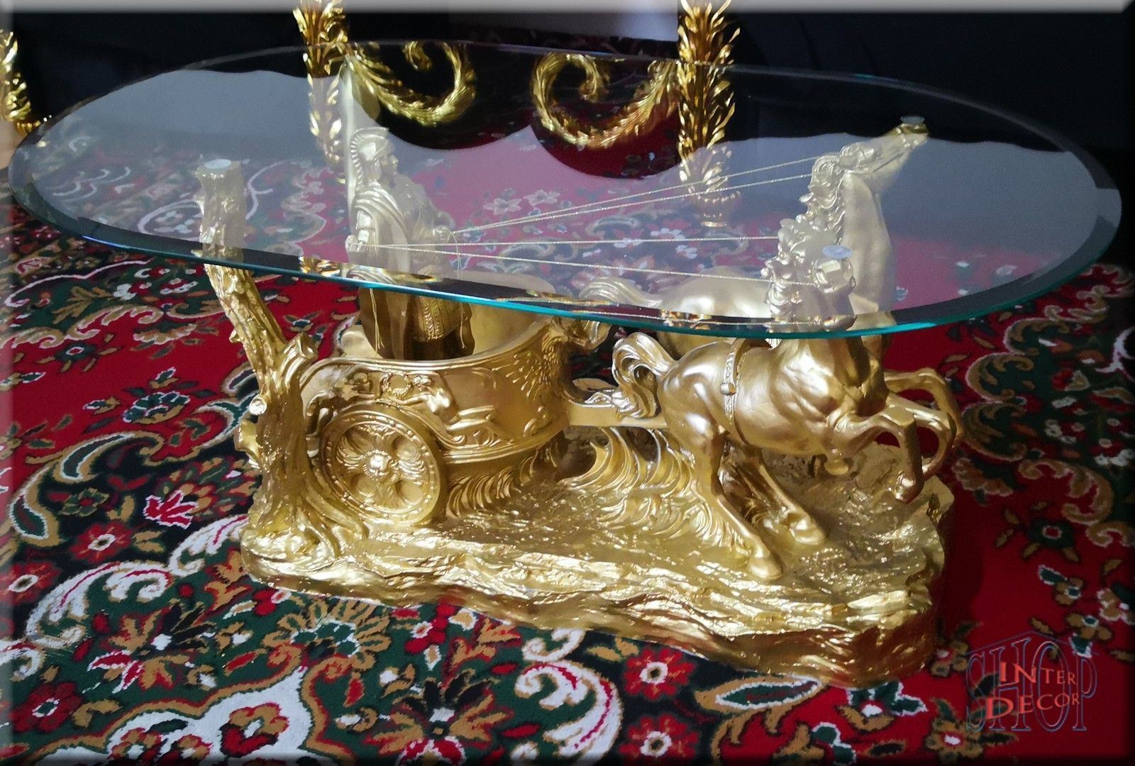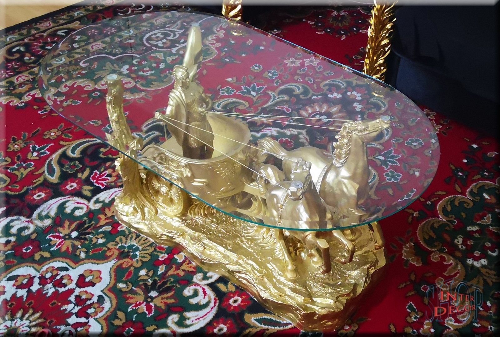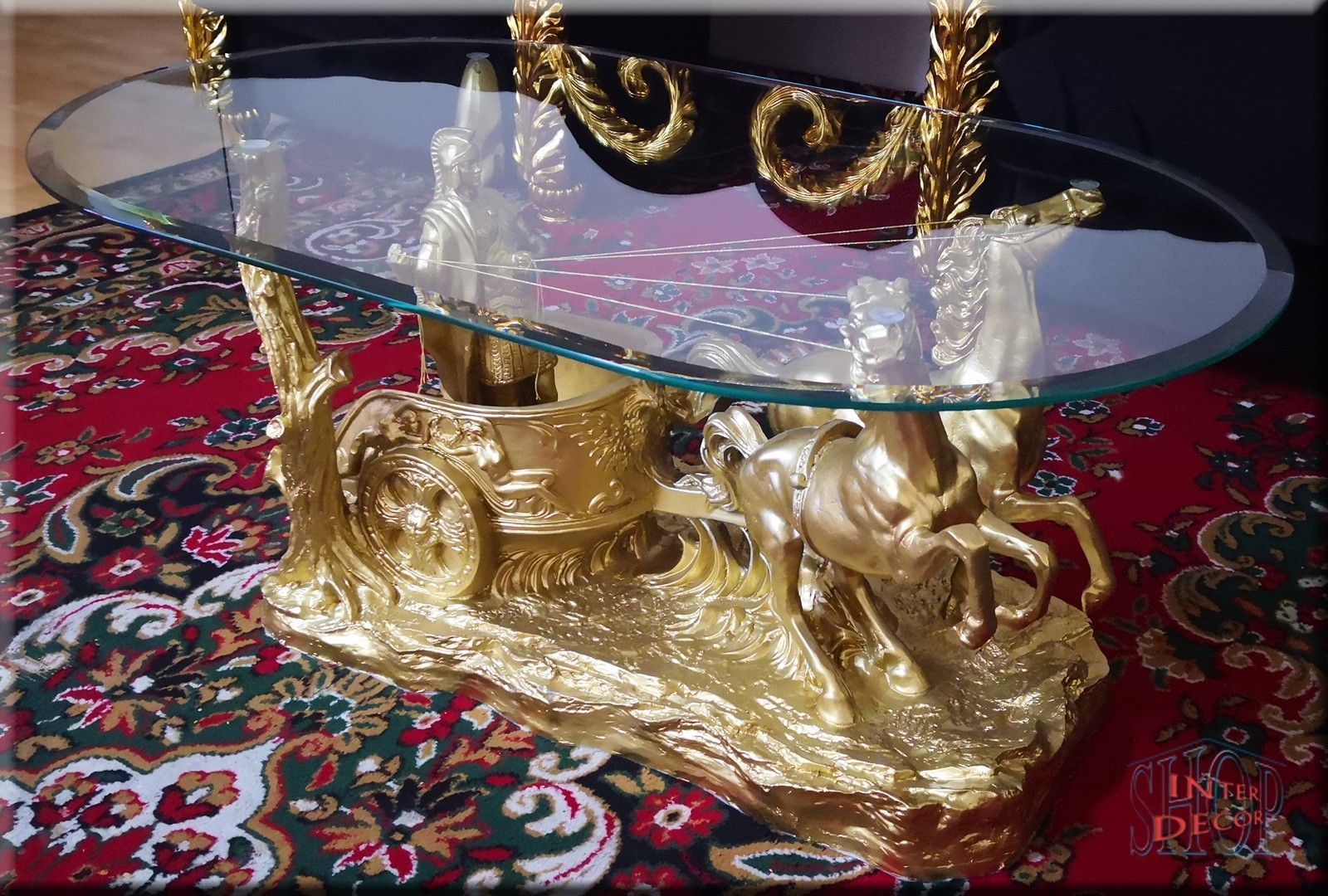 Couchtisch Glas Glastisch Wohnzimmertisch Ben Hur Gold Tisch Sofatisch Kunstharz