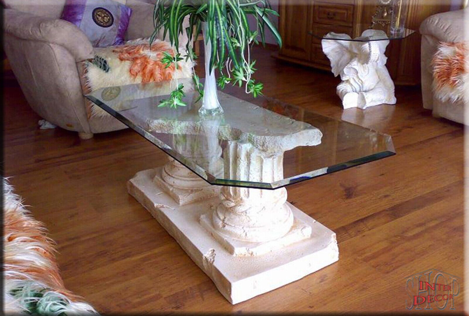 Couchtisch Glas Glastisch Wohnzimmertisch Tisch Akropolis Design Antik Kunstharz