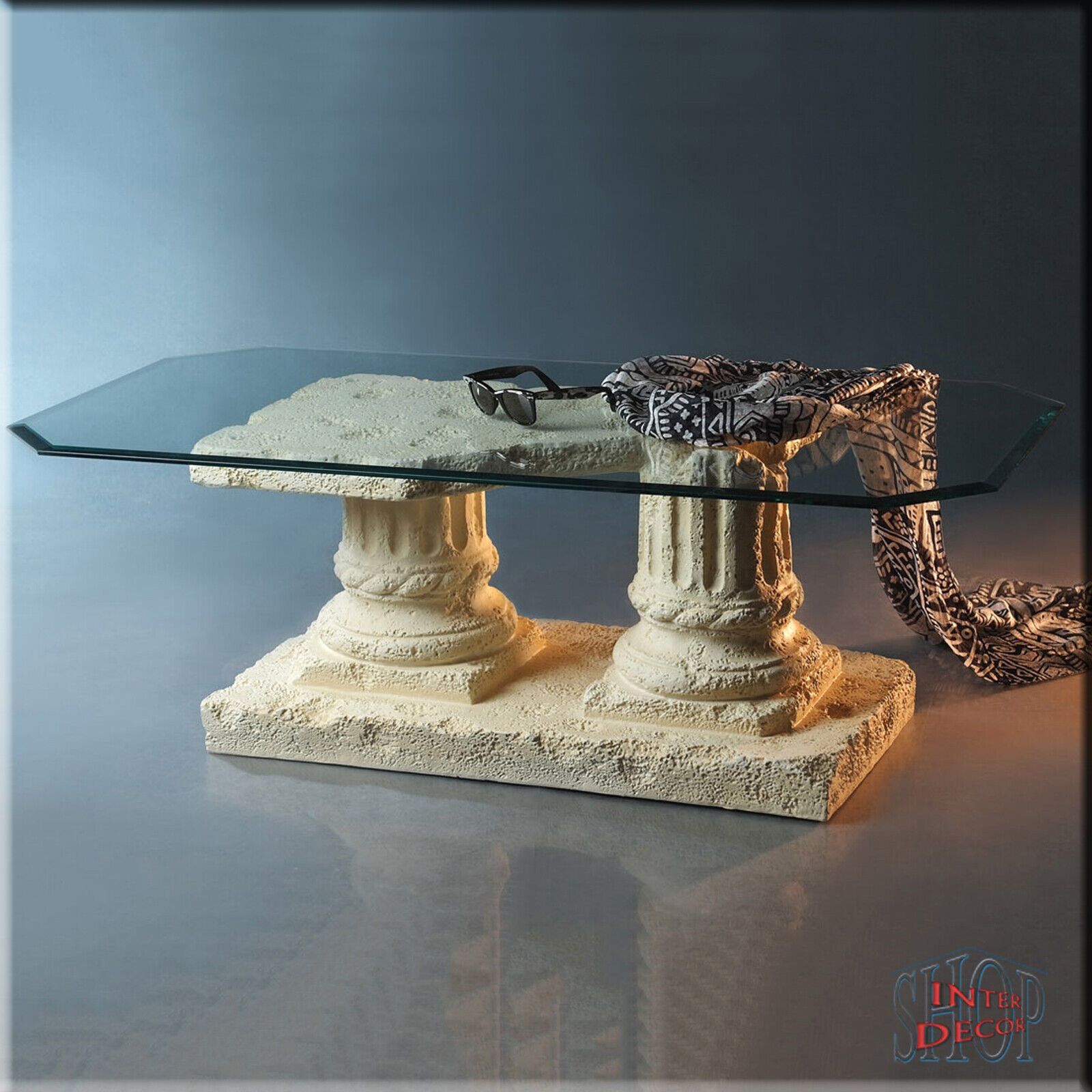 Couchtisch Glas Glastisch Wohnzimmertisch Tisch Akropolis Design Antik Kunstharz