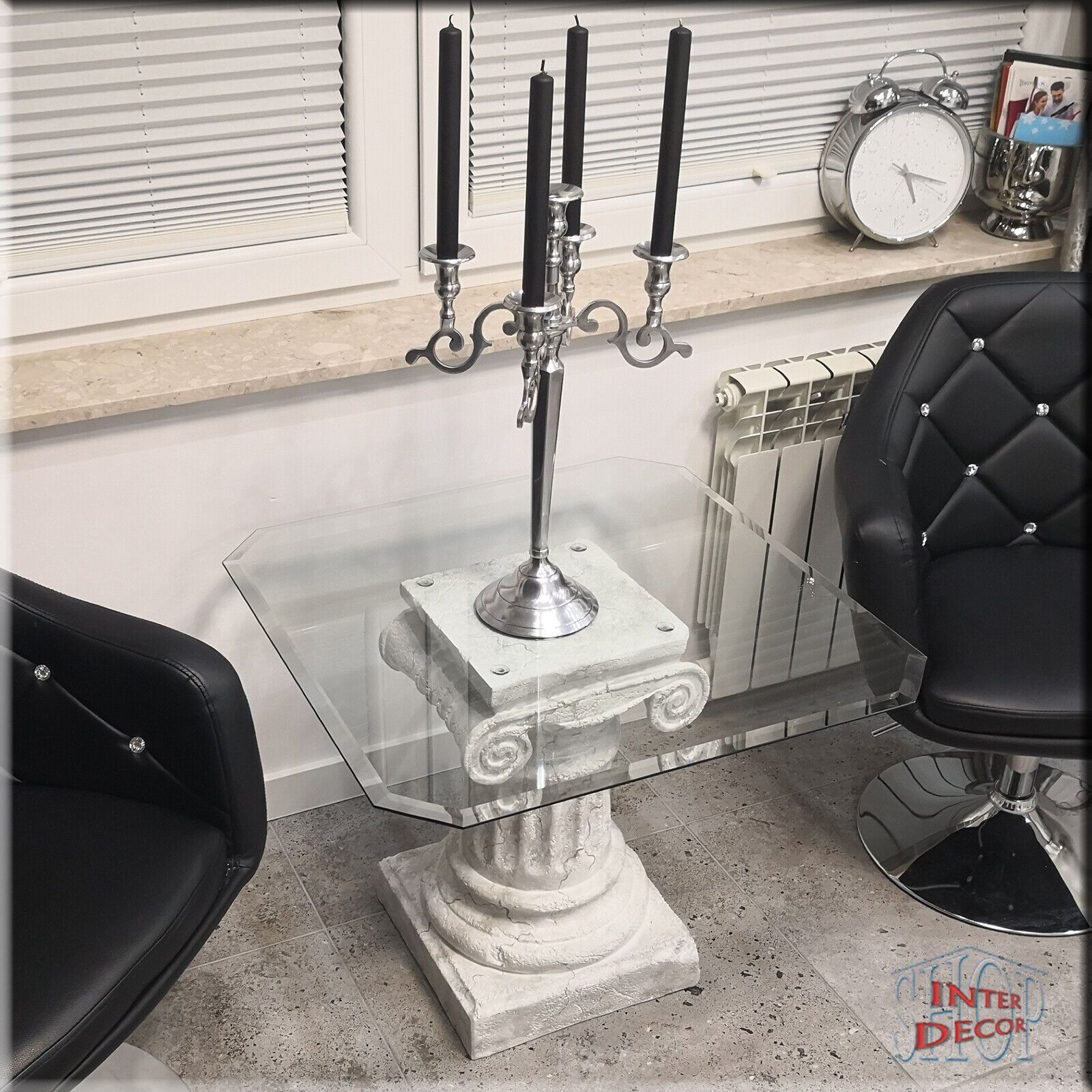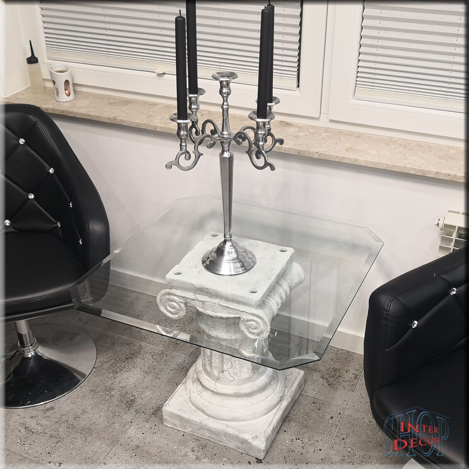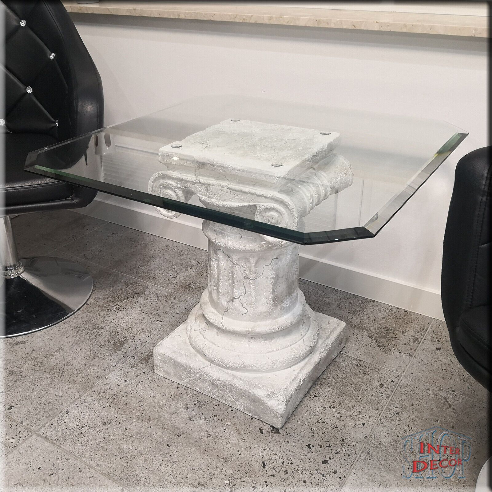 Couchtisch Glastisch Beistelltisch Glas Wohnzimmertisch Säule Marmor Optik 70 cm