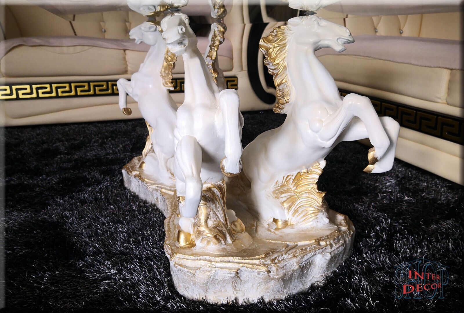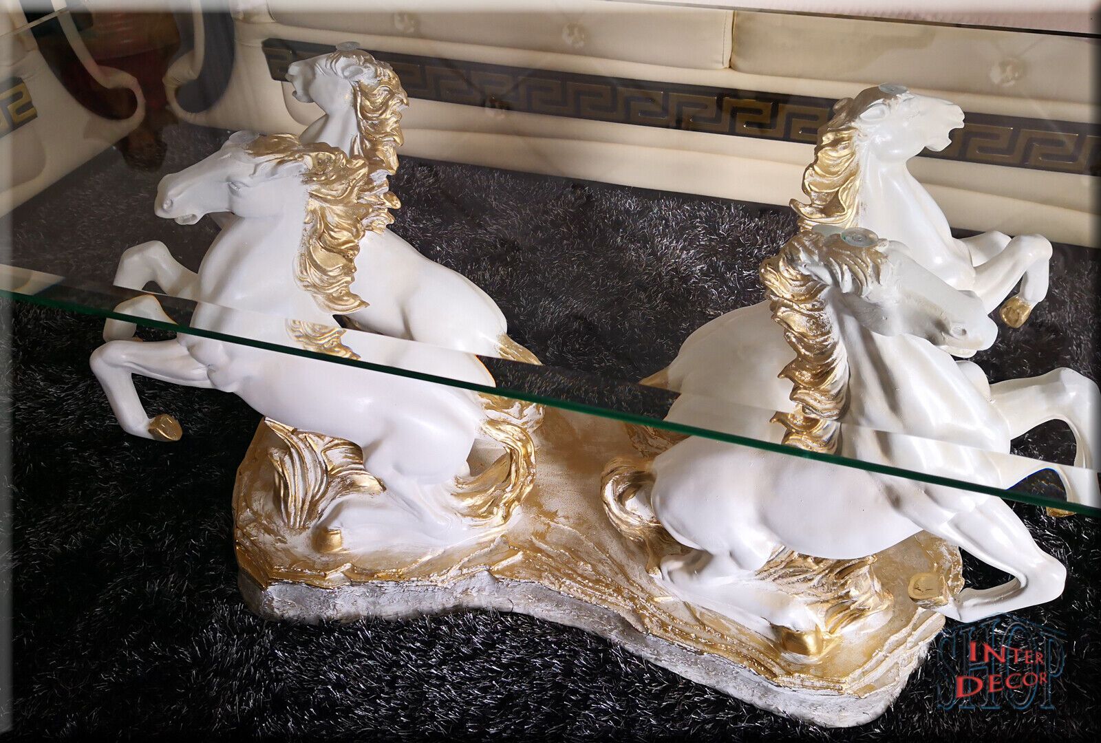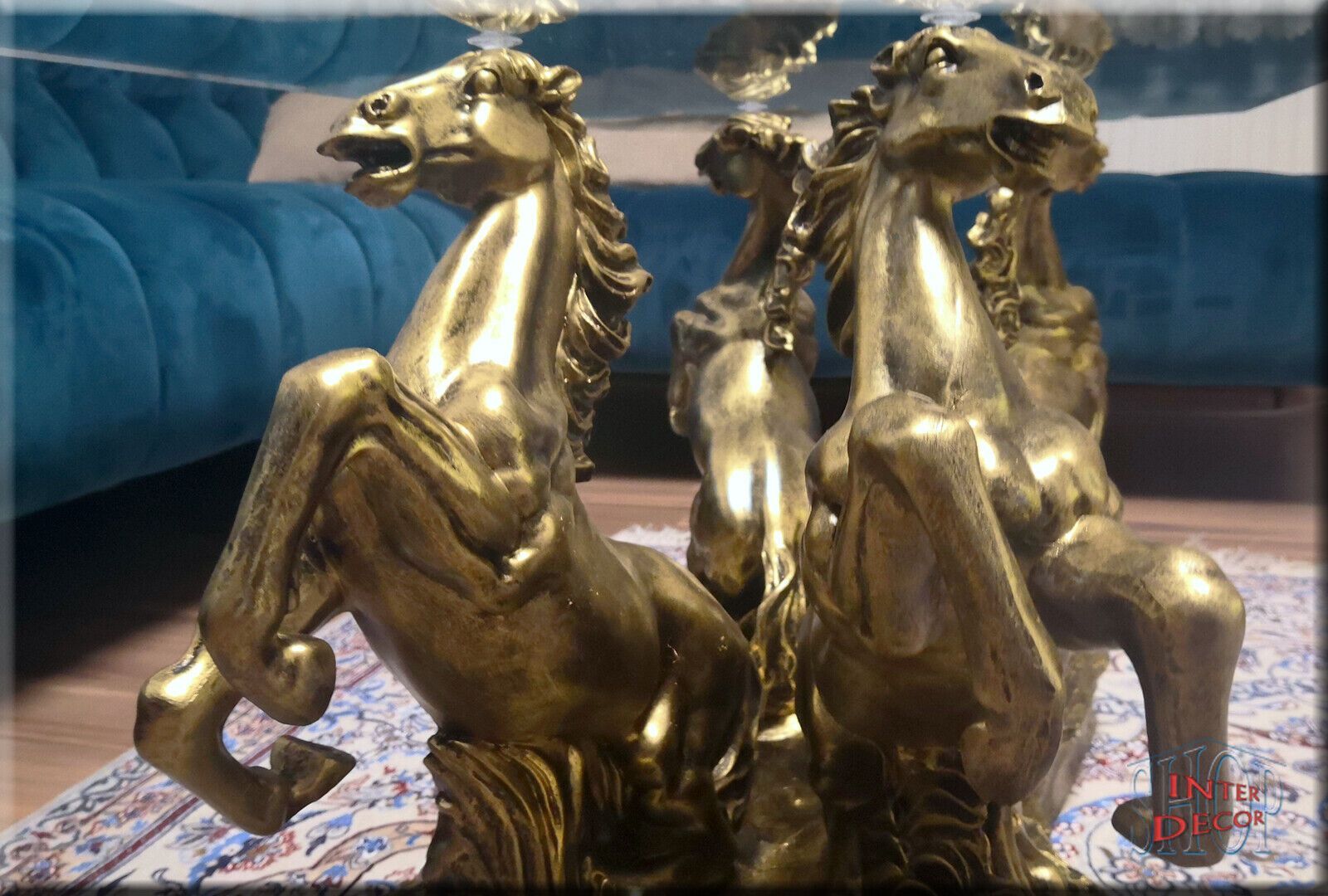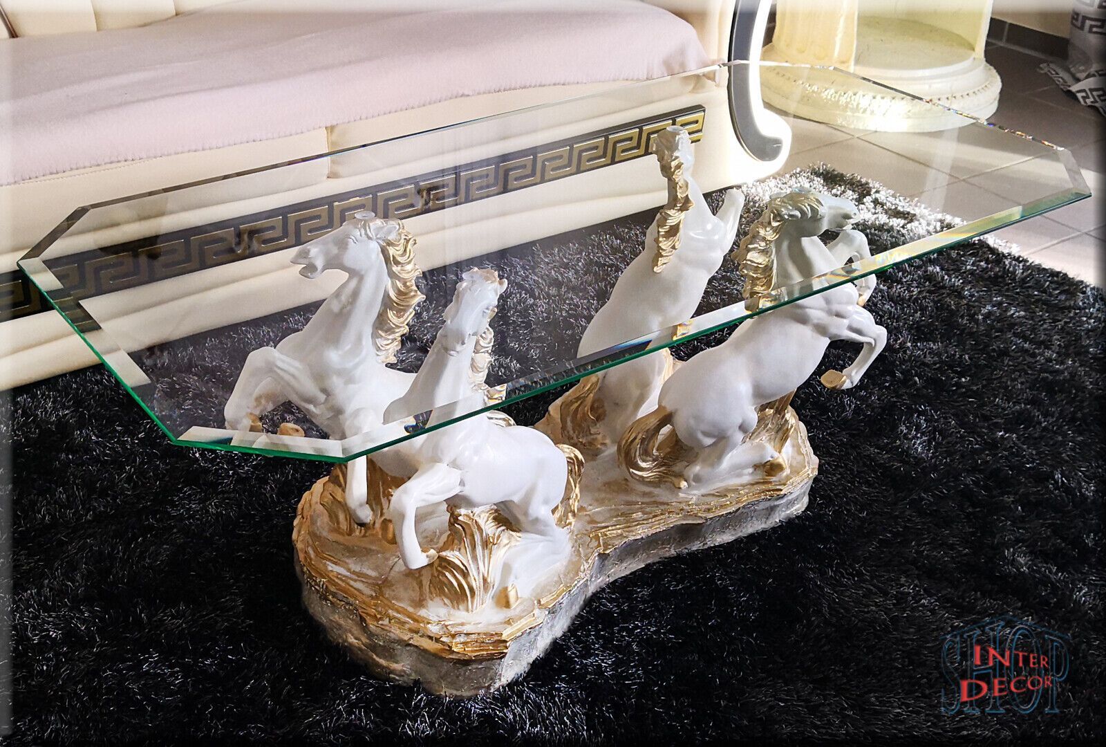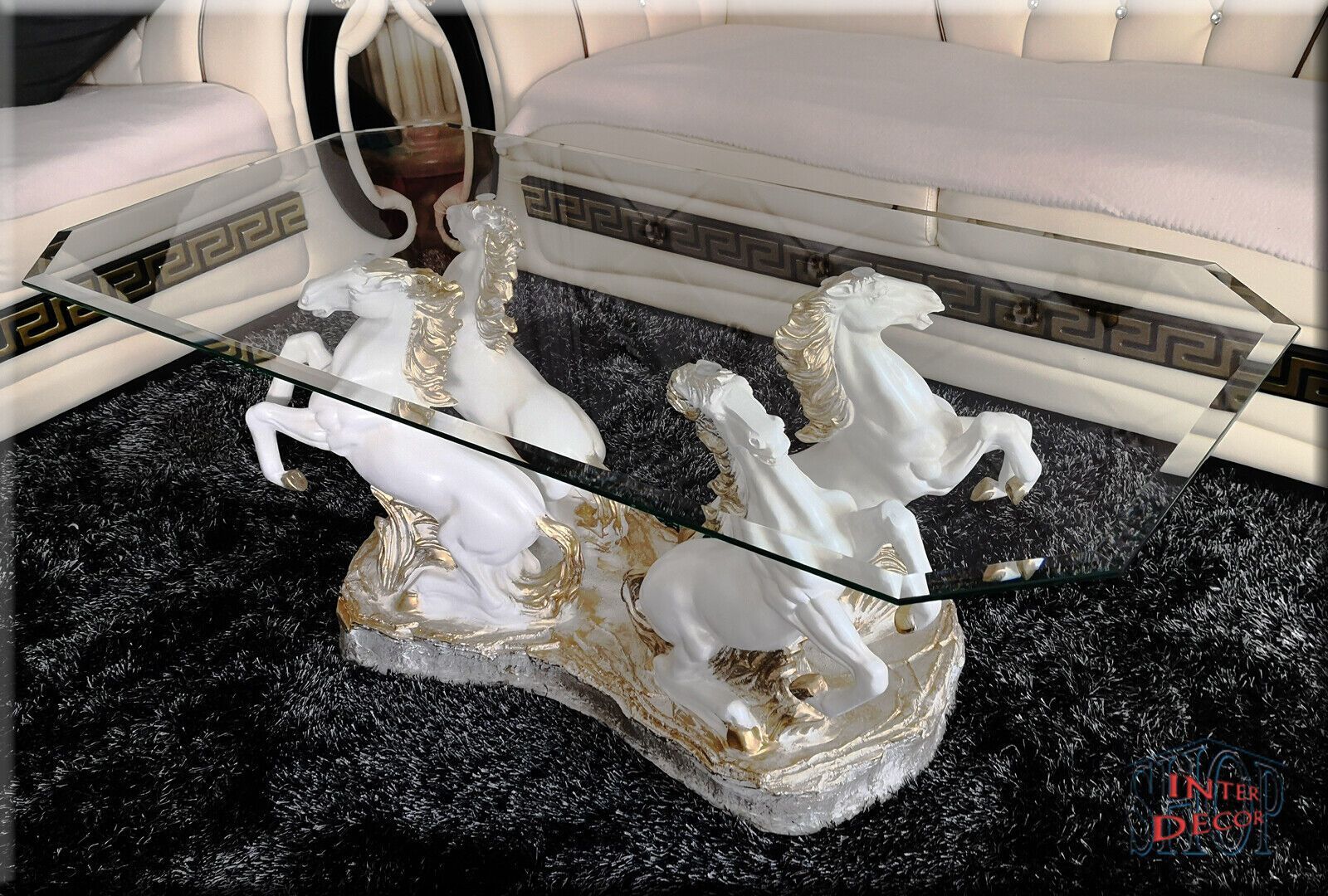 Couchtisch Glastisch Wohnzimmertisch Design Pferde Modern Tisch Sofa-Tisch Glas