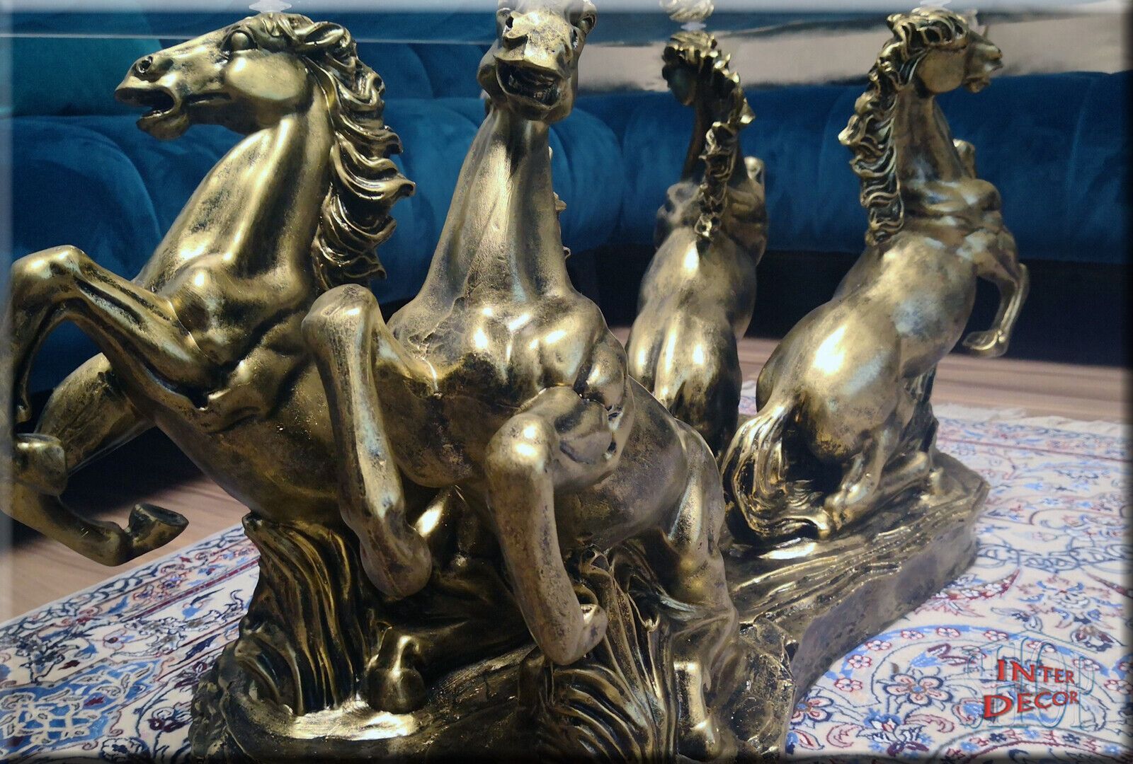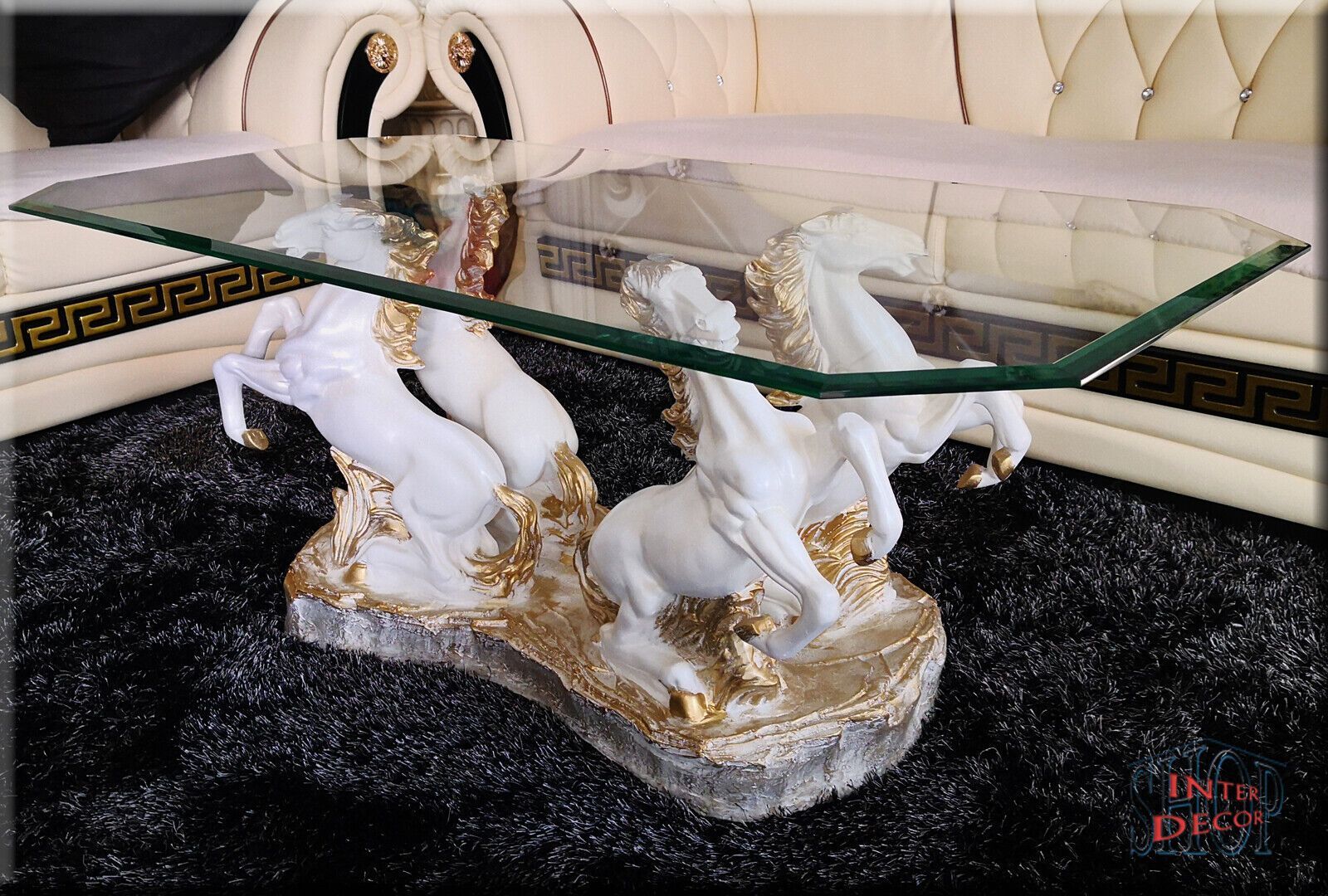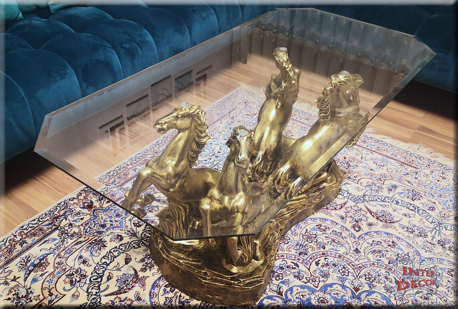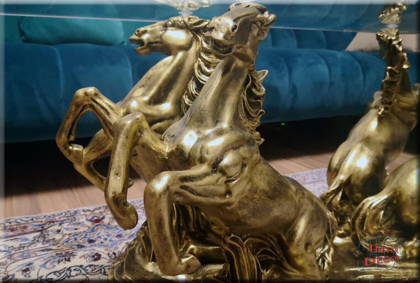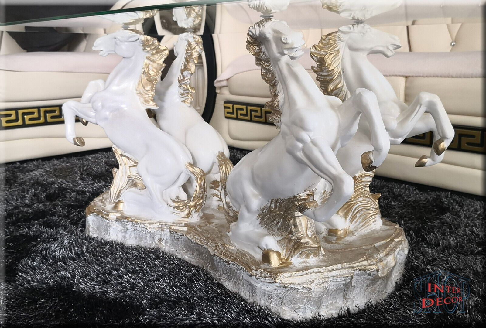 Couchtisch Glastisch Wohnzimmertisch Design Pferde Modern Tisch Sofa-Tisch Glas