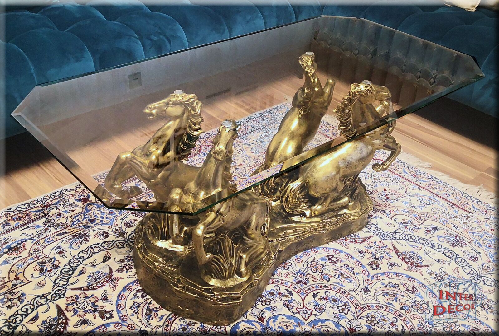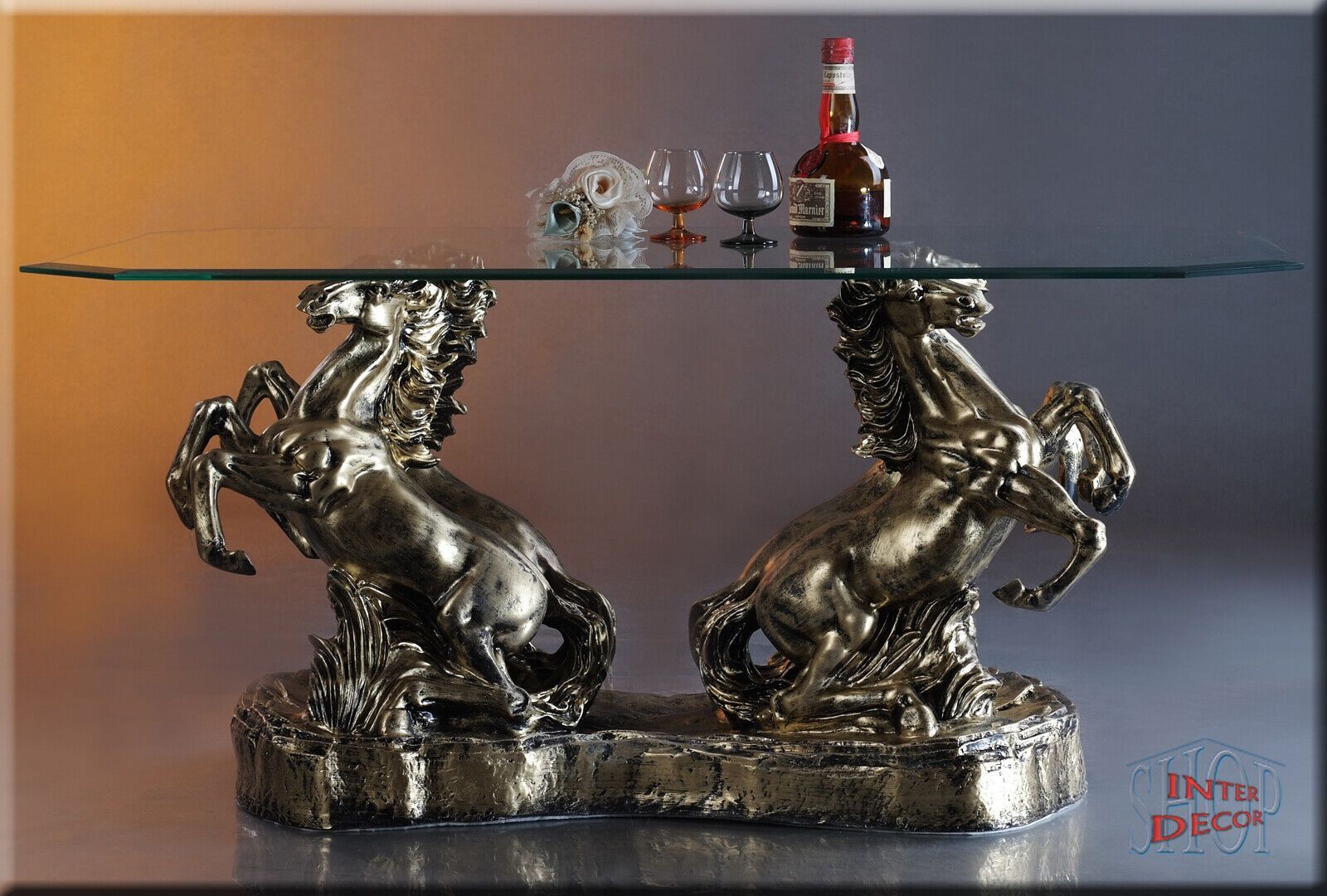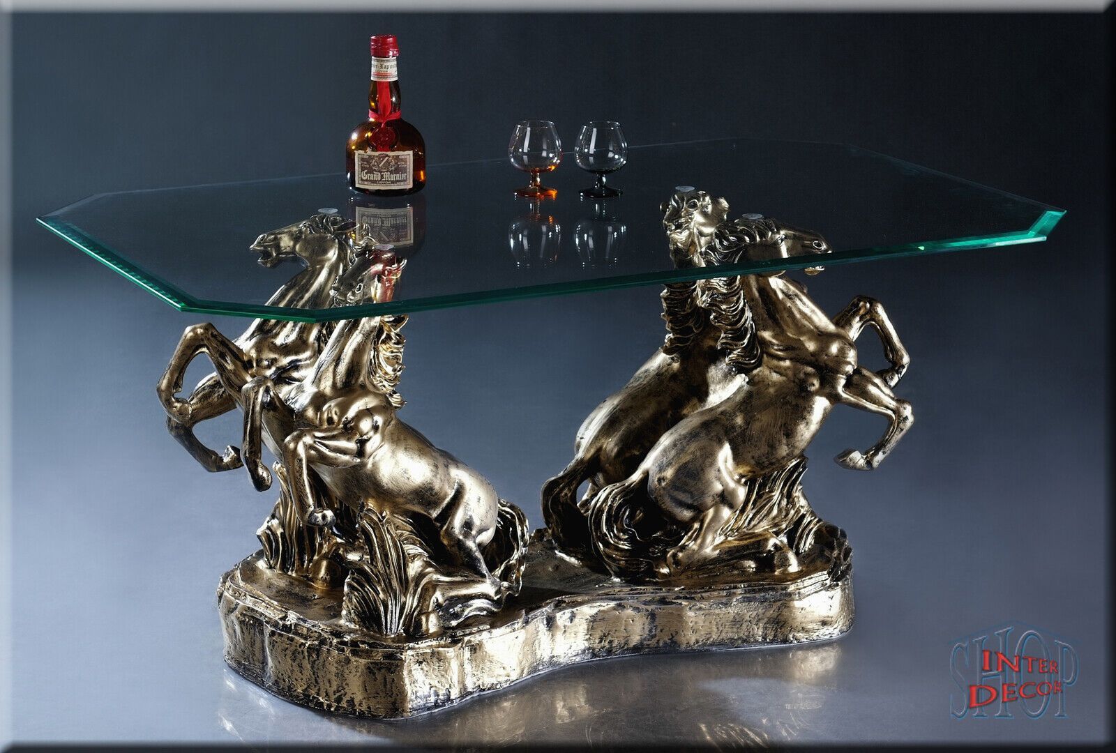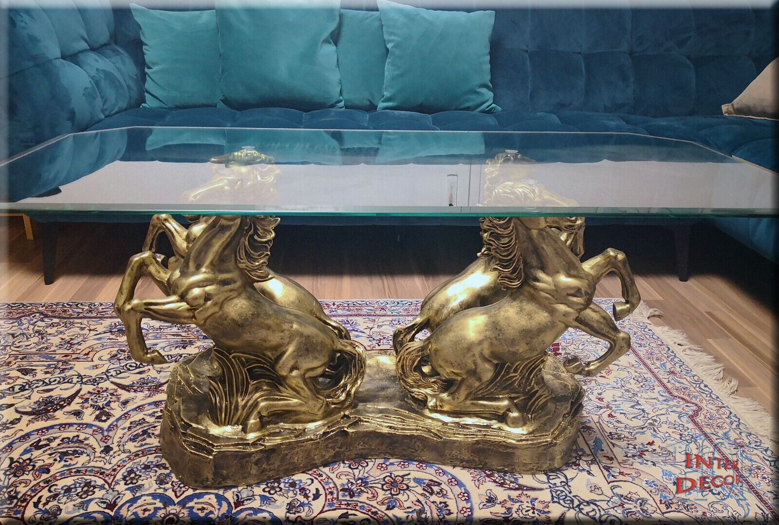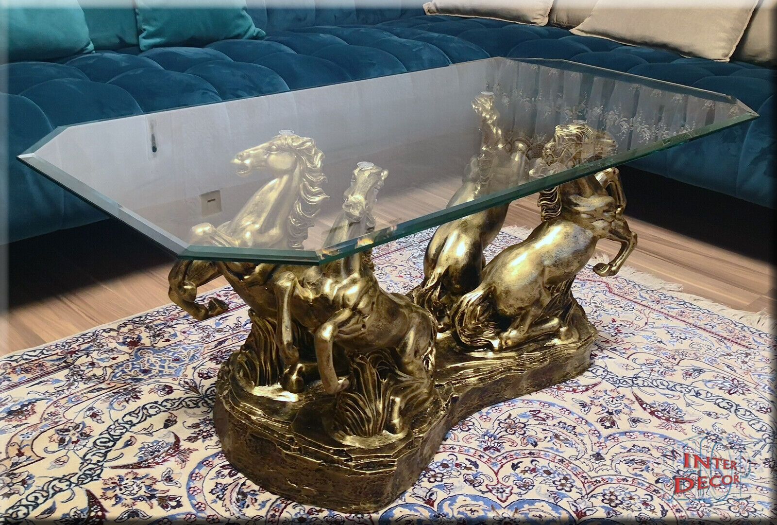 Couchtisch Glastisch Wohnzimmertisch Design Pferde Modern Tisch Sofa-Tisch Glas