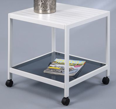 • Couchtisch weiss Wohnzimmertisch auf Rollen Glastisch - (4352)