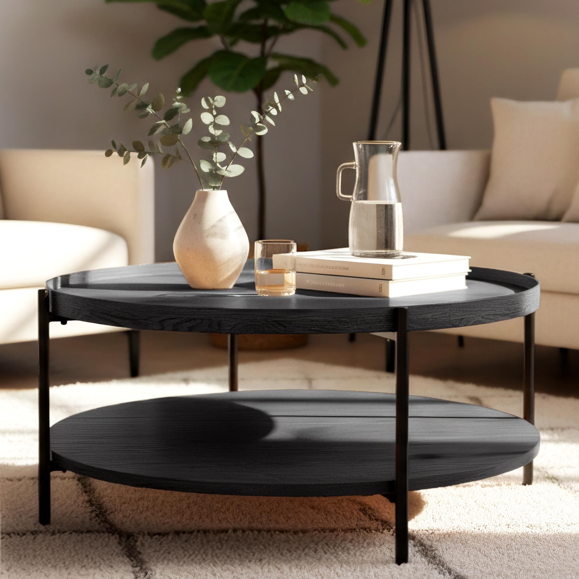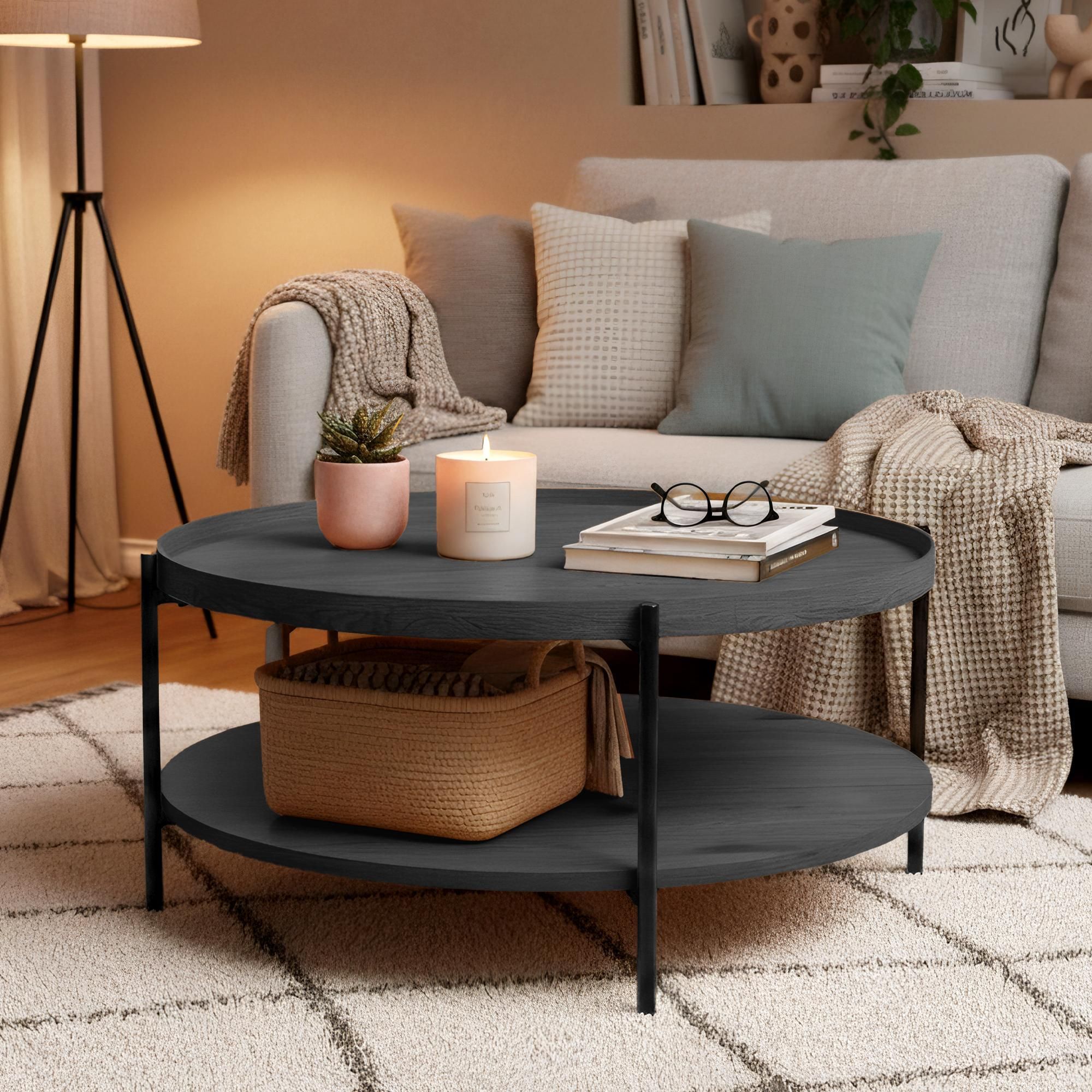 Couchtisch HONIM Holz Grau 80x80x40 cm Sofatisch Rund Beistelltisch Holz