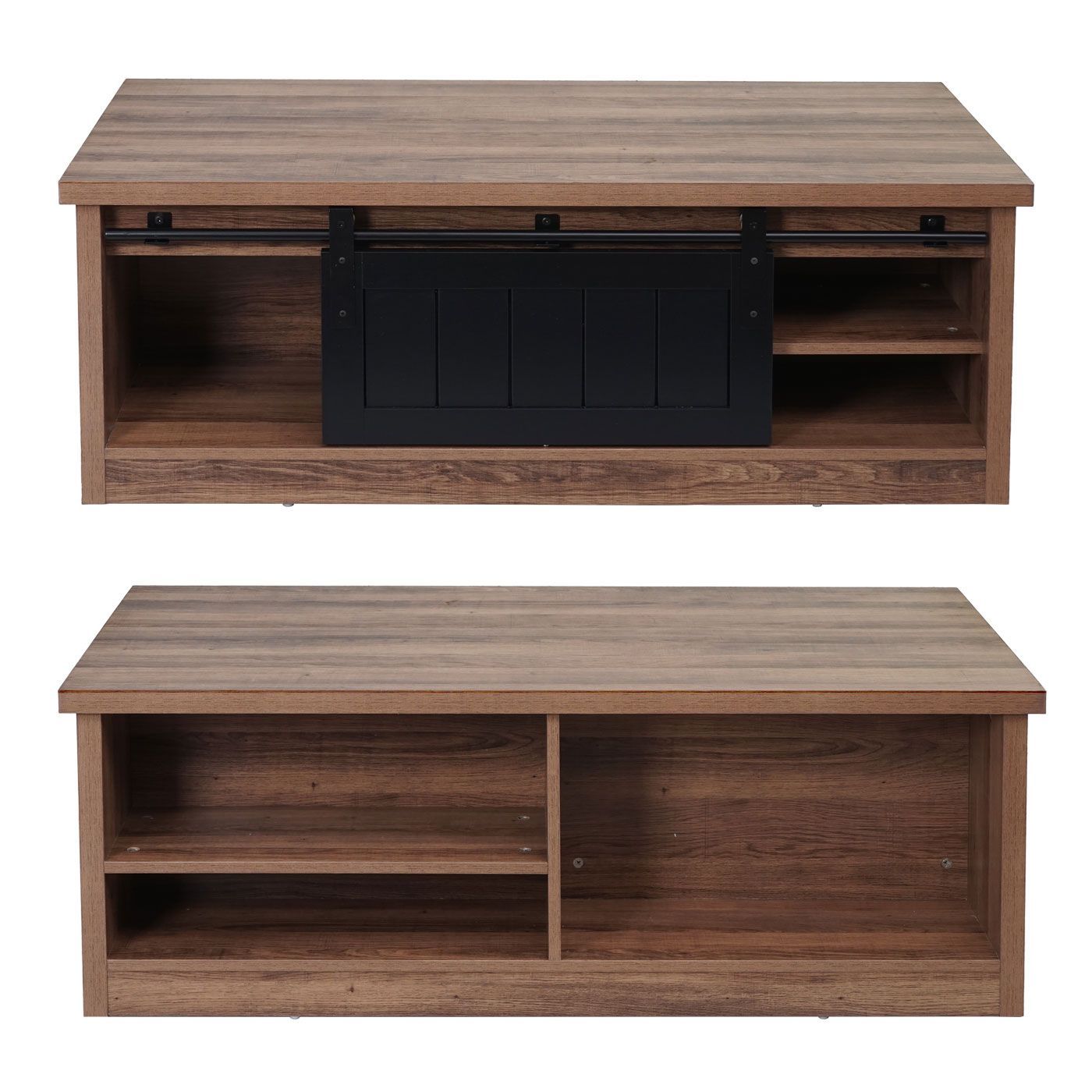 Mendler Couchtisch HWC-K75, Beistelltisch, Schiebetüre 6 Staufächer, Holz-Optik Industrial