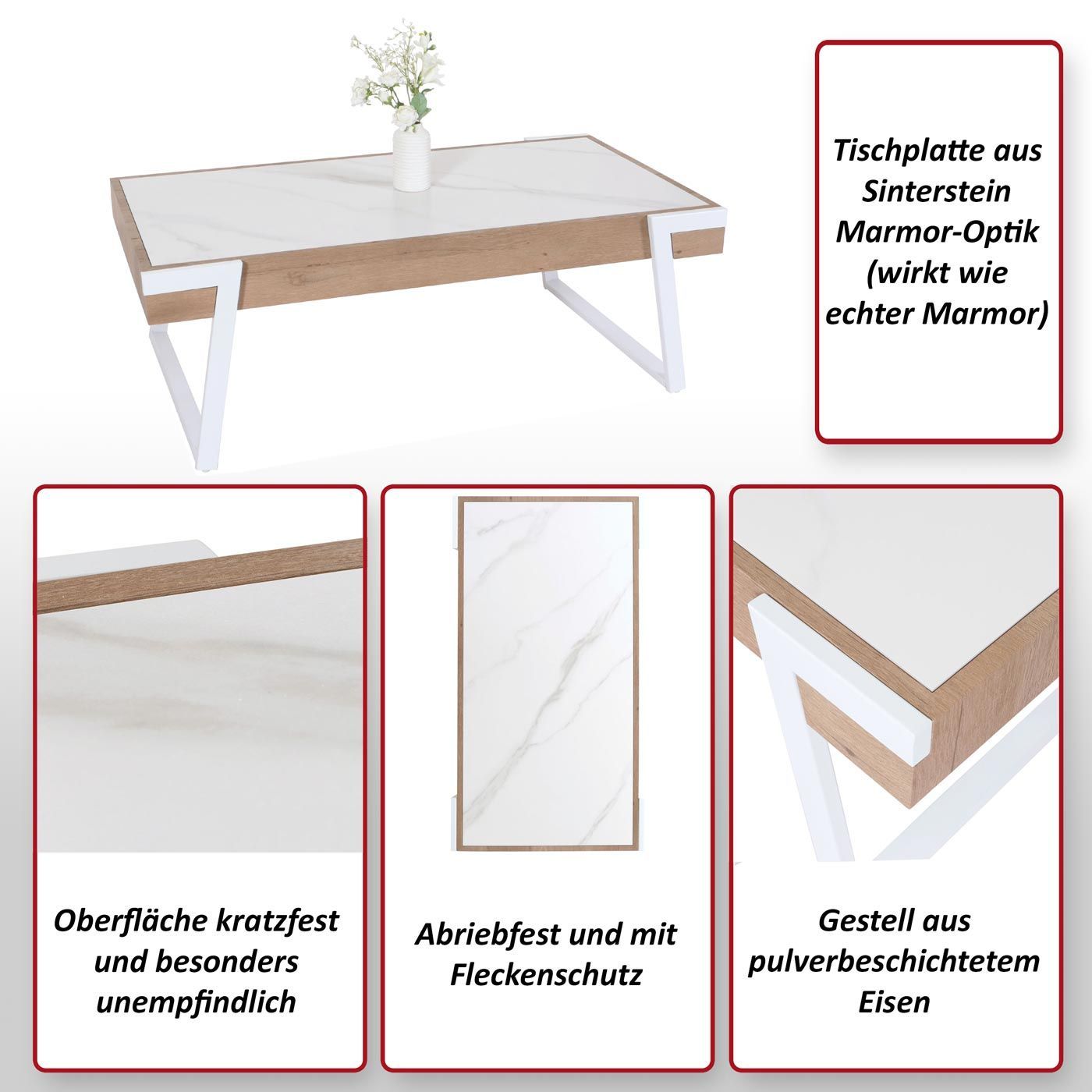 Mendler Couchtisch HWC-L89, Sofatisch Wohnzimmertisch, Eisen 43x120x64cm Sinterstein