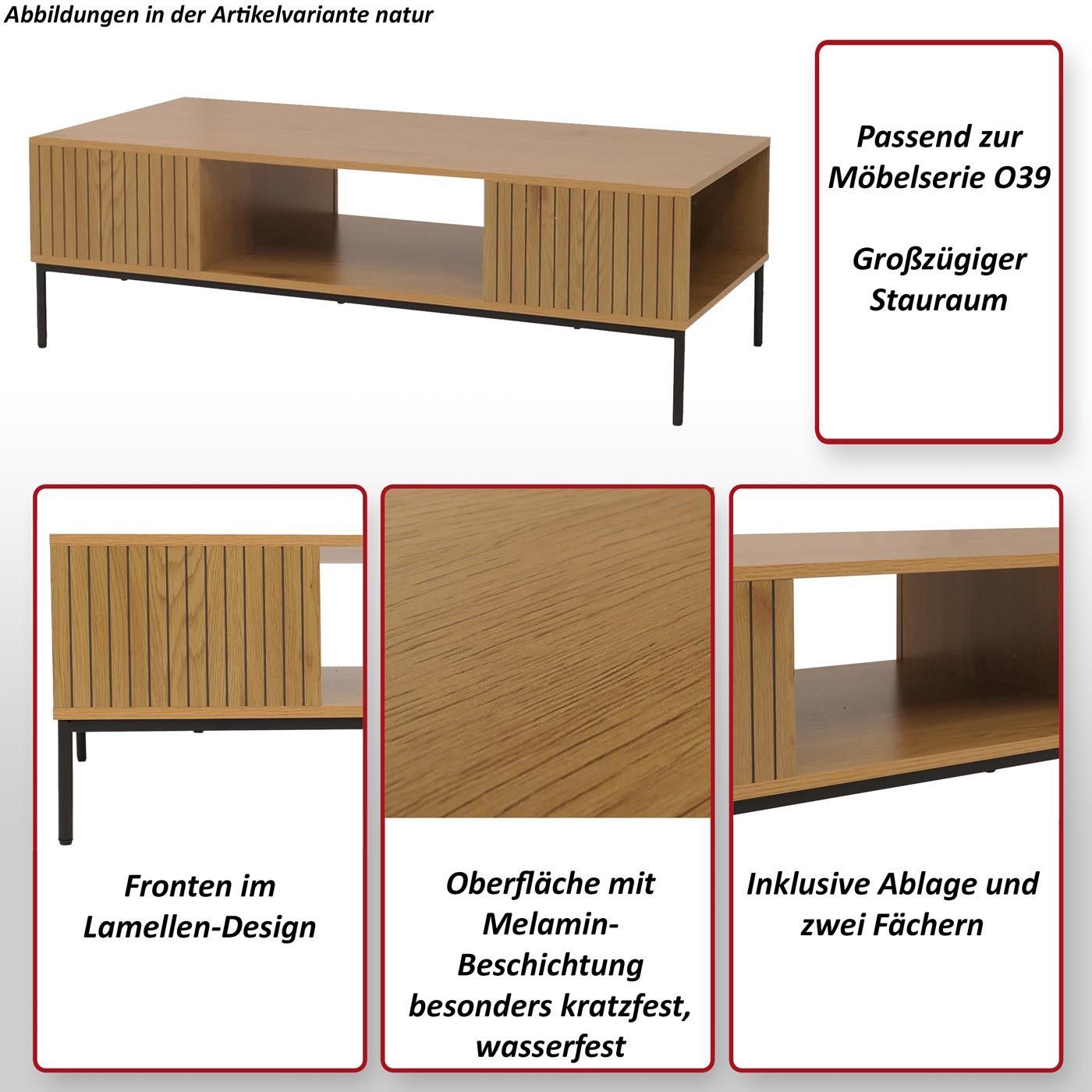 Mendler Couchtisch HWC-O39, Tisch Sofatisch Beistelltisch Ablage, Melamin MDF 39x120x60cm