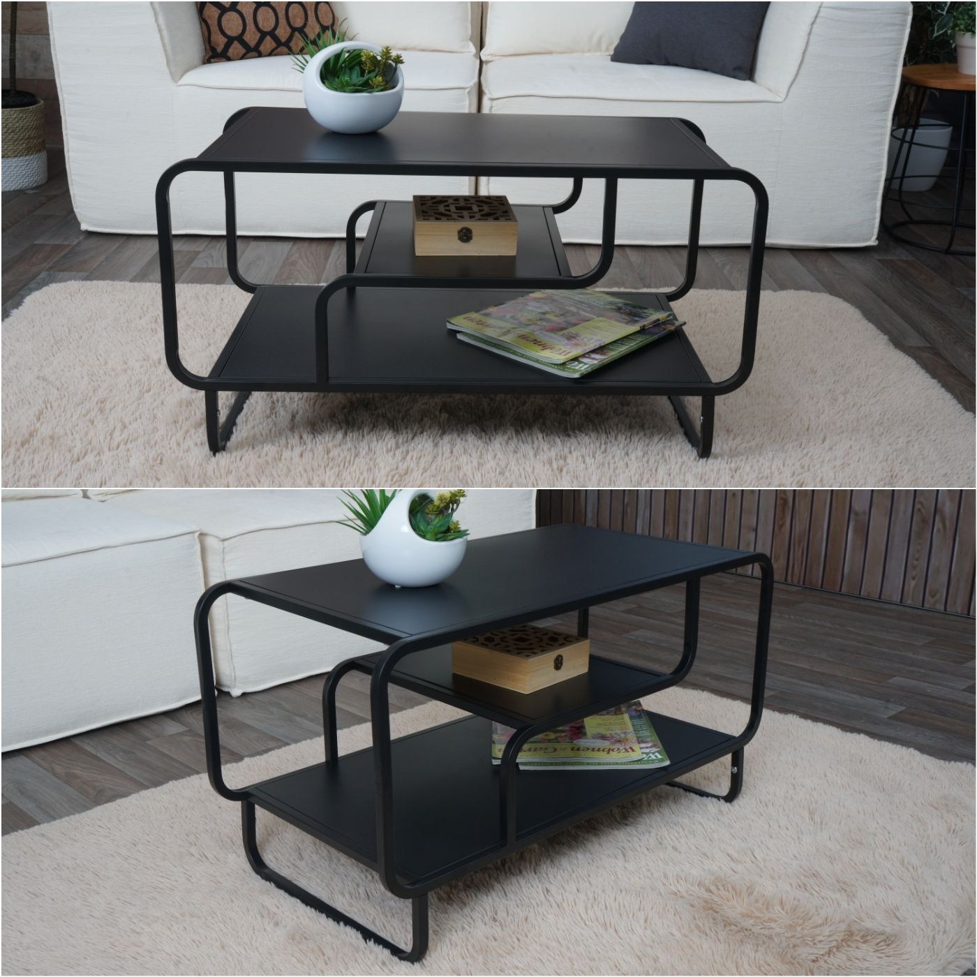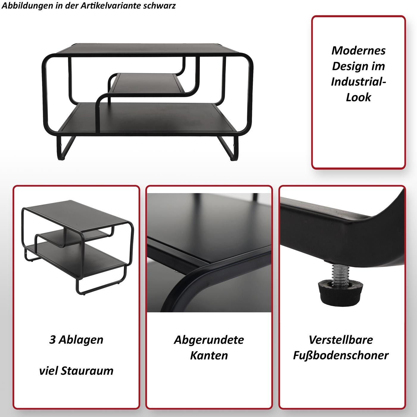 Mendler Couchtisch HWC-O49, Wohnzimmertisch Tisch, Industrial 3 Ablagen, Metall 45x80x40cm