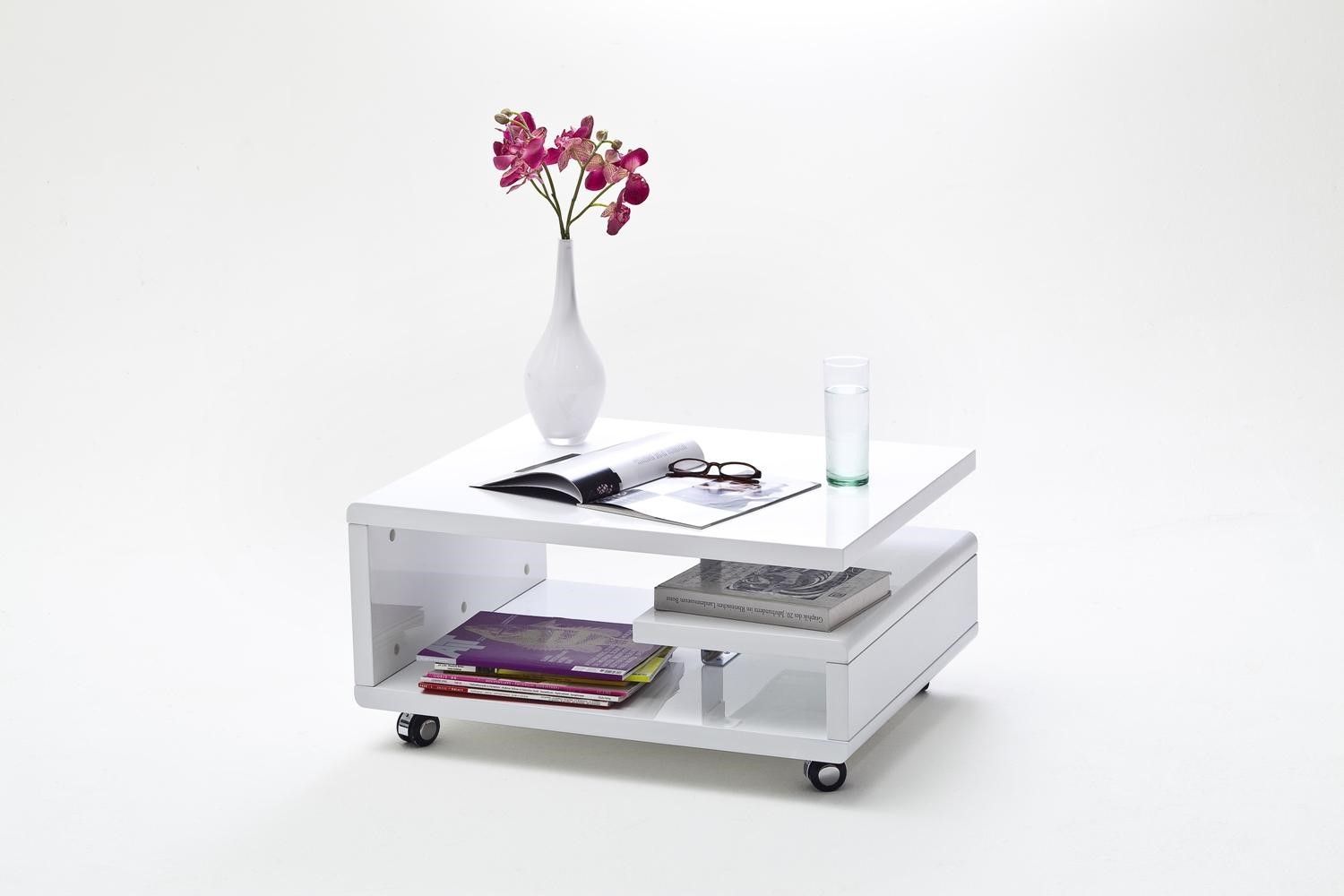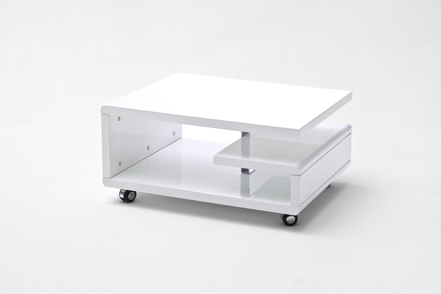 MCA Couchtisch Kaira mit 4 Rollen Hochglanz-weiß
