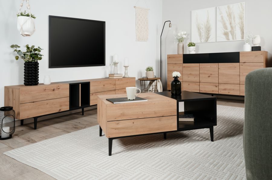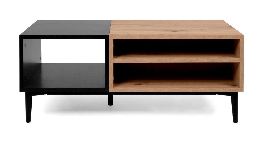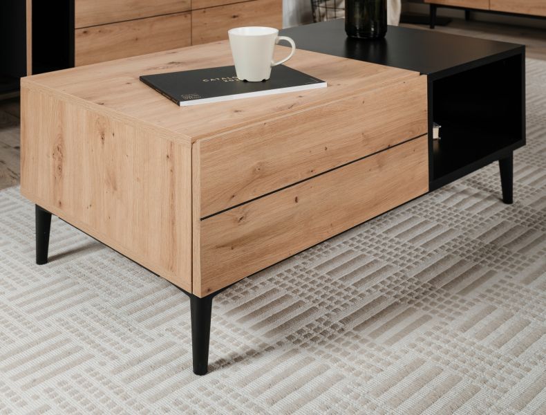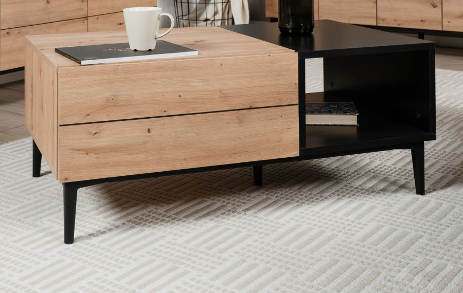 Couchtisch "Liam" in Artisan Eiche und schwarz Beistelltisch mit Schubkasten 100 x 55