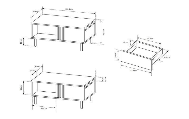 Couchtisch Madis Kaffetisch 100 cm Sofatisch mit Schublade