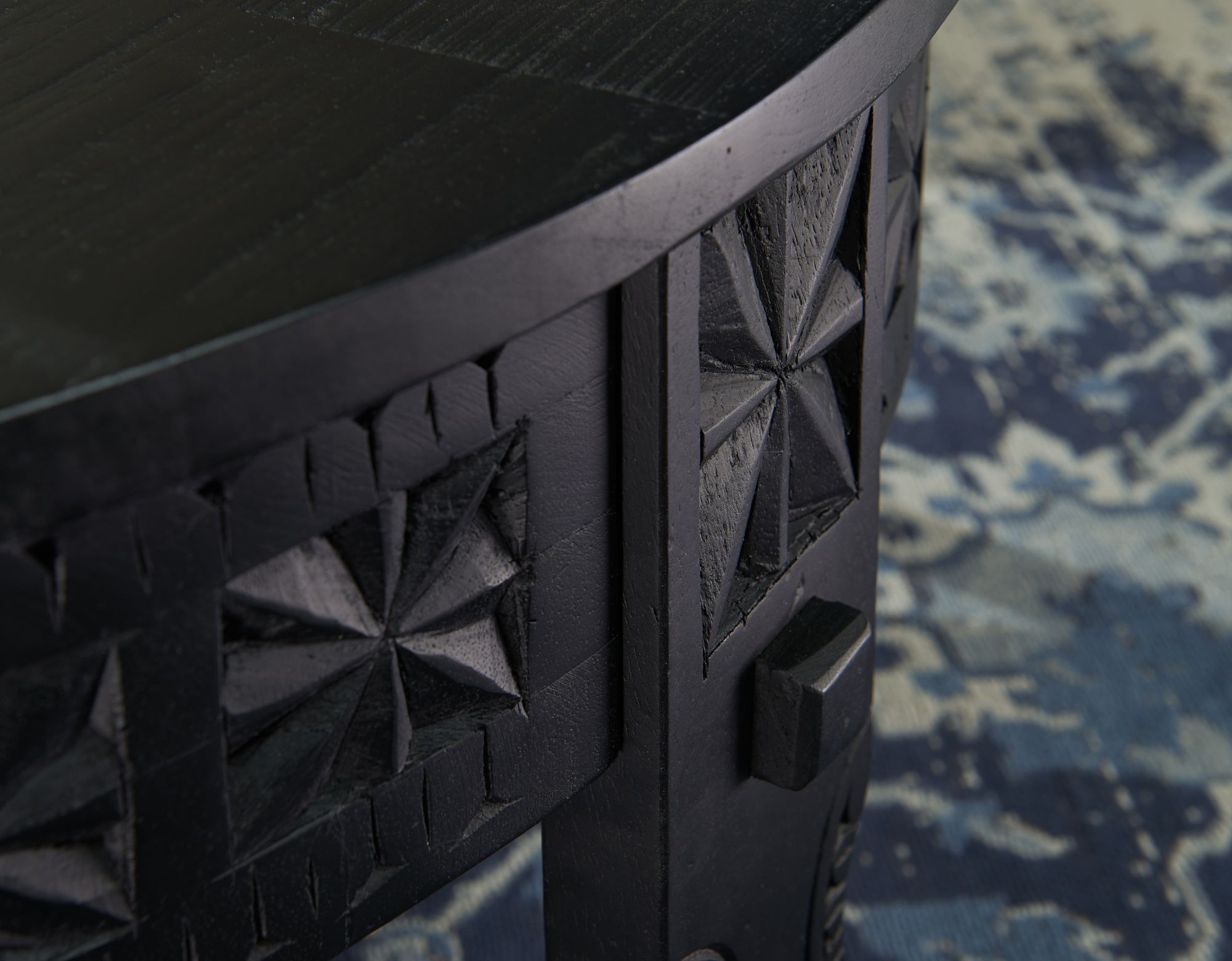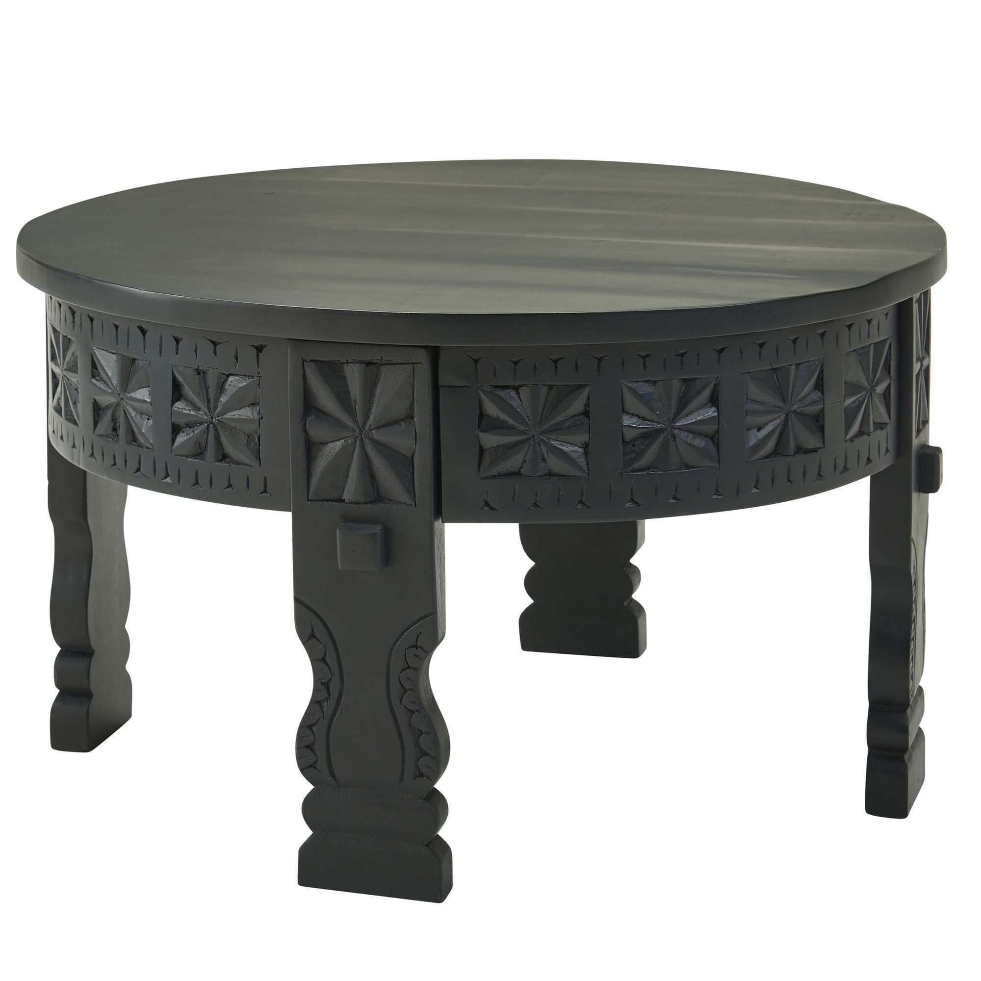 FineBuy Couchtisch Mango Massivholz rund · Handgeschnitzter Wohnzimmertisch im orientalischen Boho Design · Dunkler Massivholztisch
