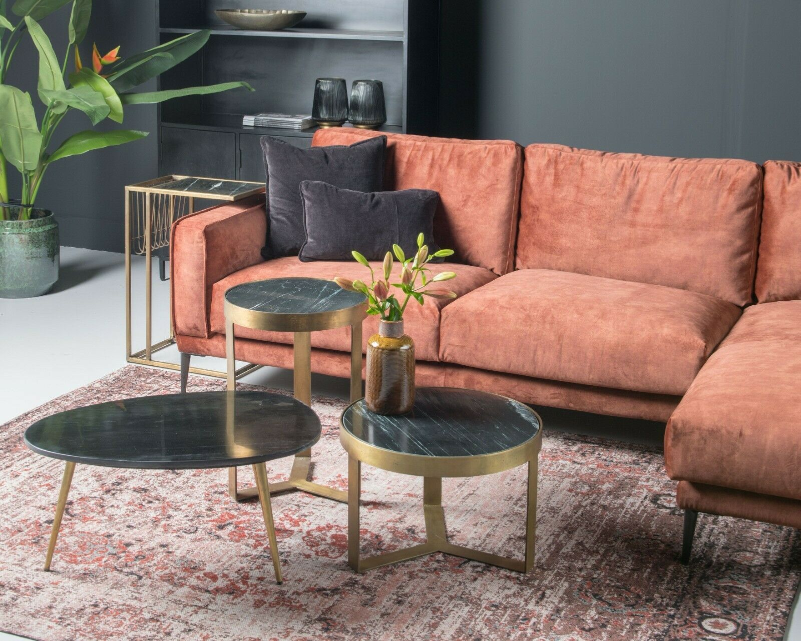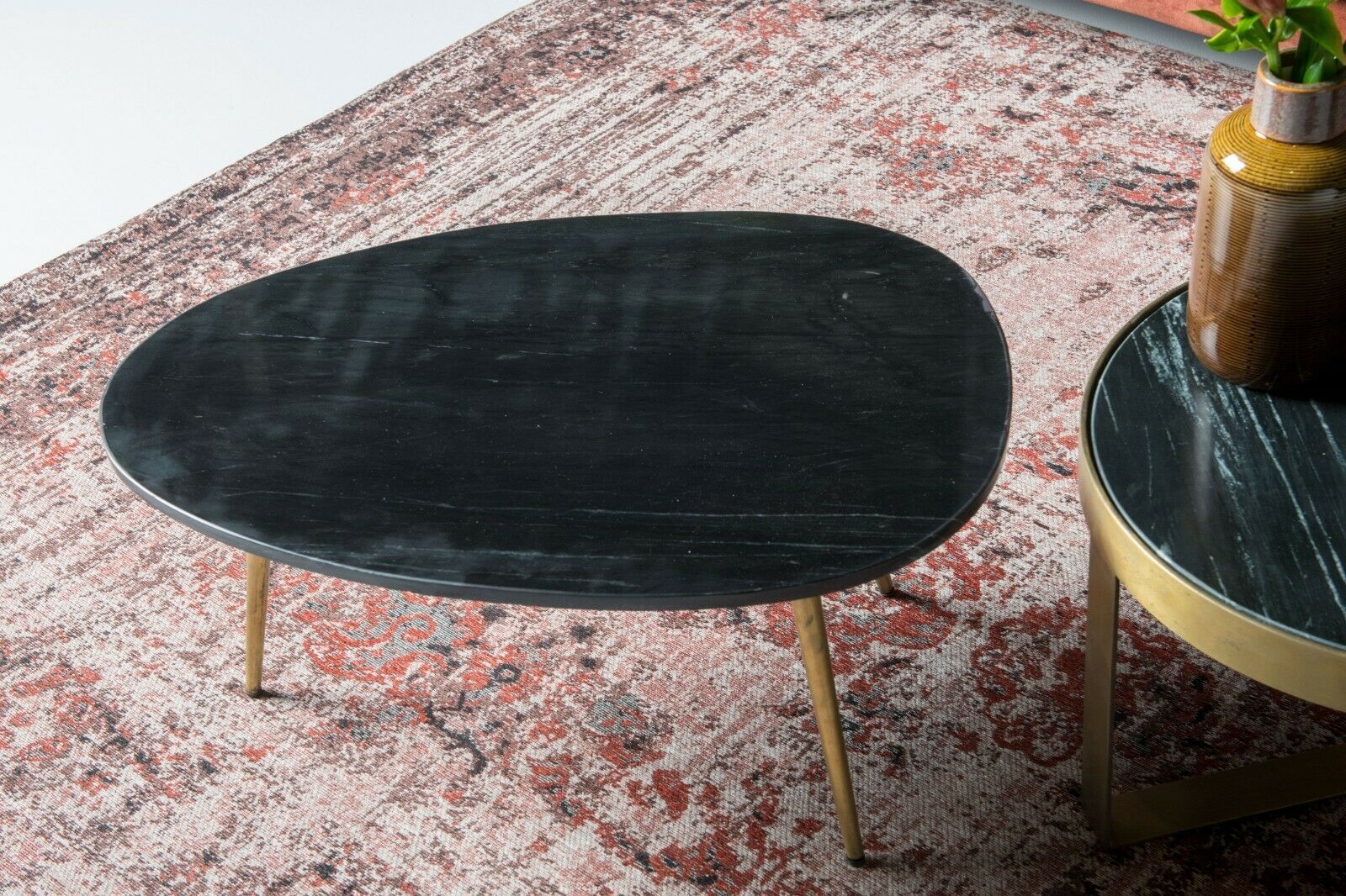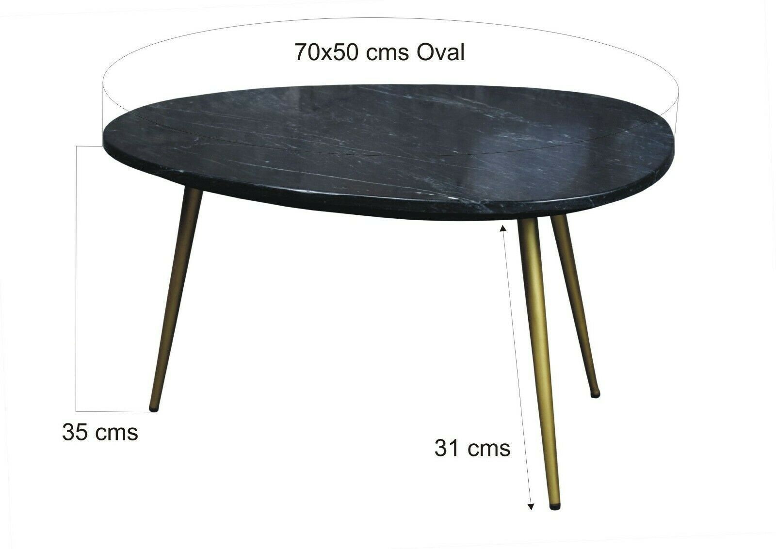 Couchtisch Marble Beistelltisch Sofa Marmor Stahl Schwarz Gold Sofatisch 70 x 50 cm