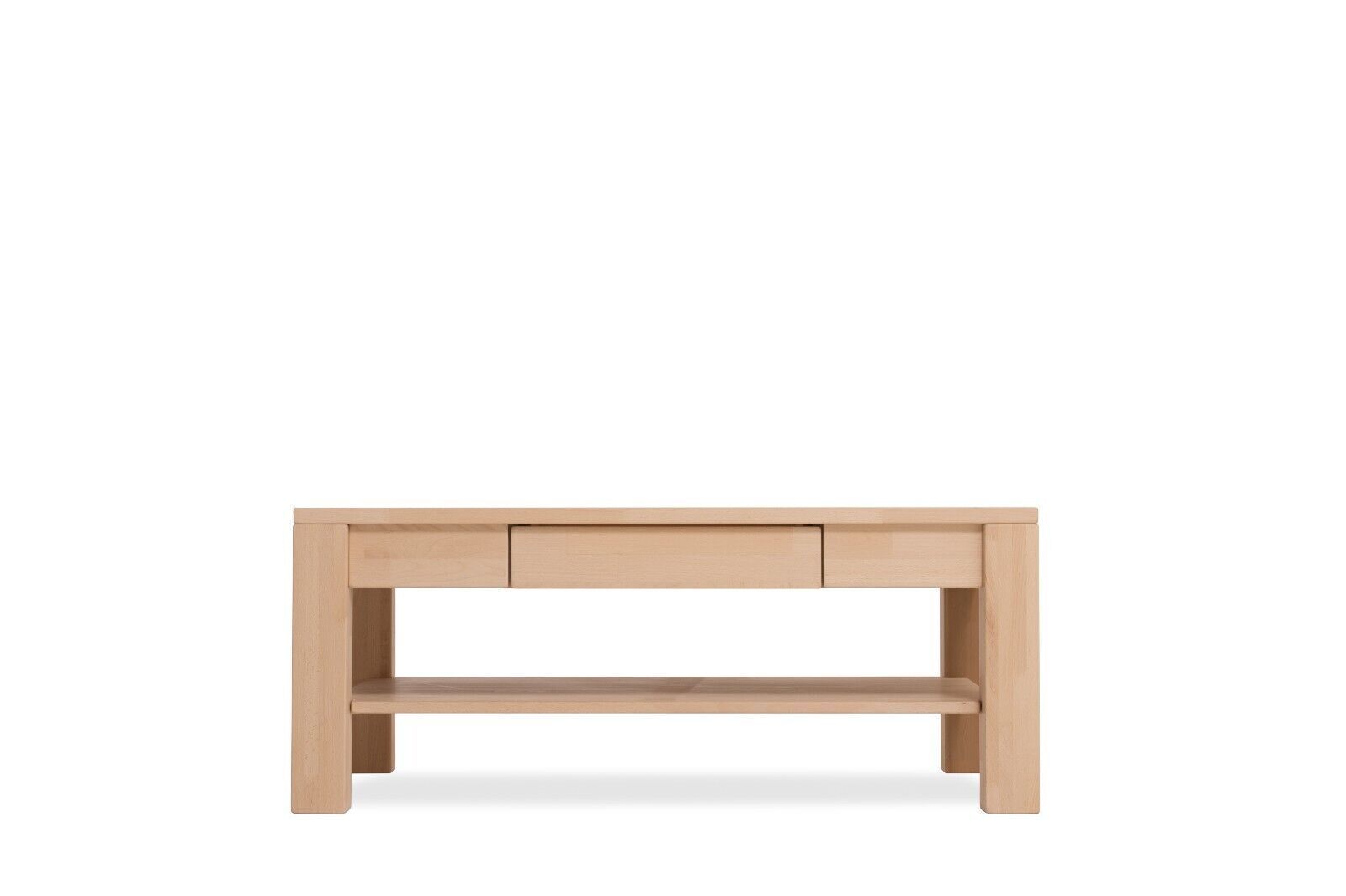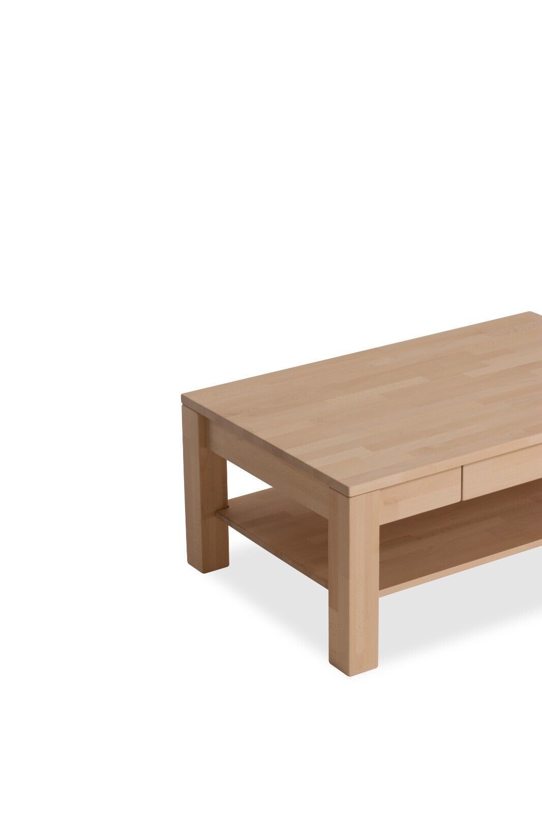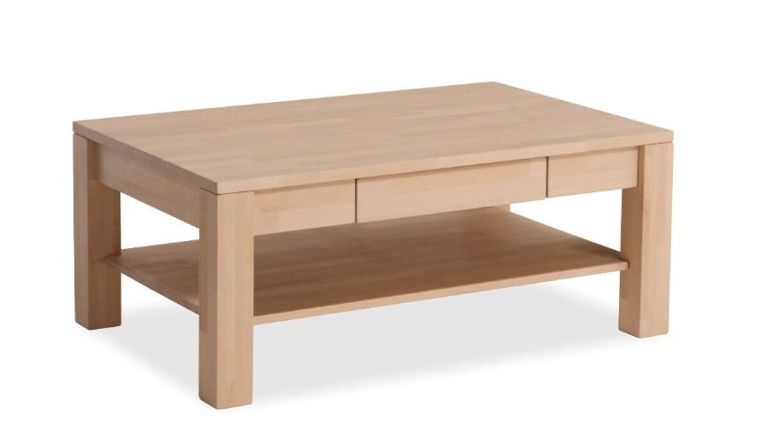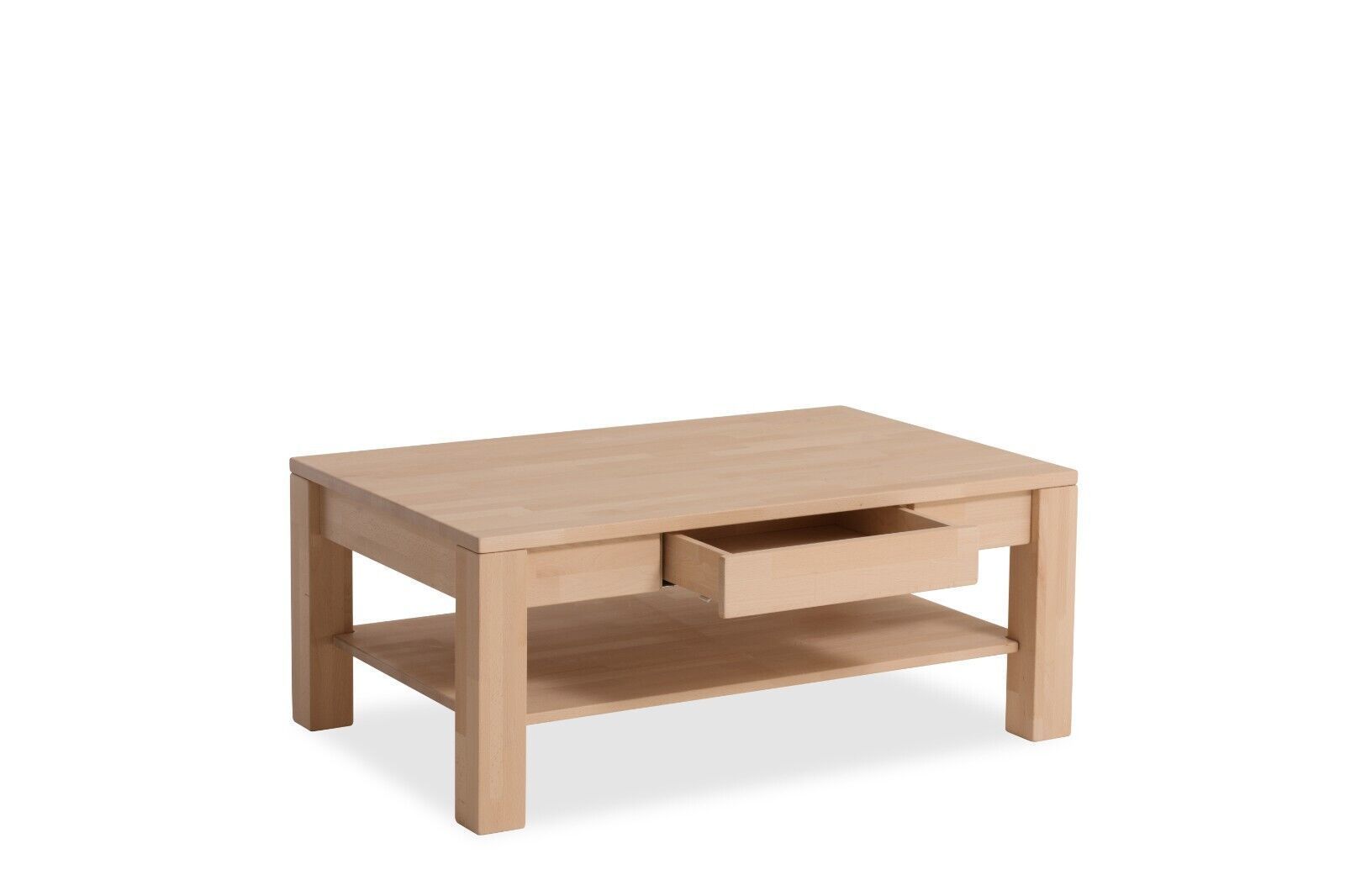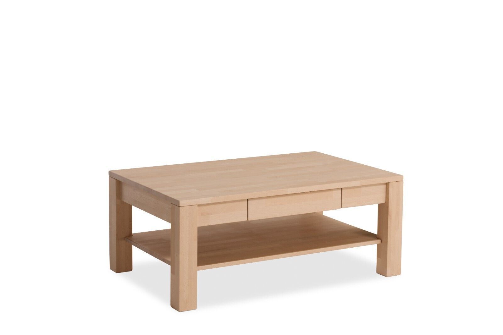 Couchtisch massiv Buche / Wildeiche Wohnzimmertisch mit Schublade und Ablage A1