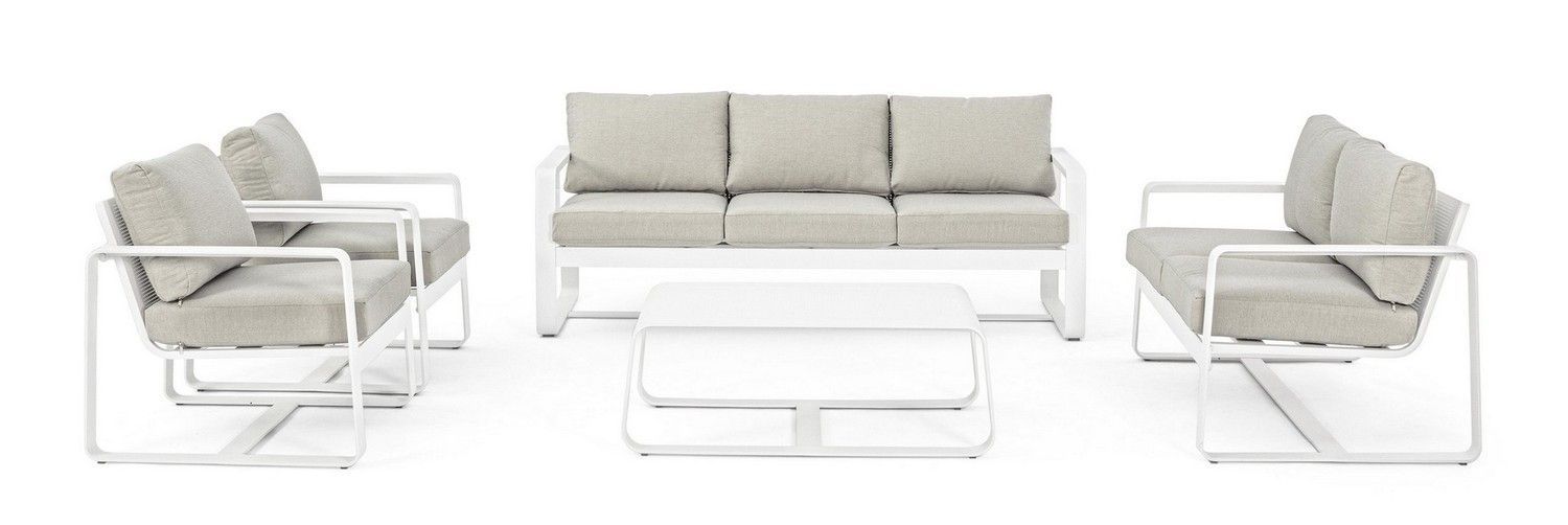 Couchtisch Merrigan 105x 62x 38cm aus Aluminium Weiß für Innen- und Außenbereich