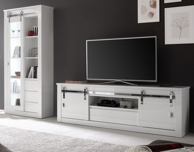 Couchtisch "Miami" in weiß Hochglanz Wohnzimmer Sofatisch mit Schiebetür 93 x 60 cm