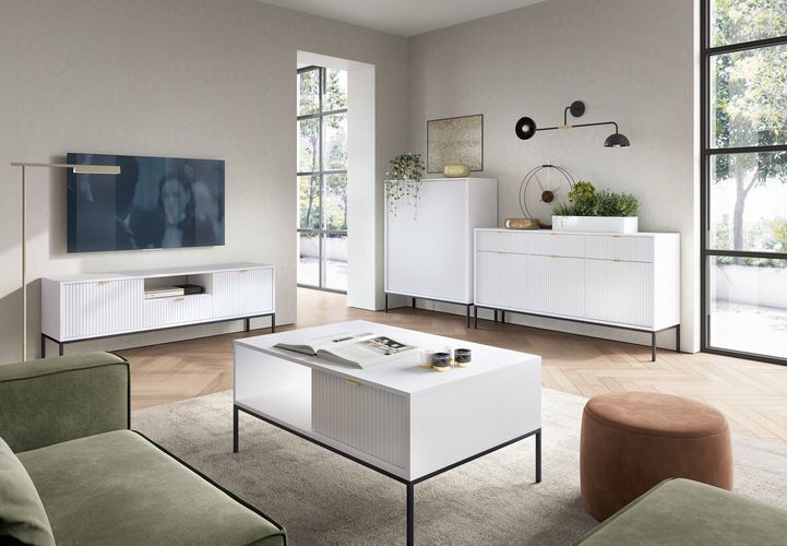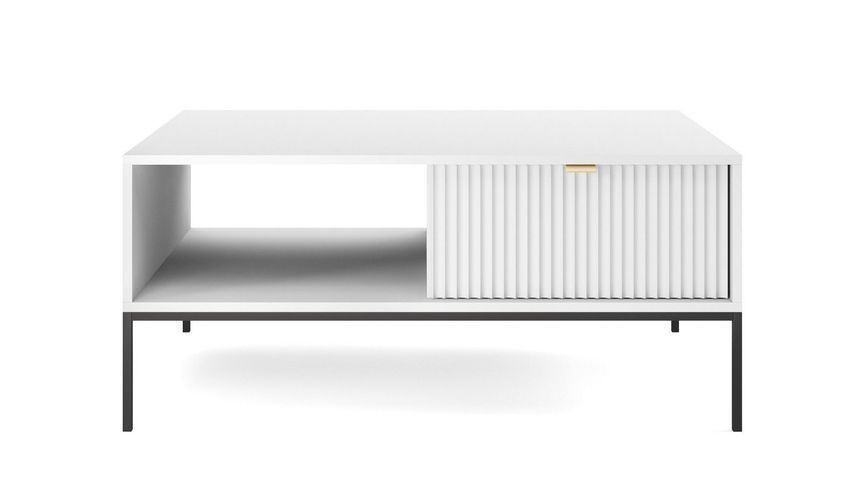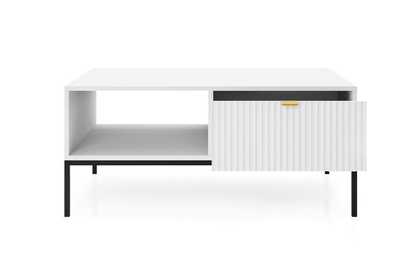 Couchtisch Nova L104 Sofatisch Weiß/ Schwarze Beine und Goldene Griffe