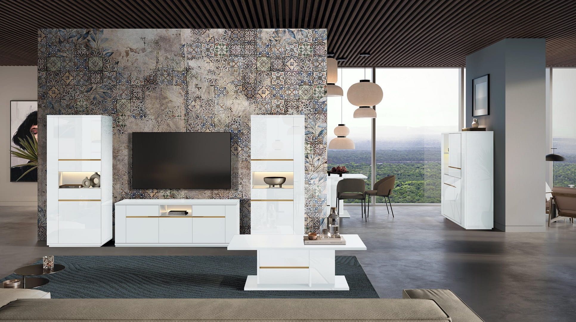 Couchtisch Pegaso in Weiß/Gold Hochglanz