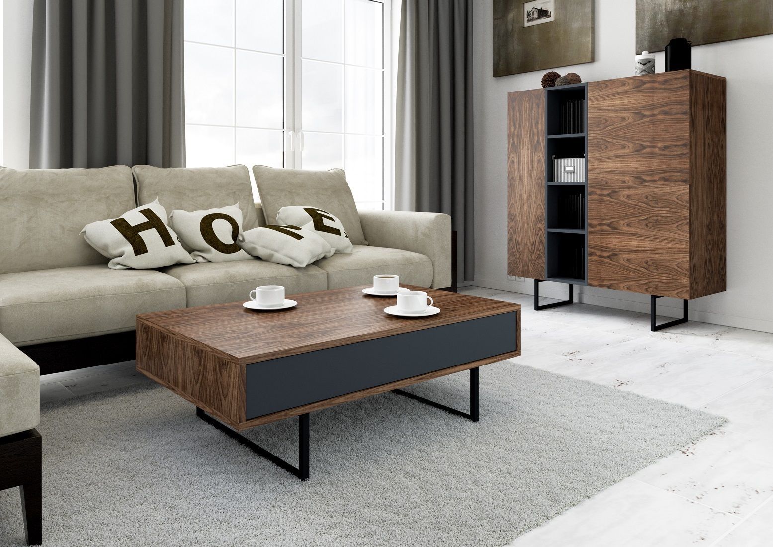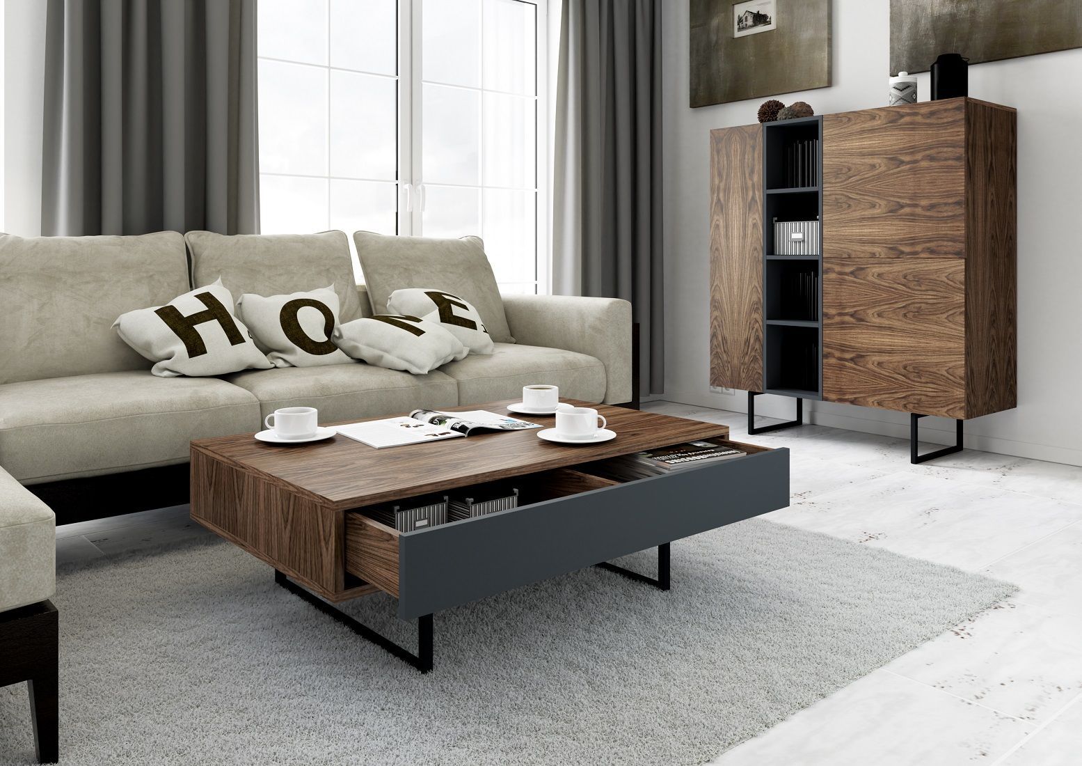 Couchtisch Schublade Wohnzimmertisch Kaffeetisch Tisch Sofatisch ABATO Walnuss