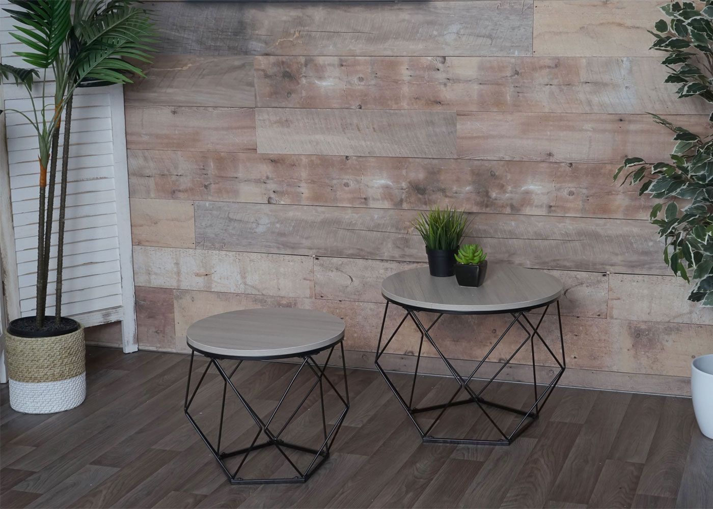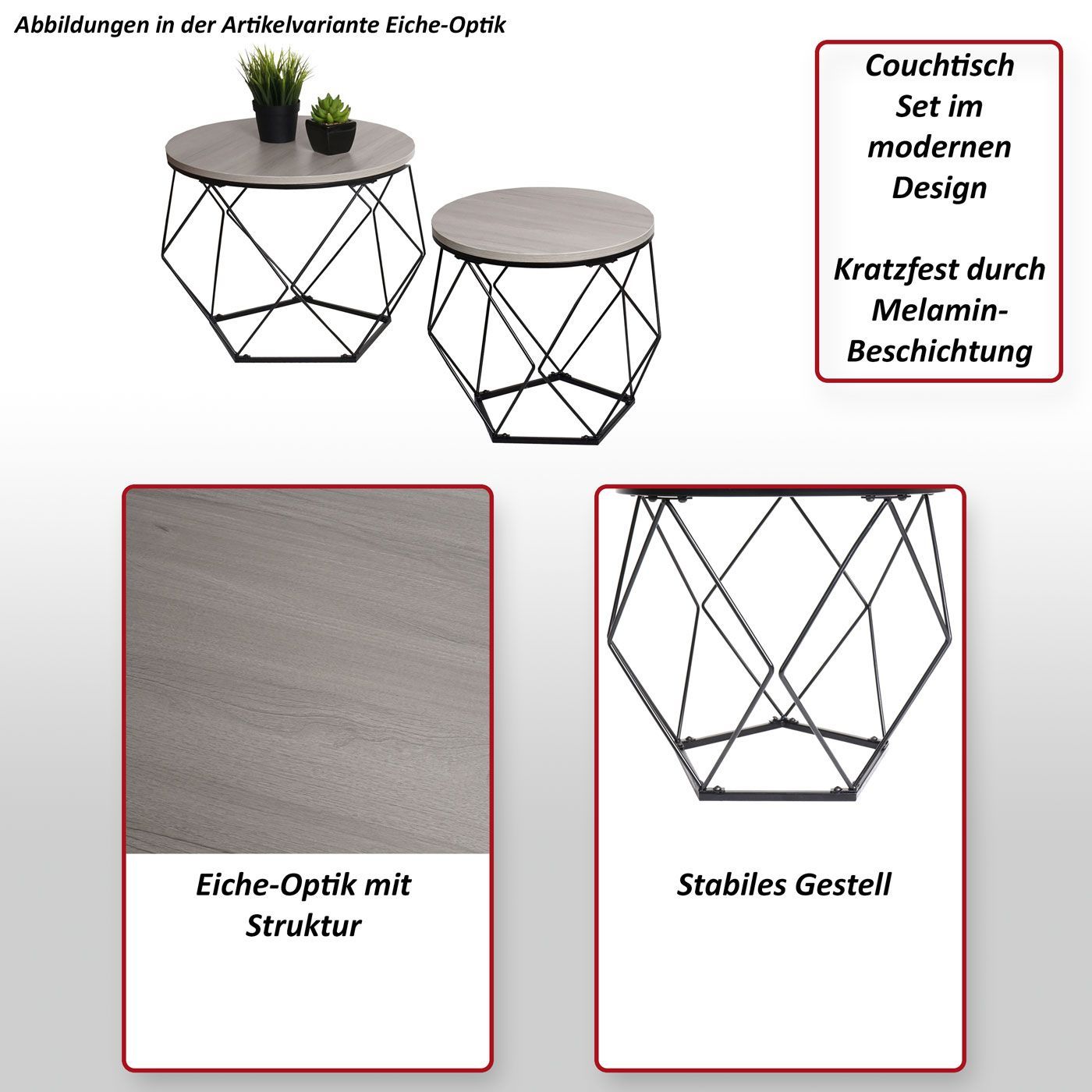 Mendler Couchtisch-Set HWC-L37, Kaffeetisch Beistelltisch Loungetisch, Metall Holz