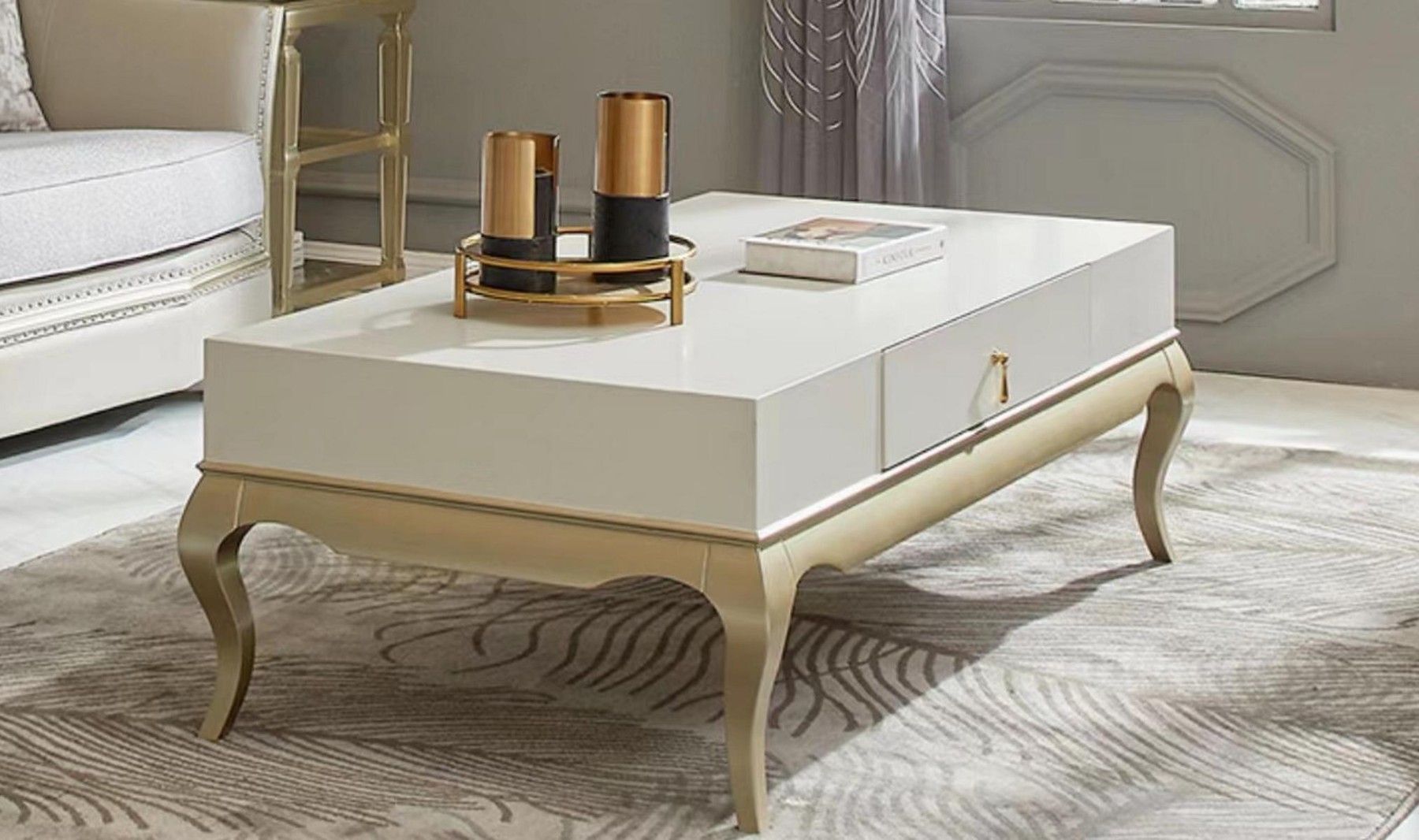 Couchtisch Tisch Beistelltisch Wohnzimmertisch Holz Elfenbein Weiß Holztisch