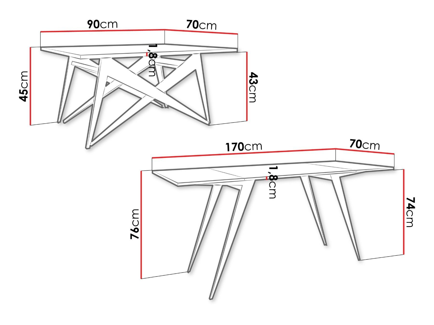 Couchtisch und Esstisch Xena, 2-in-1, Rahmen aus Stahl Stilvoll Wohnzimmer