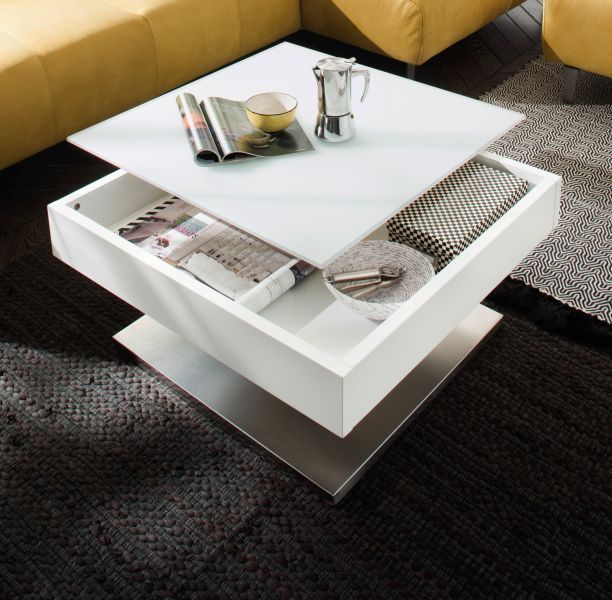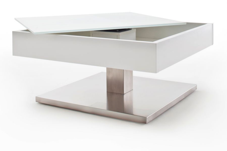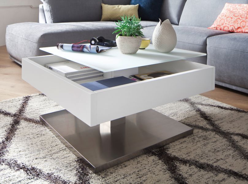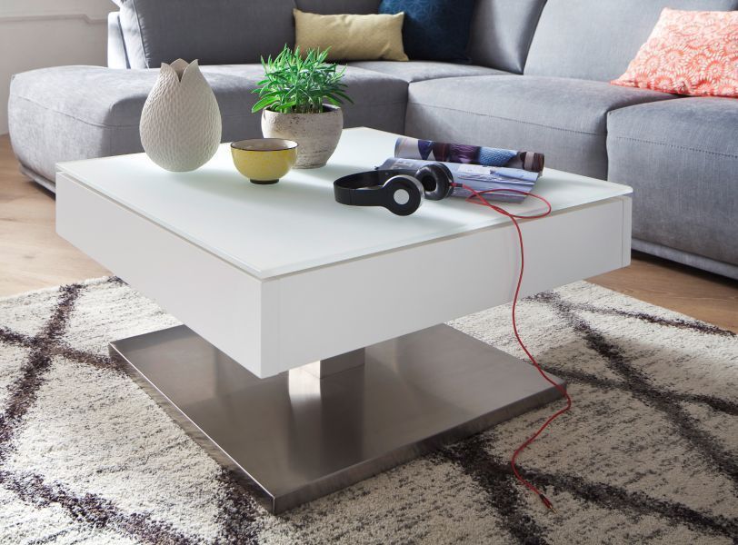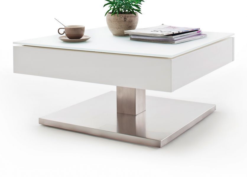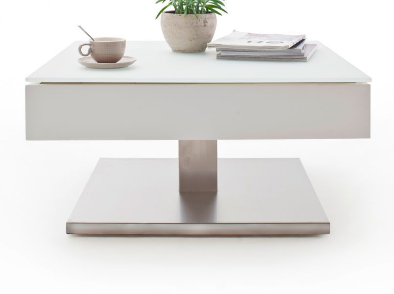 Couchtisch weiß matt Lack Edelstahl Tischplatte drehbar Wohnzimmer Tisch Mariko 75 cm