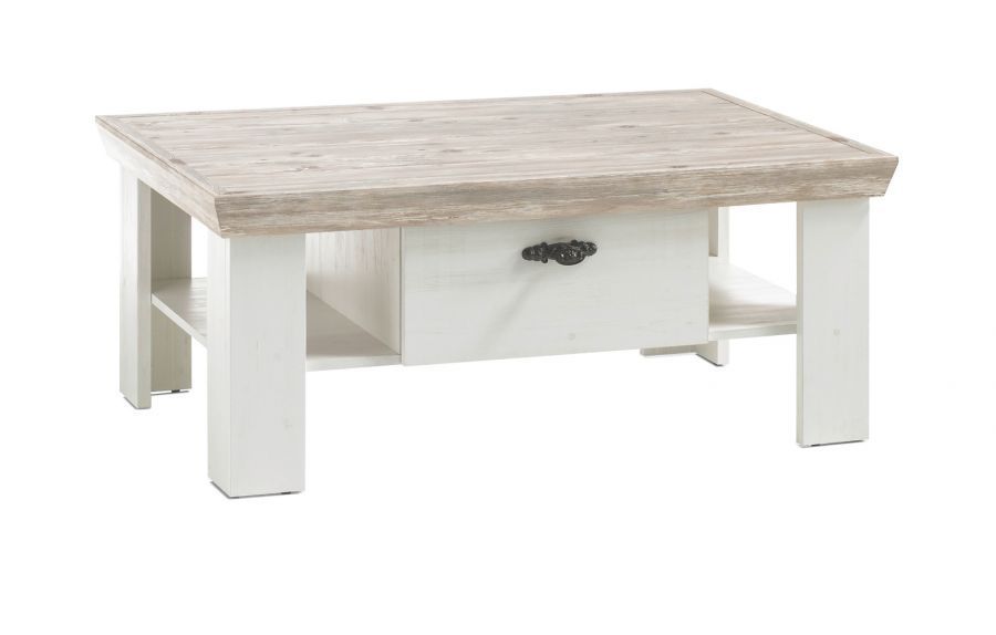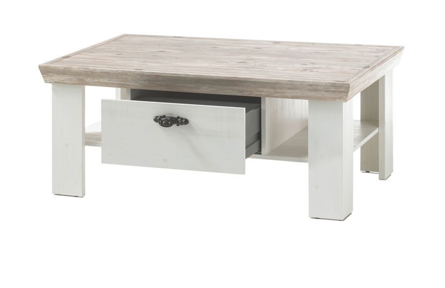 Couchtisch weiß Pinie Landhaus Beistelltisch Wohnzimmer mit 2 x Schubkasten Rovola
