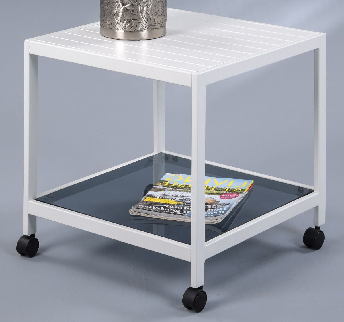 Couchtisch weiss Wohnzimmertisch auf Rollen Glastisch - (4352)