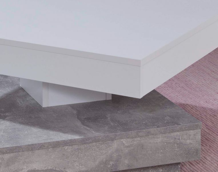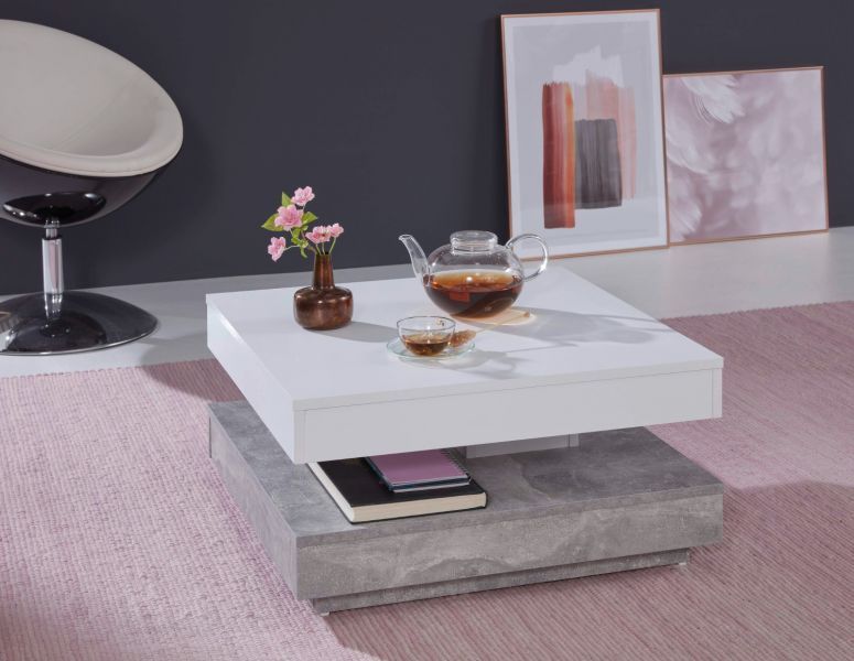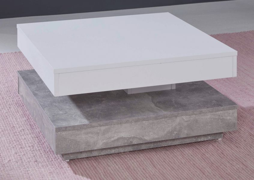 Trendteam Couchtisch Wohnzimmer Beistelltisch in weiß und grau Beton Design drehbar 70 - 110 cm