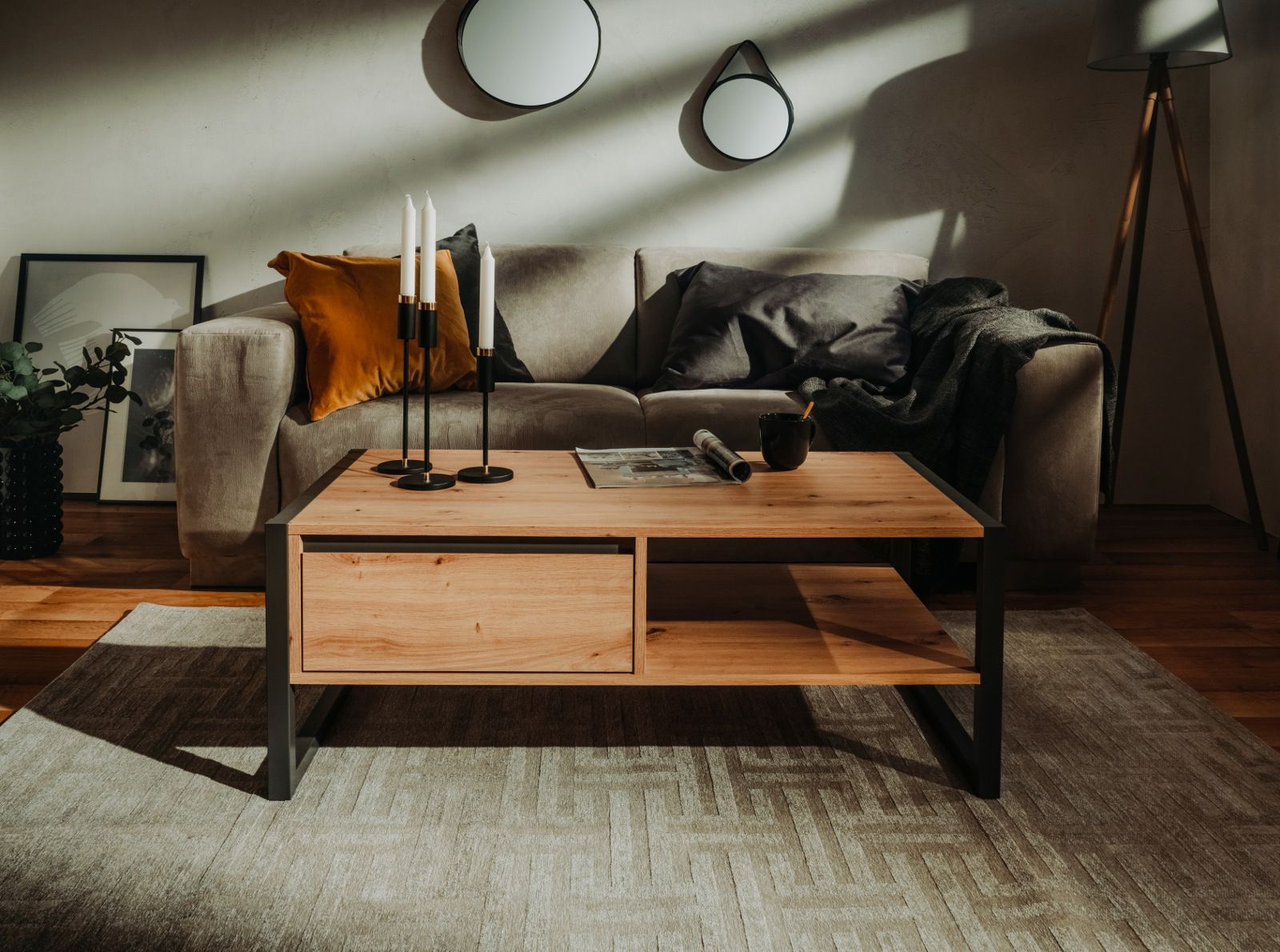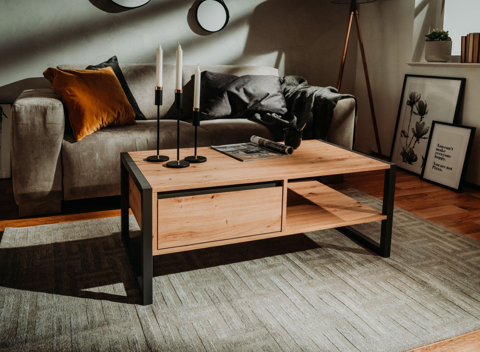 Couchtisch Wohnzimmer Tisch Eiche Artisan Industrial Schublade Stauraum 100 cm Malta