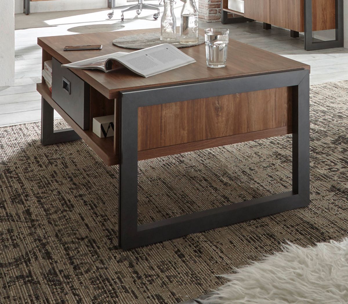Couchtisch Wohnzimmer Tisch Eiche grau Beistelltisch Schubkasten Ablage Auburn
