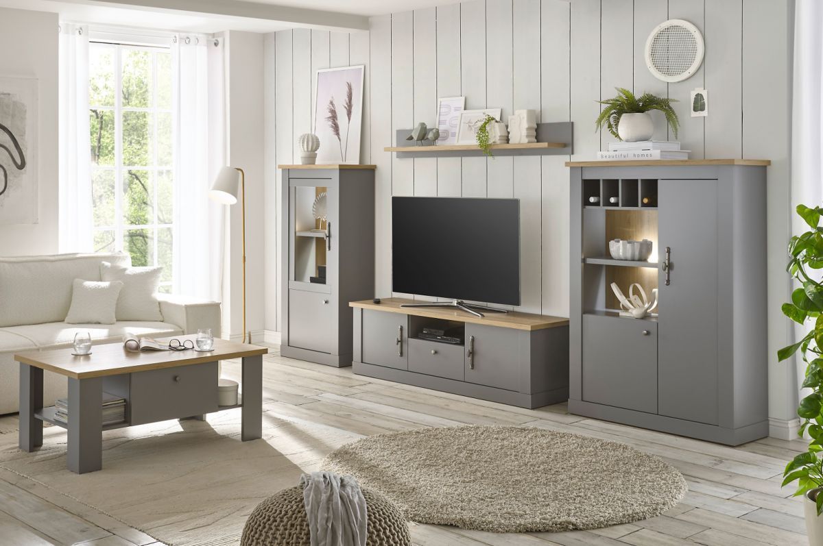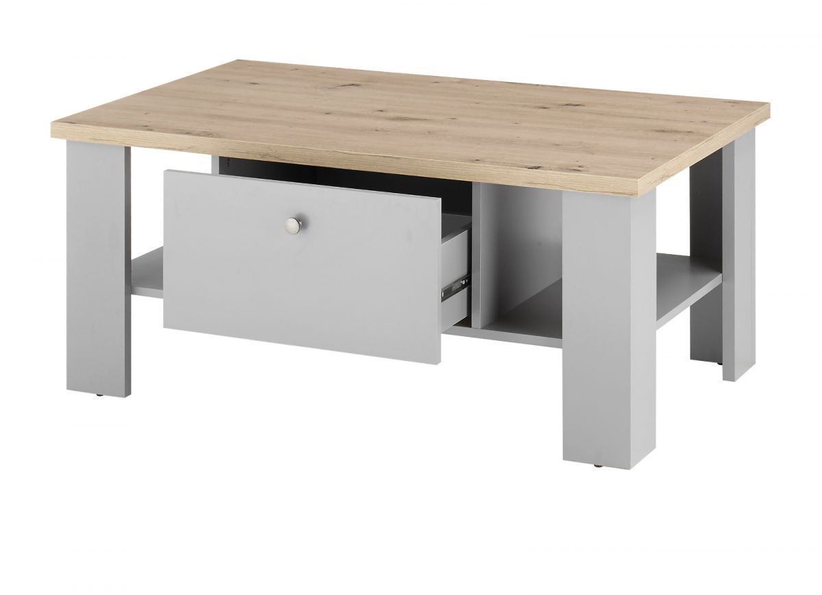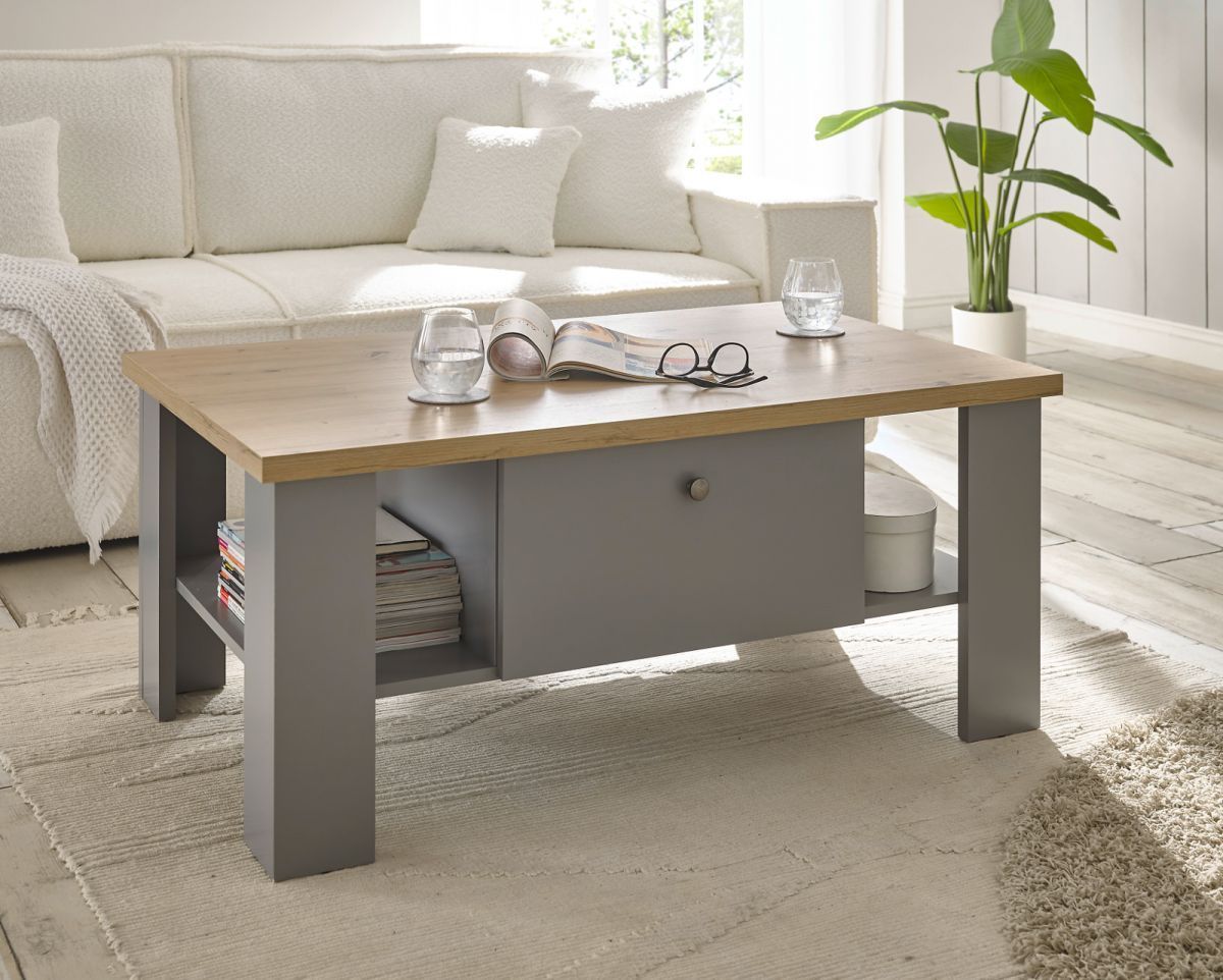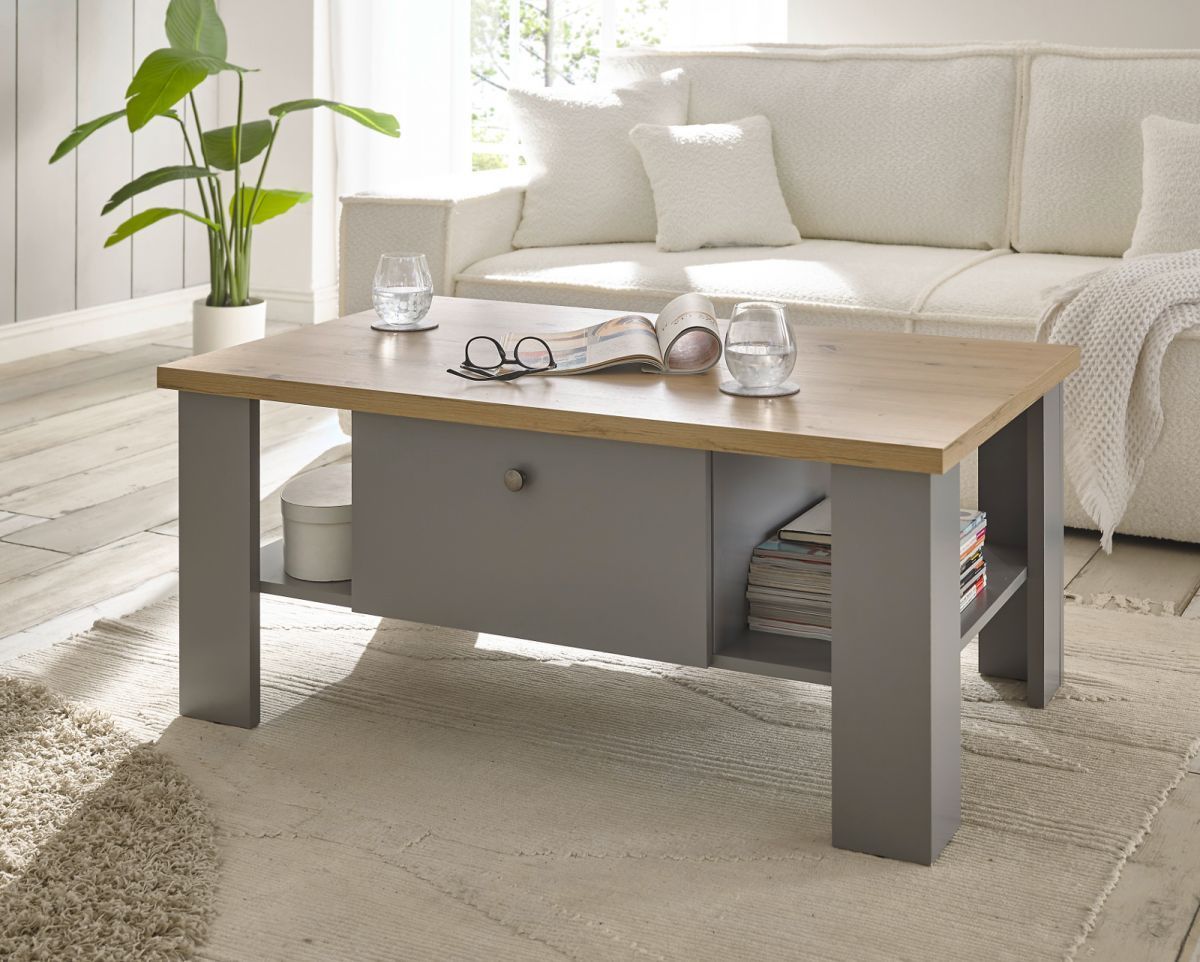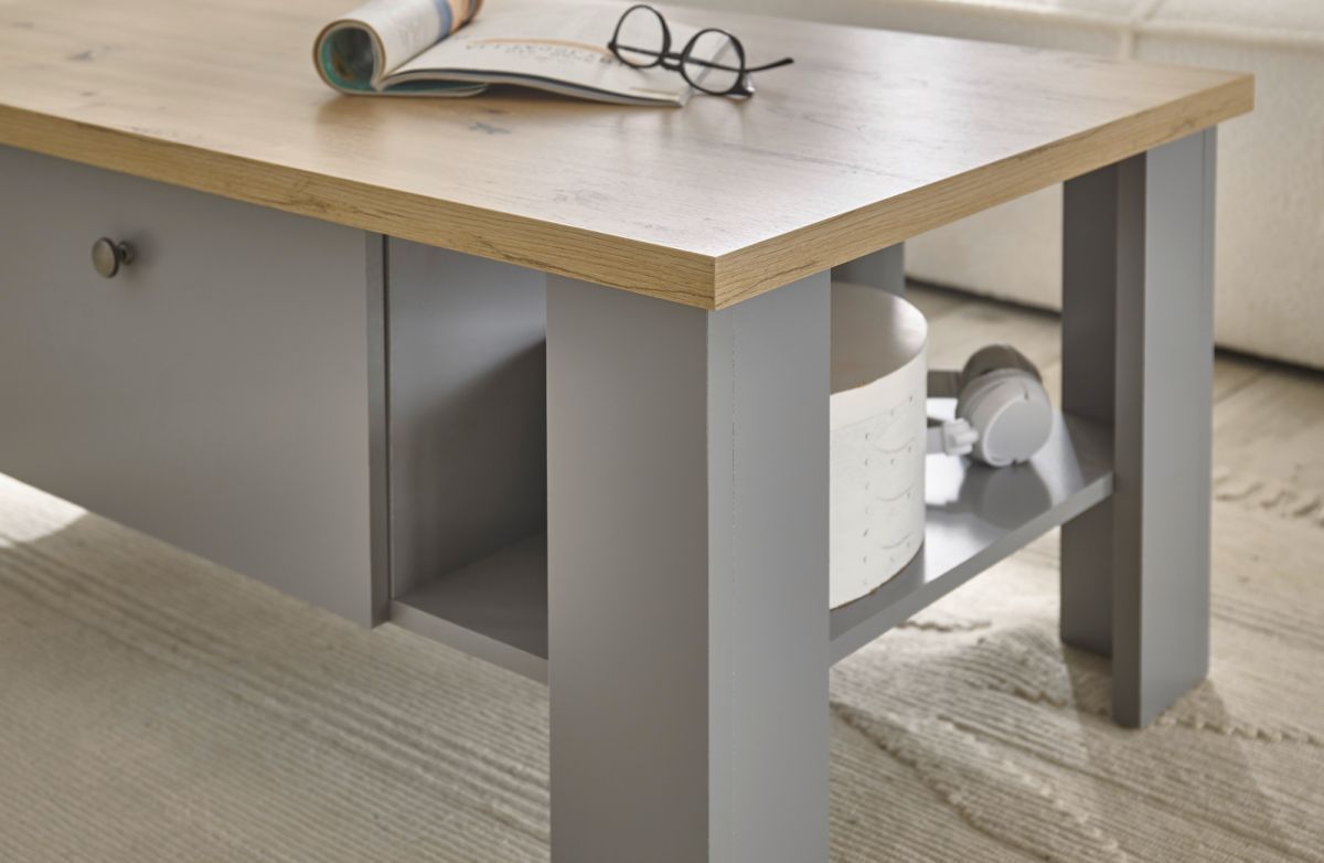 Couchtisch Wohnzimmer Tisch Sofatisch grau Eiche Landhaus Stauraum 107 cm Rideau