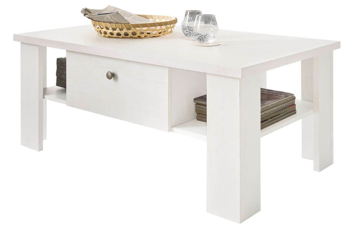 Couchtisch Wohnzimmer Tisch Sofatisch Soft-Close weiß Pinie Landhaus Fiastra 107 cm