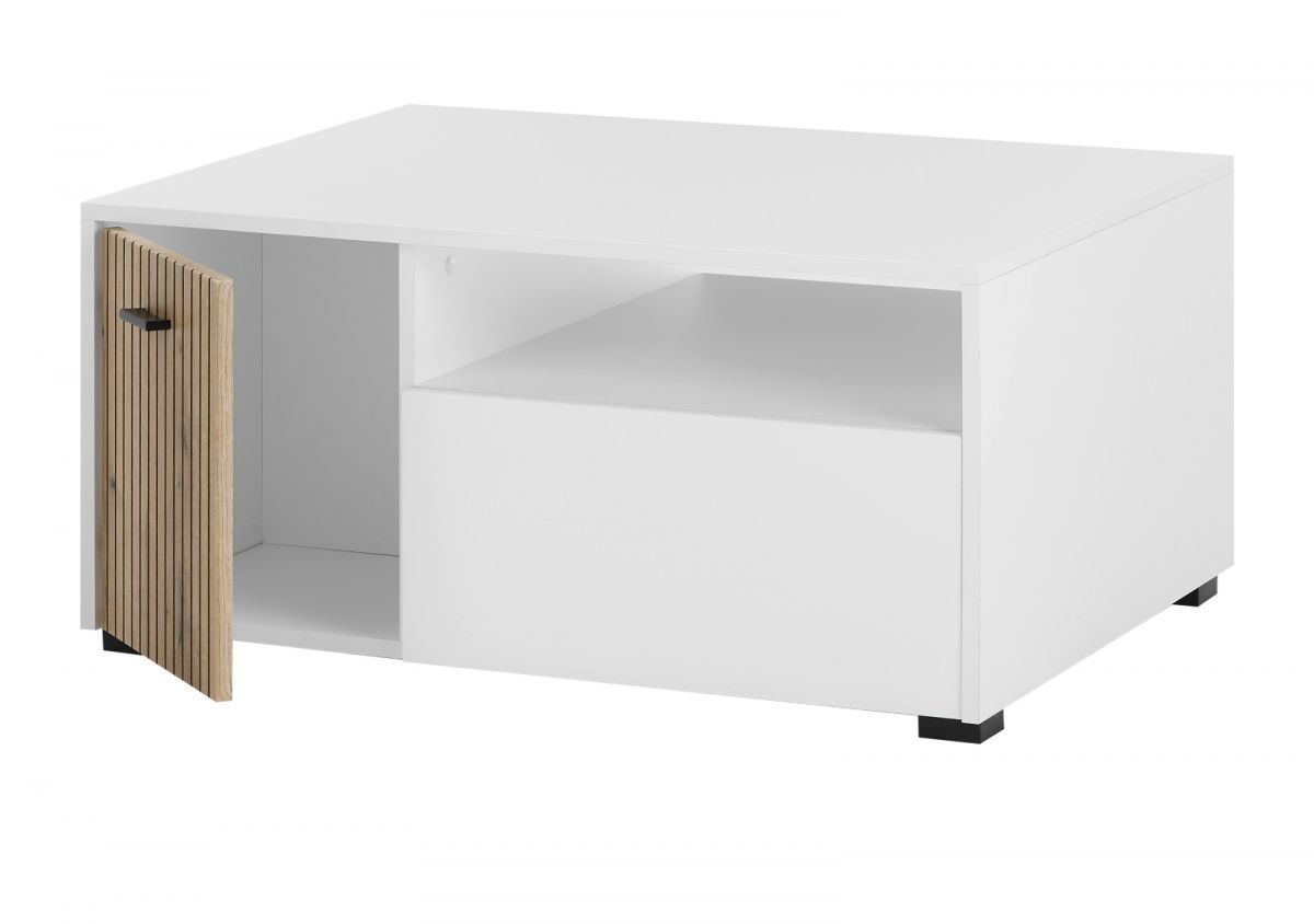 Couchtisch Wohnzimmer Tisch weiß matt Eiche Stauraum Soft-Close Beistelltisch Merced