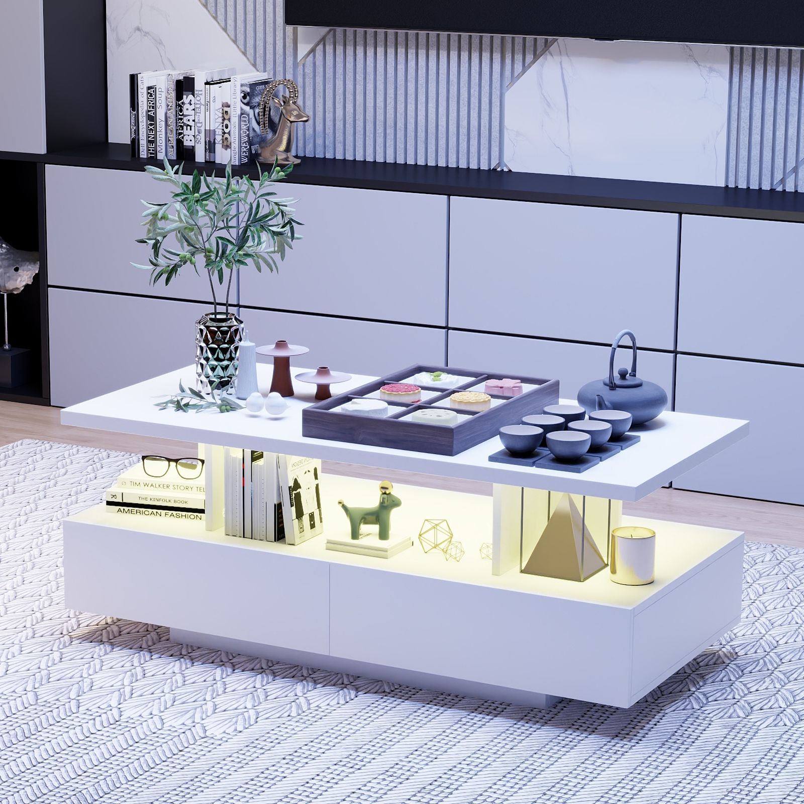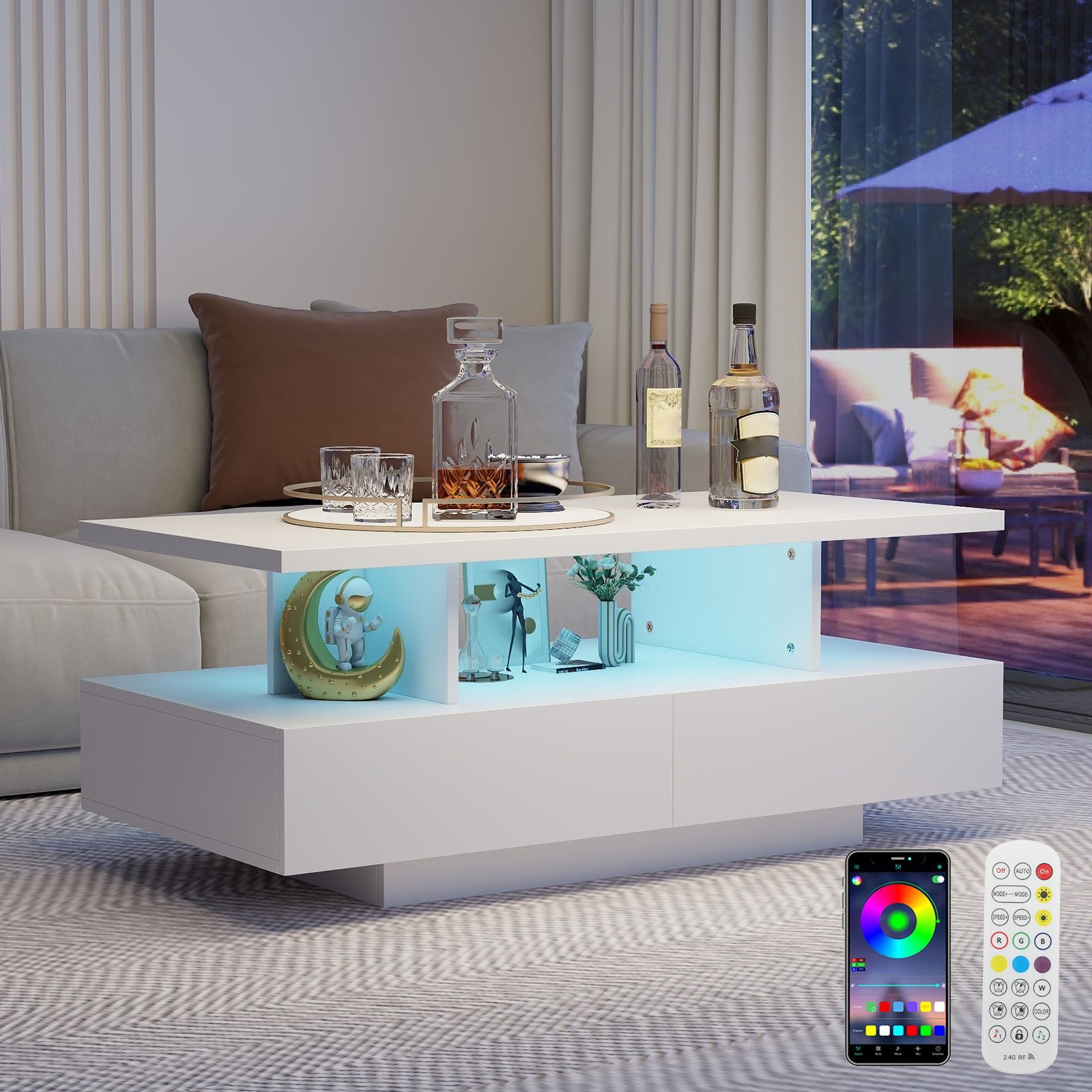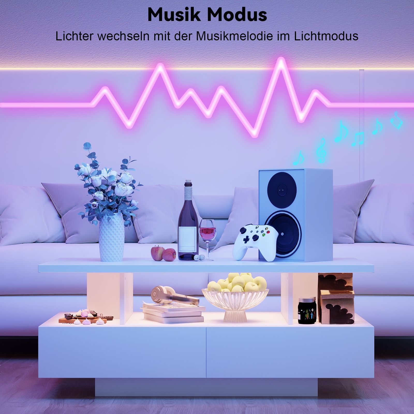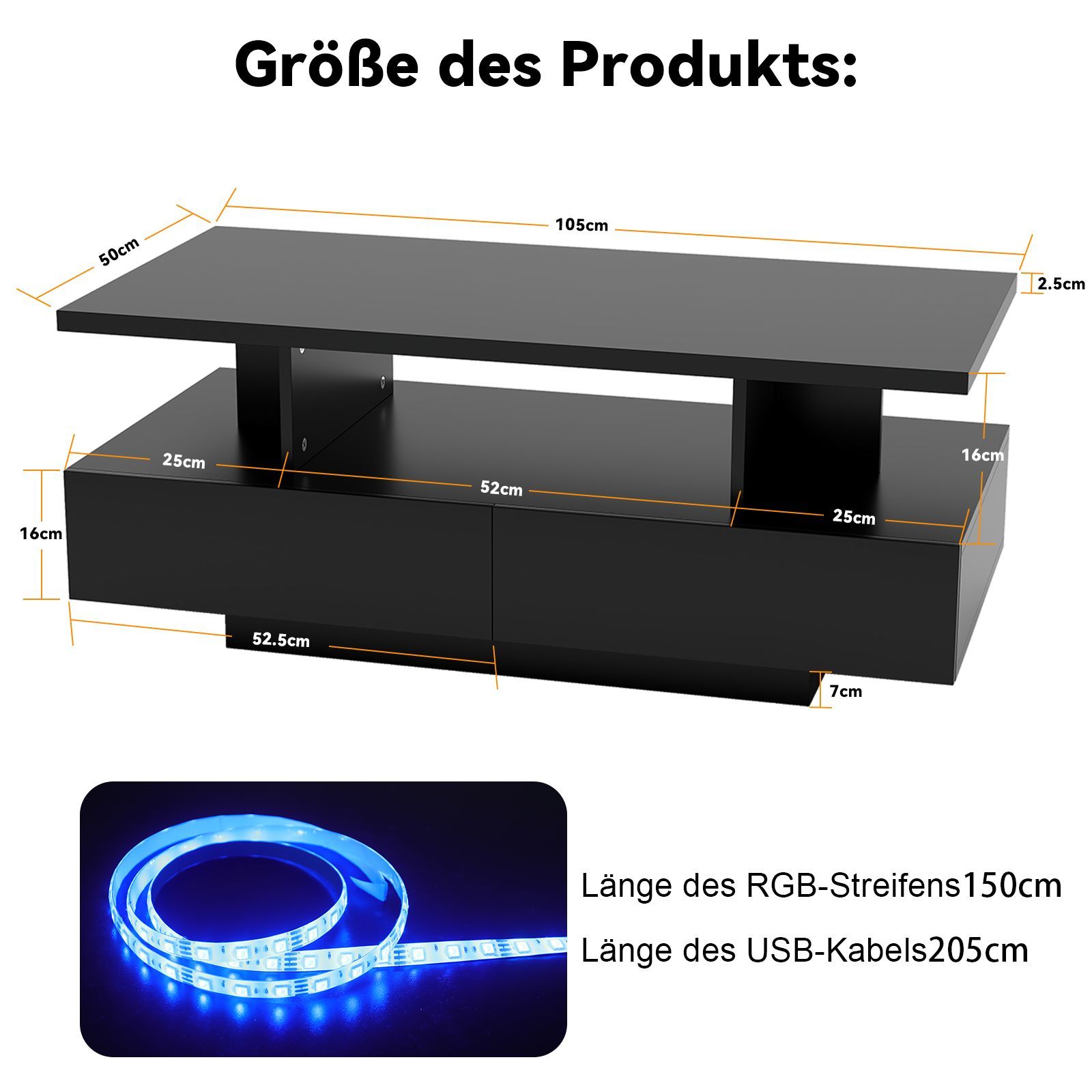 Couchtisch Wohnzimmertisch mit LED Beleuchtung Beistelltisch Bluetooth 105x55cm