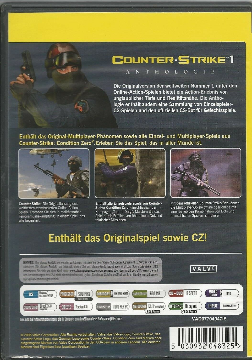 Counter-Strike 1 Anthology (PC, 2005, DVD-Box) guter Zustand, MIT Steam Key Code
