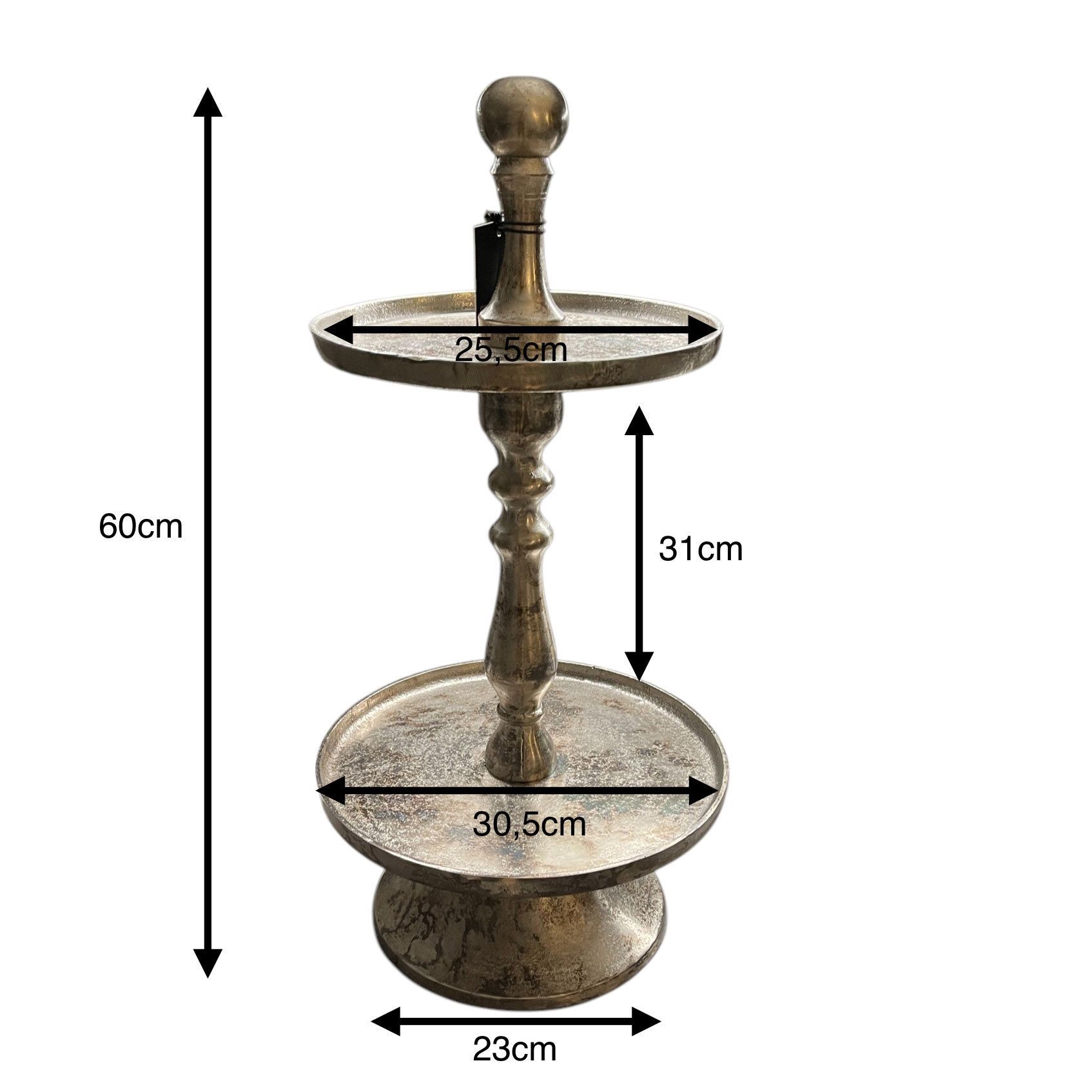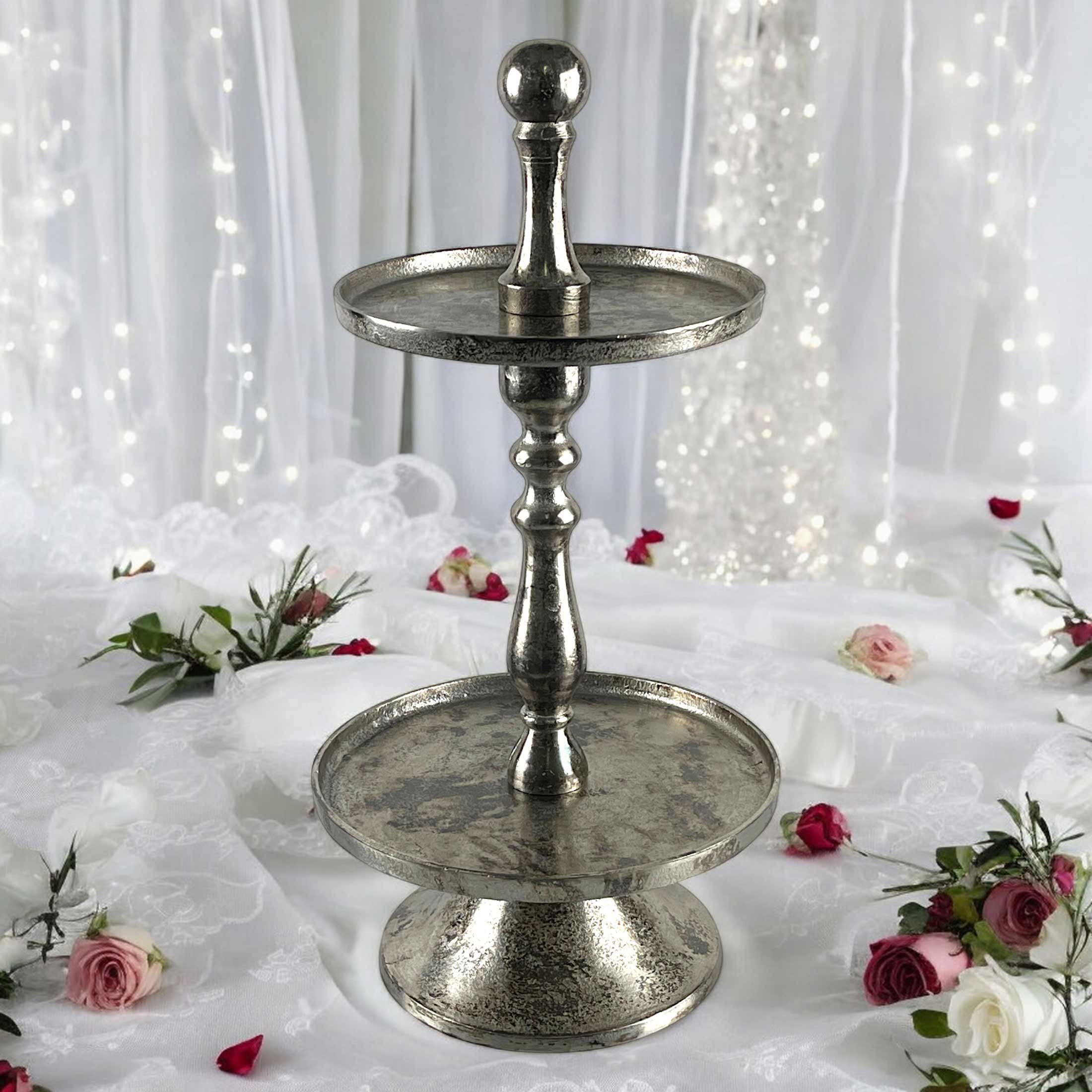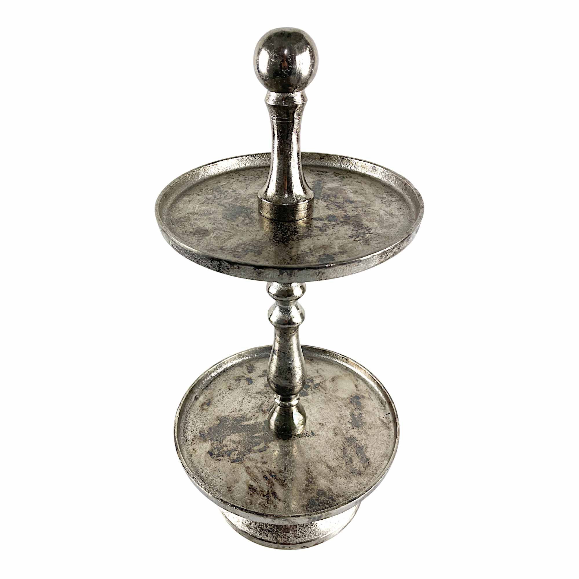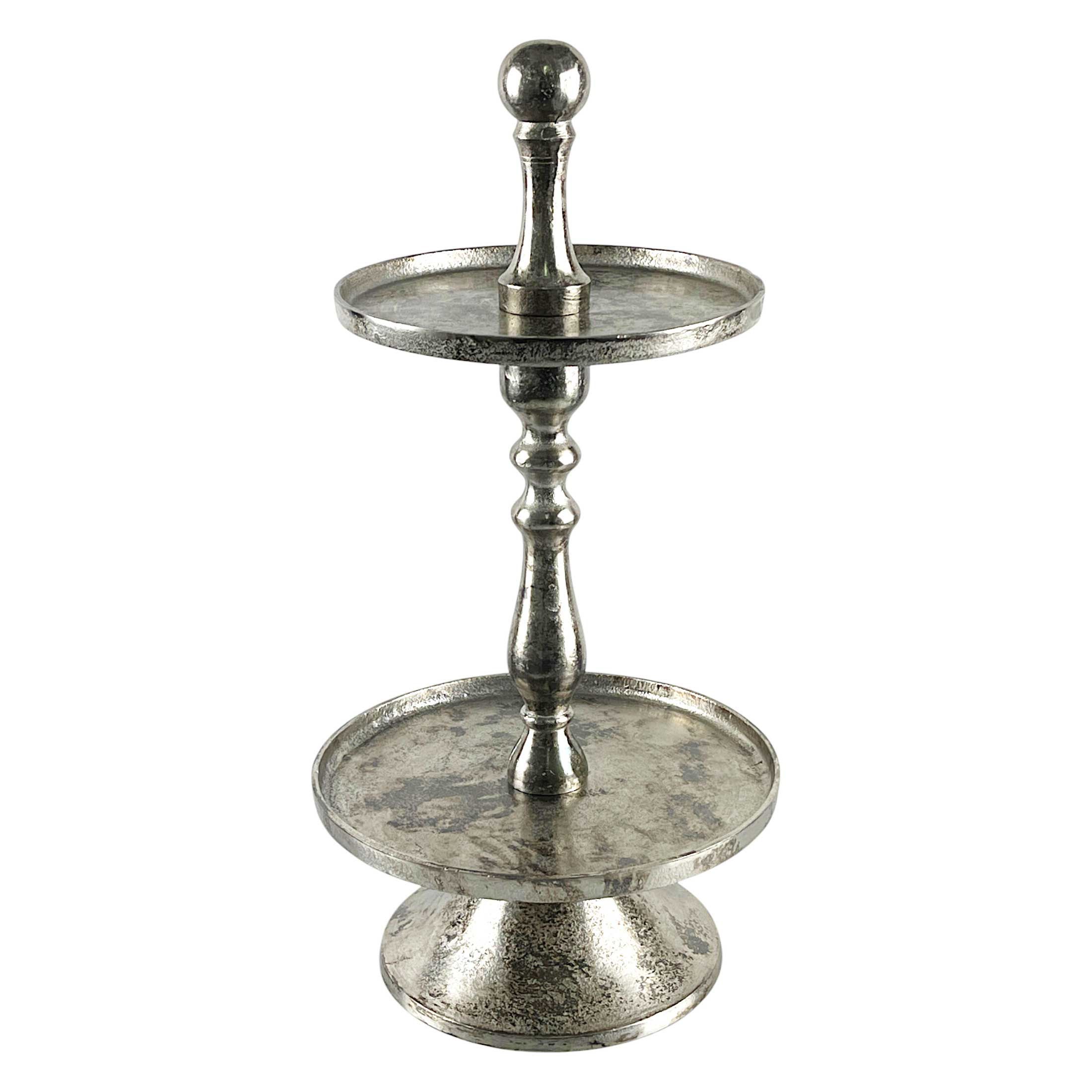 Countryfield Etagere 2-stöckig hochwertig Aluminium versilbert Antikoptik 30x60cm
