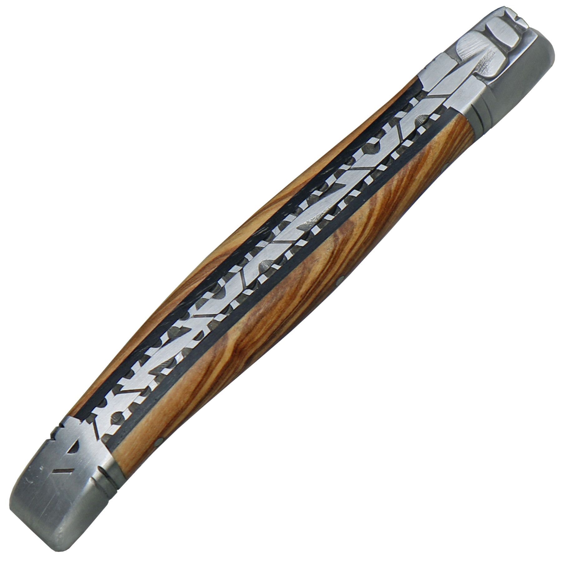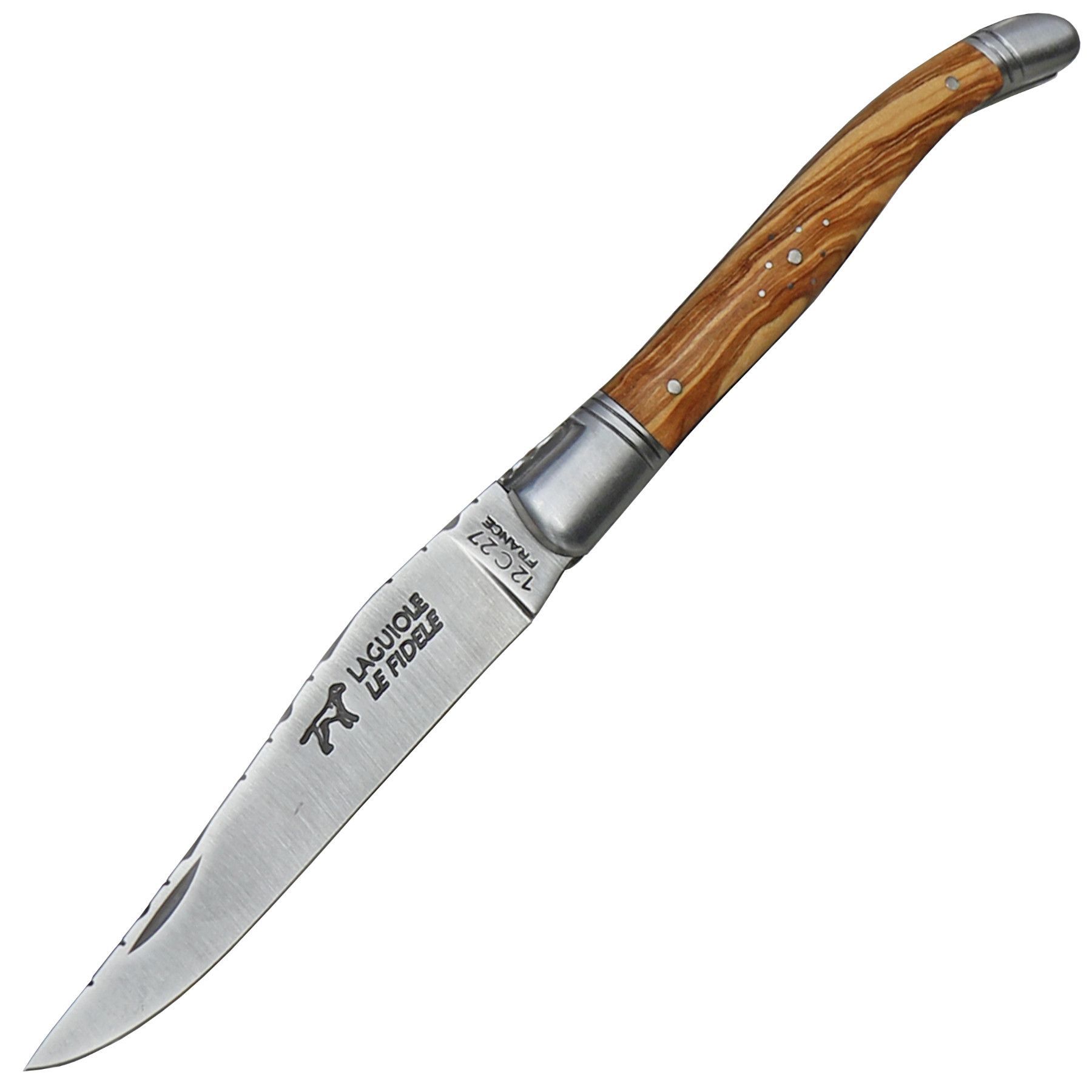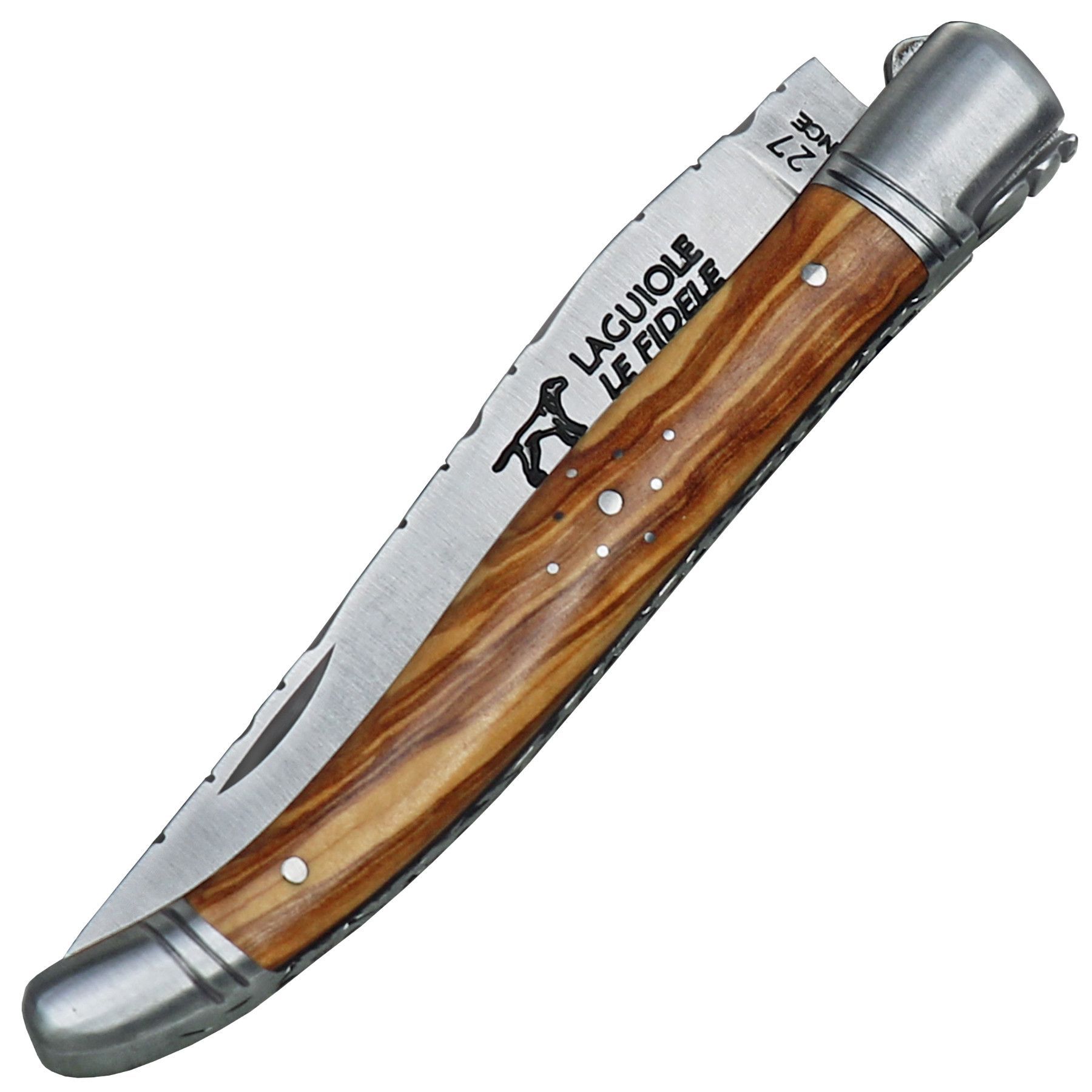Coutellerie Le Fidele, Laguiole Taschenmesser geschmiedet, Olivenholz Lederetui