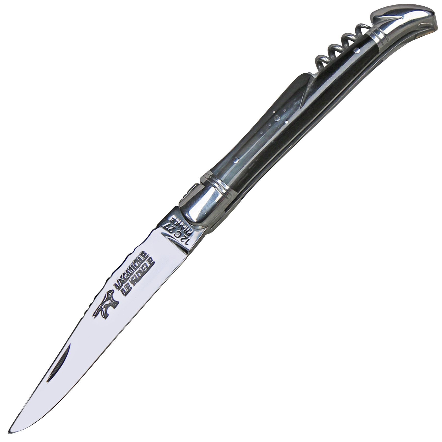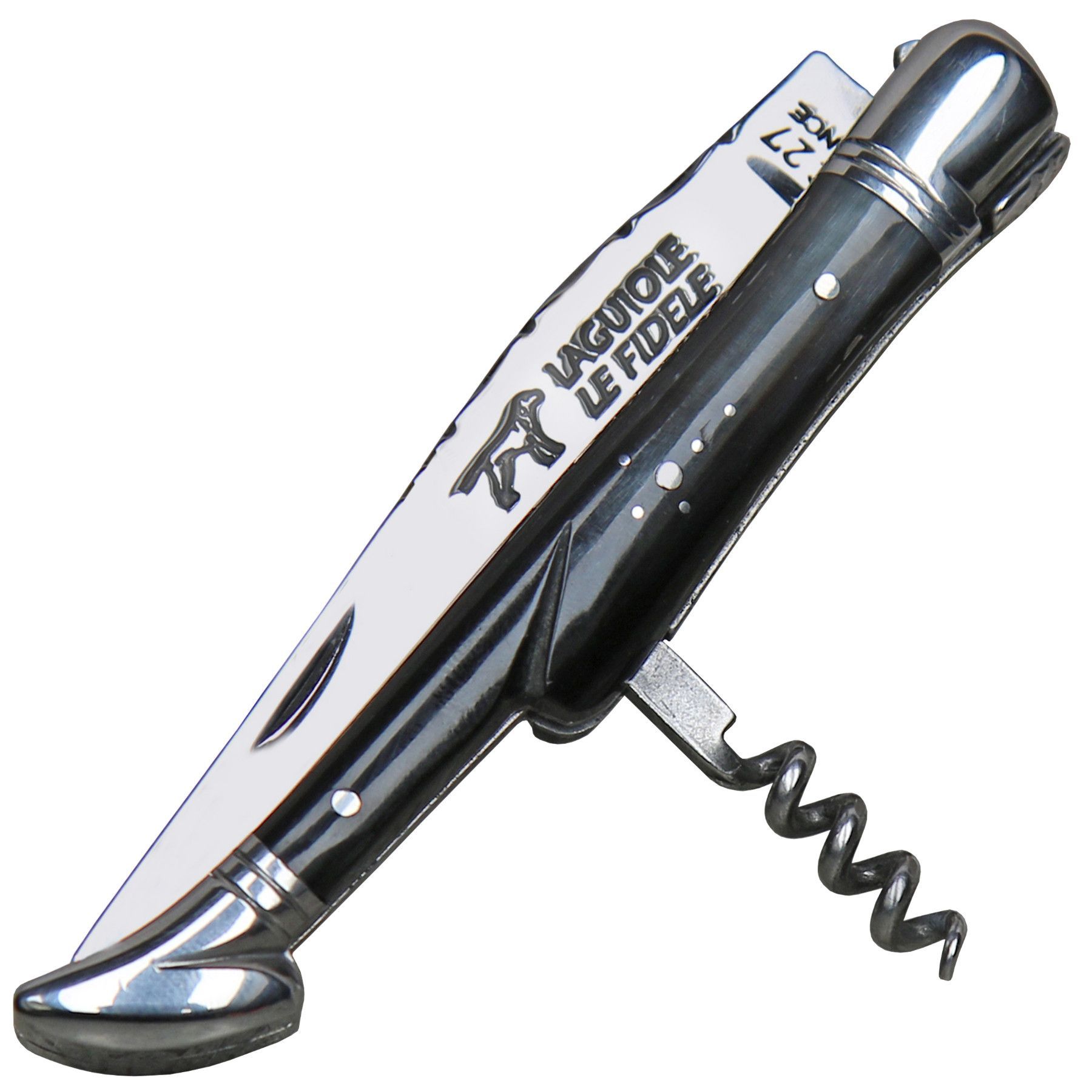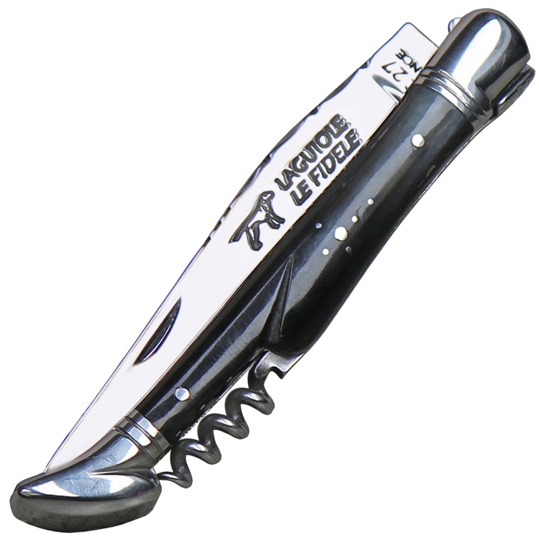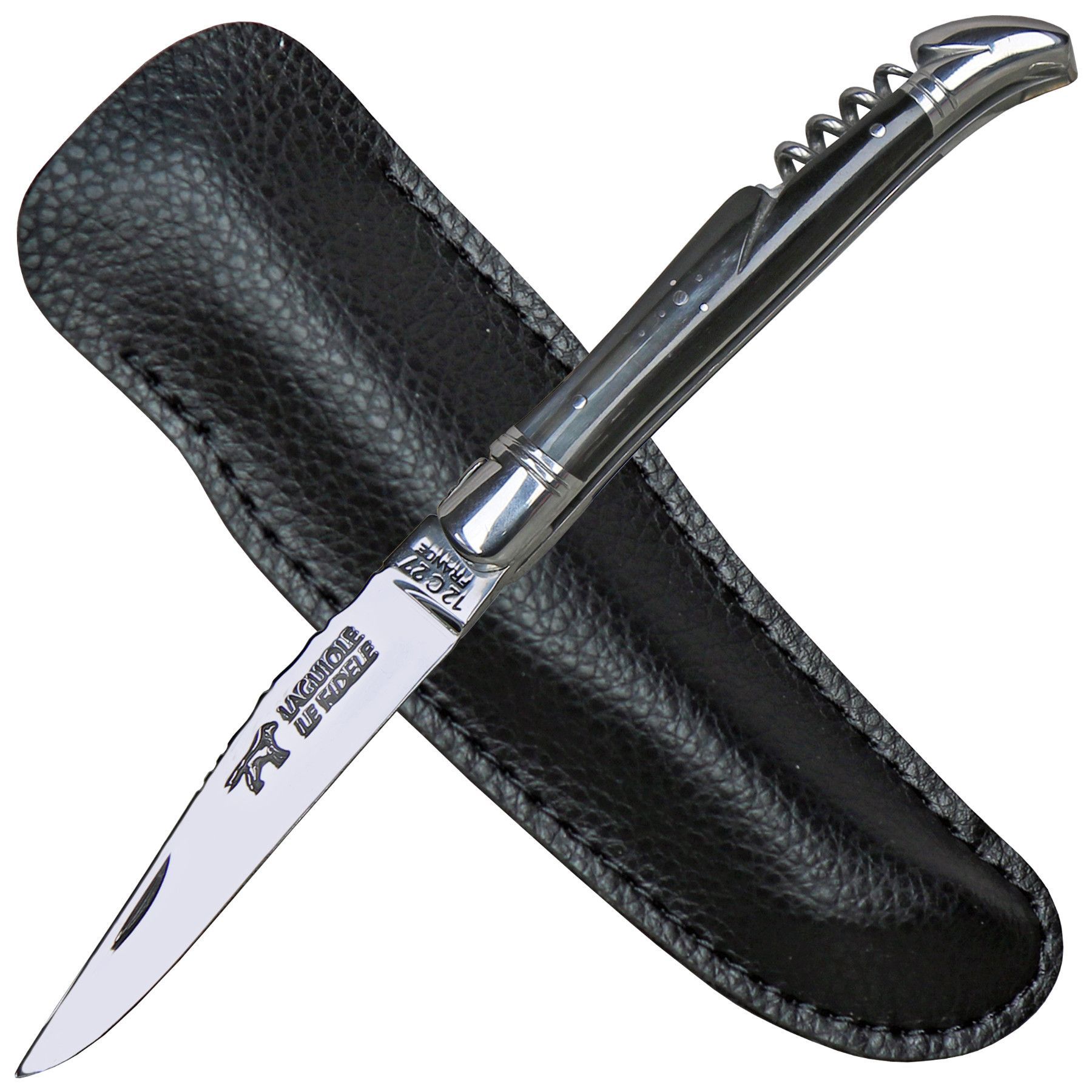 Coutellerie Le Fidele Laguiole Taschenmesser mit Korkenzieher Büffelhorn Lederetui