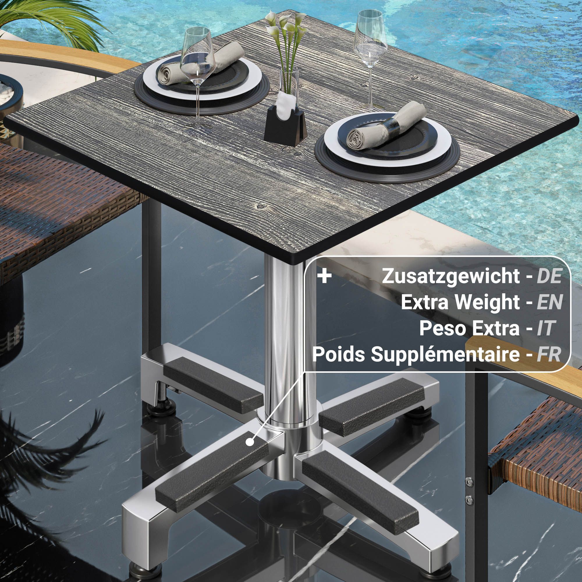 CPBC | HPL Bistro Tisch | B: : 60 x 60 x 78 cm | Rustikal Kiefer / Aluminium | Klap