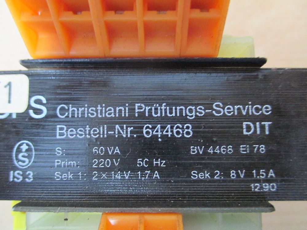 CPS Christiani Trafo 664468 DIT pri.220 V sec. 2x14 V und 8V 60VA Trafo T13/4